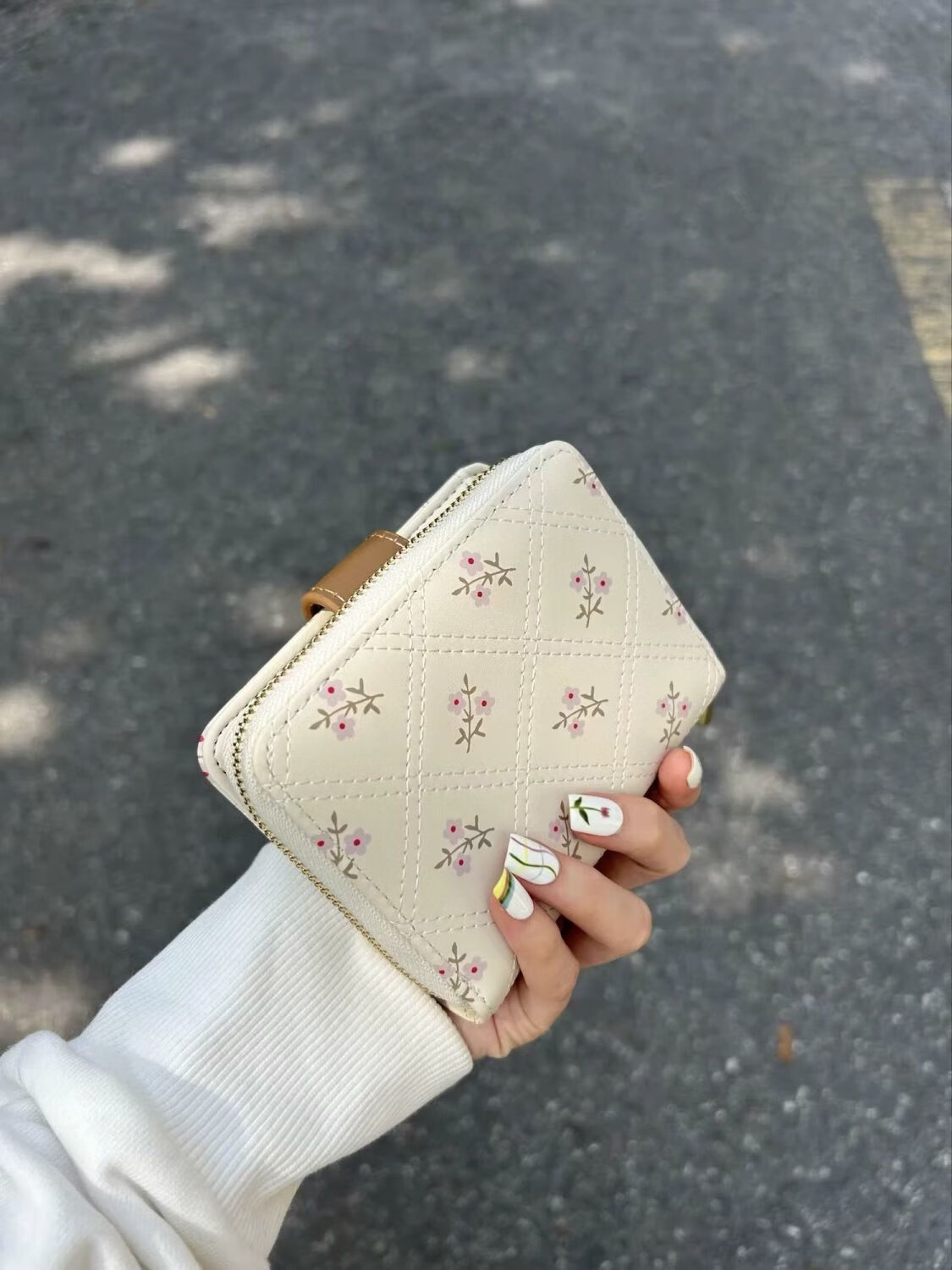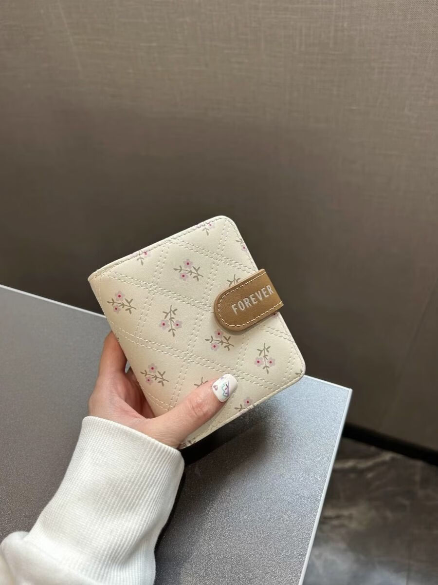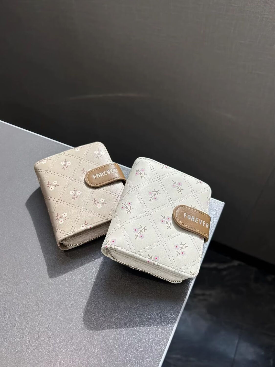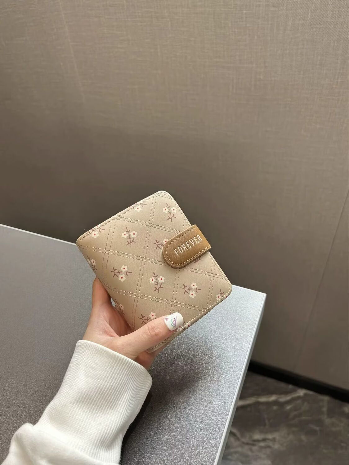 Chengyang's new women's wallet, high-looking diamond embroidery thread, simple version, small fresh coin purse, short wallet, compact card holder, beige # 11 card slots + 1 mirror window slot + 1 banknote slot, simple anti-magnetic style