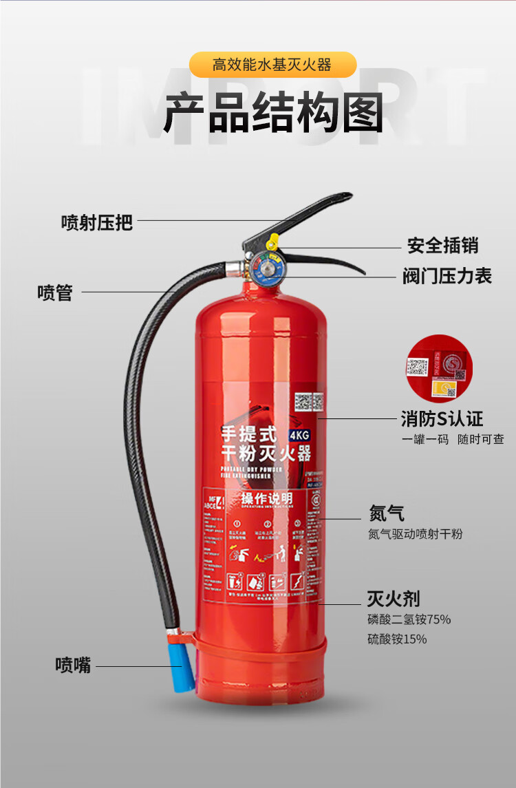 Customized new national standard fire extinguisher for shops 4kg 5kg dry powder 4kg 5kg factory household fire extinguisher 5kg dry powder fire extinguisher