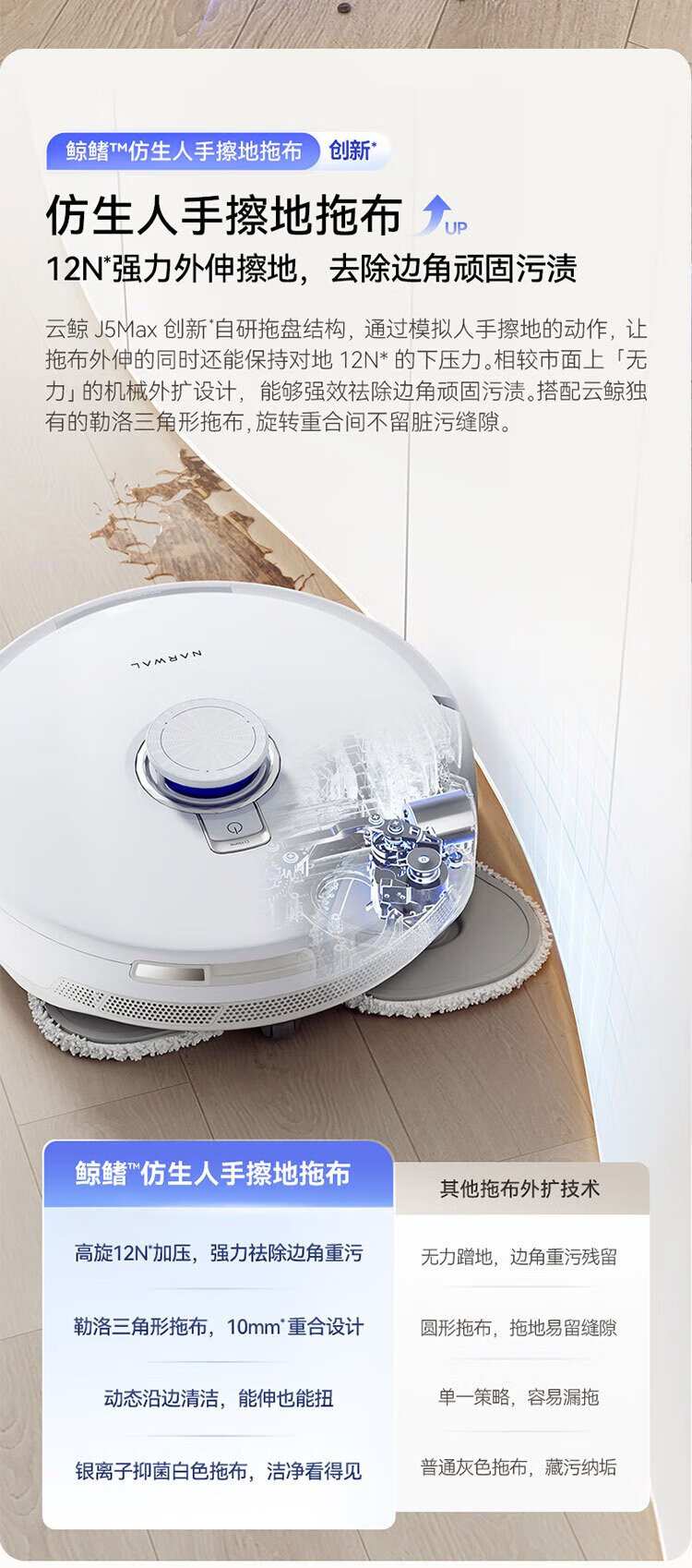 Cloud Whale sweeping robot J5/J5Max/J6 intelligent sweeping and mopping integrated cleaning bionic hand extended floor wiping machine fully automatic floor mopping machine J4 enhanced and upgraded version all-round base station J5Max ultra-thin upper and lower water version