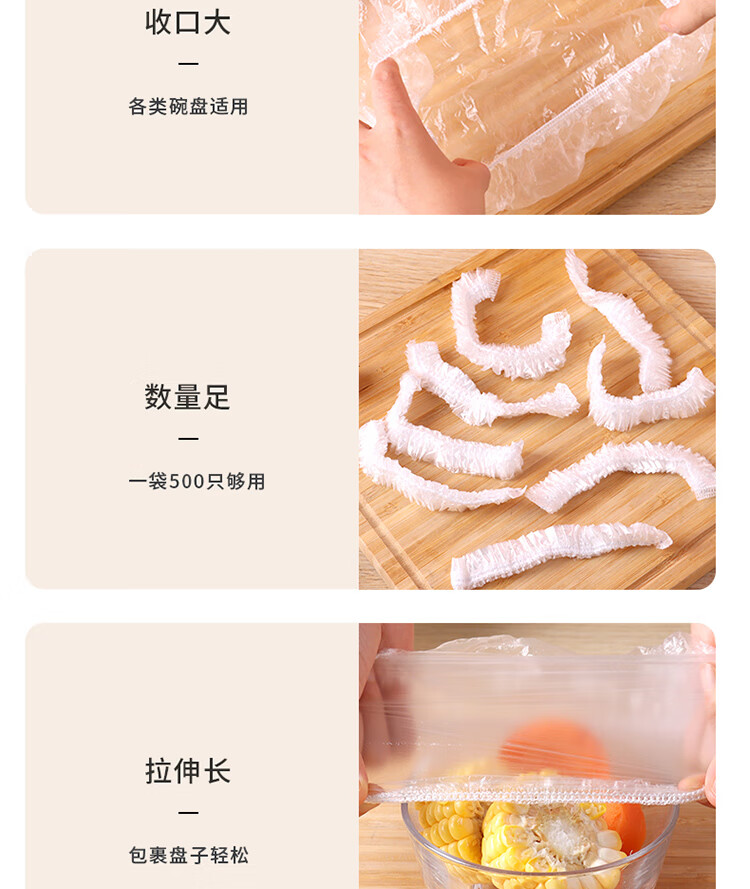Original idea of kitchen cling film covers 500 pieces, food-grade disposable plastic wrap covers, leftovers self-sealing bowl covers, plastic bags, regular transparent 500 pieces, stretchable 35cm