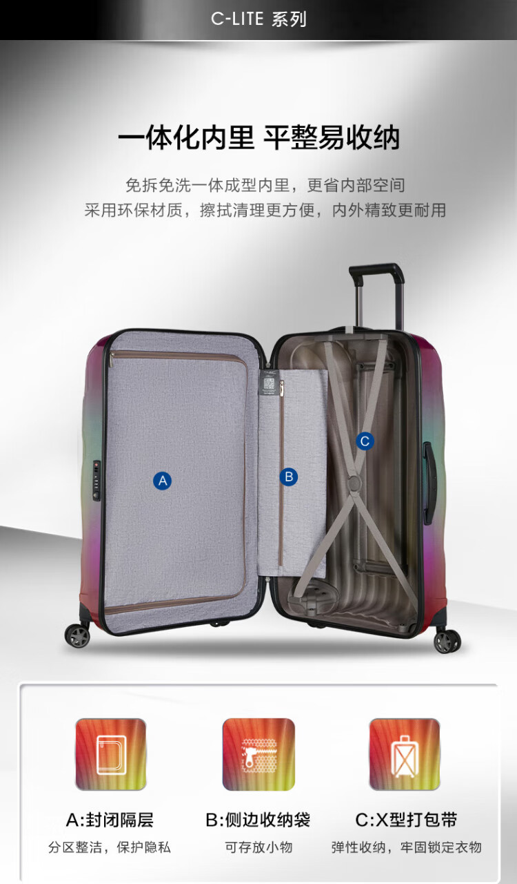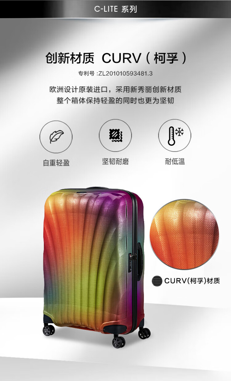 Samsonite Classic Shell Case Large Capacity Boarding Luggage Trolley Case Men's and Women's Fashionable Lightweight Suitcase Lockbox CS2 Neon Color - New Color Launched 20 Inches