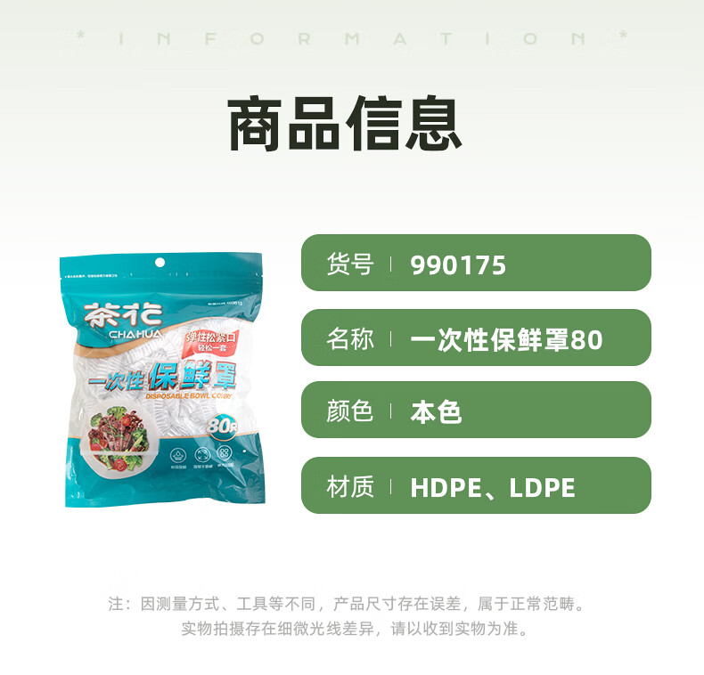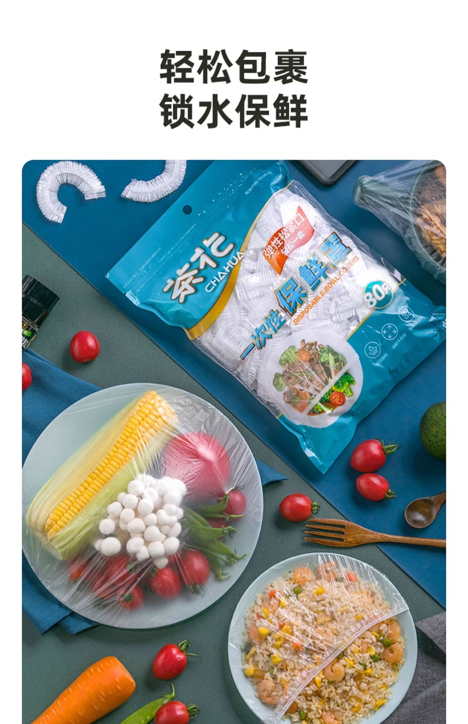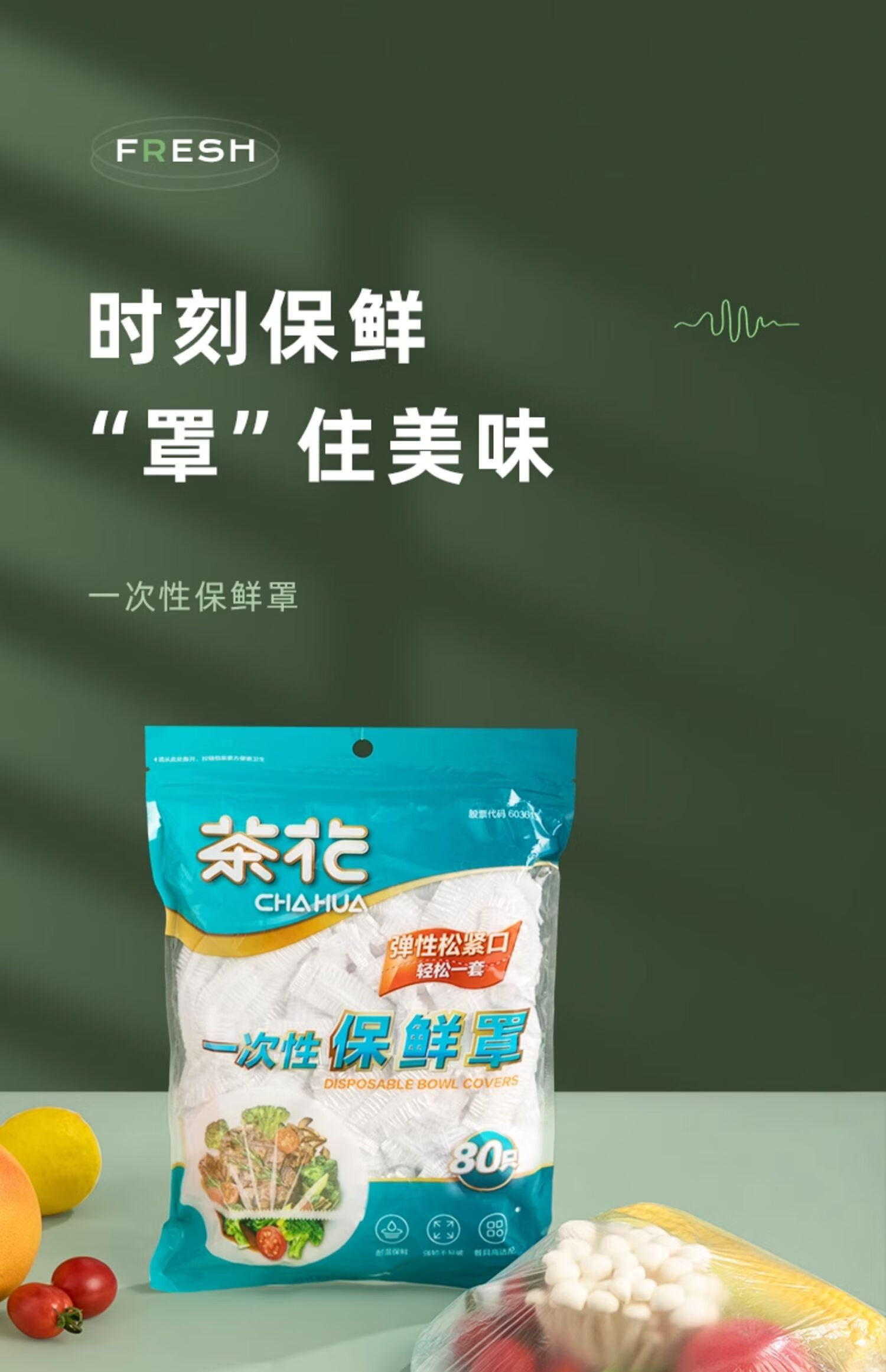 Camellia (CHAHUA) disposable household food-grade cling film sleeves with elastic cling cover leftover dishes and bowl sets for the kitchen 4 packs - 320 pieces, family pack