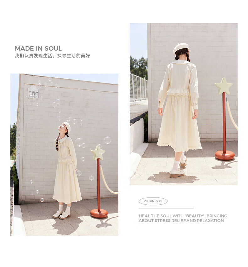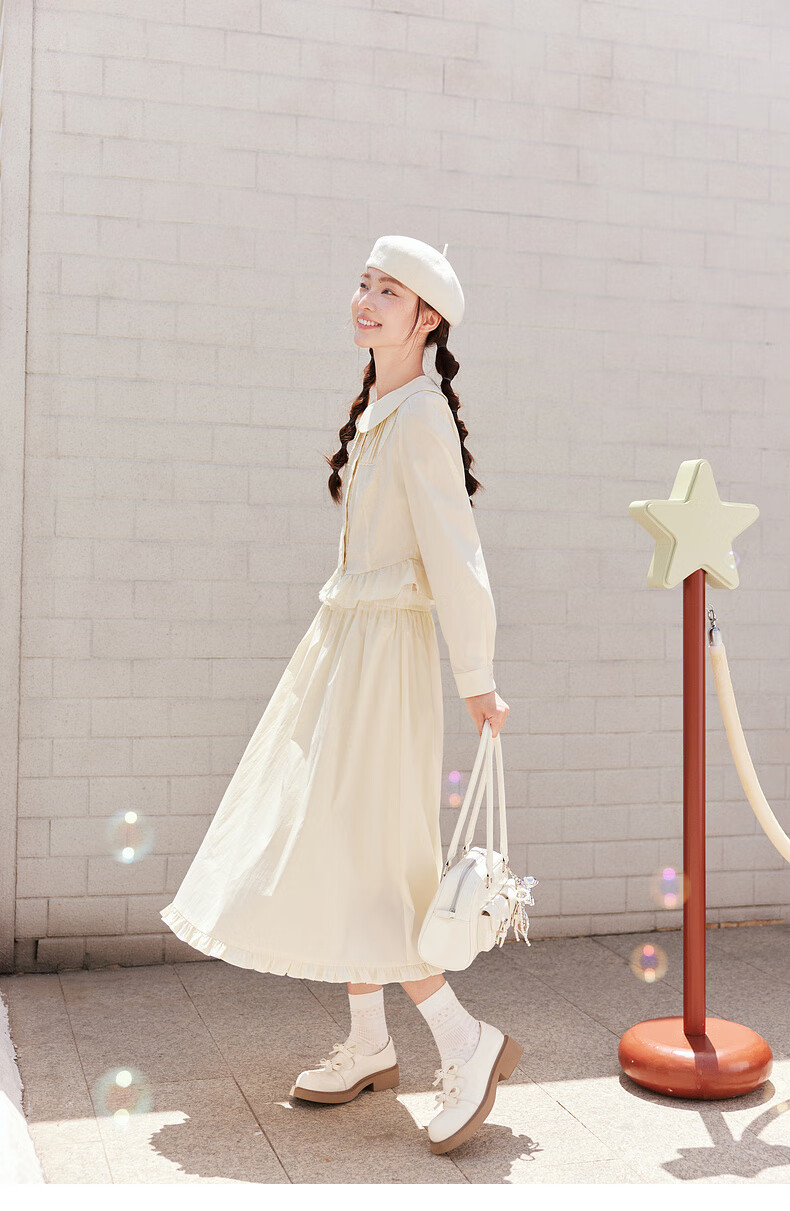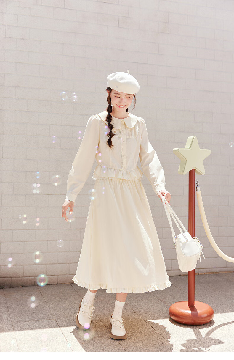 Zihan (ZIHAN) Zihan sweet and revealing style doll collar shirt skirt upper and lower two-piece suit for women 2025 autumn new style Pudding Yellow L