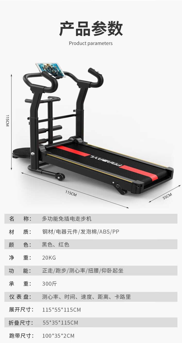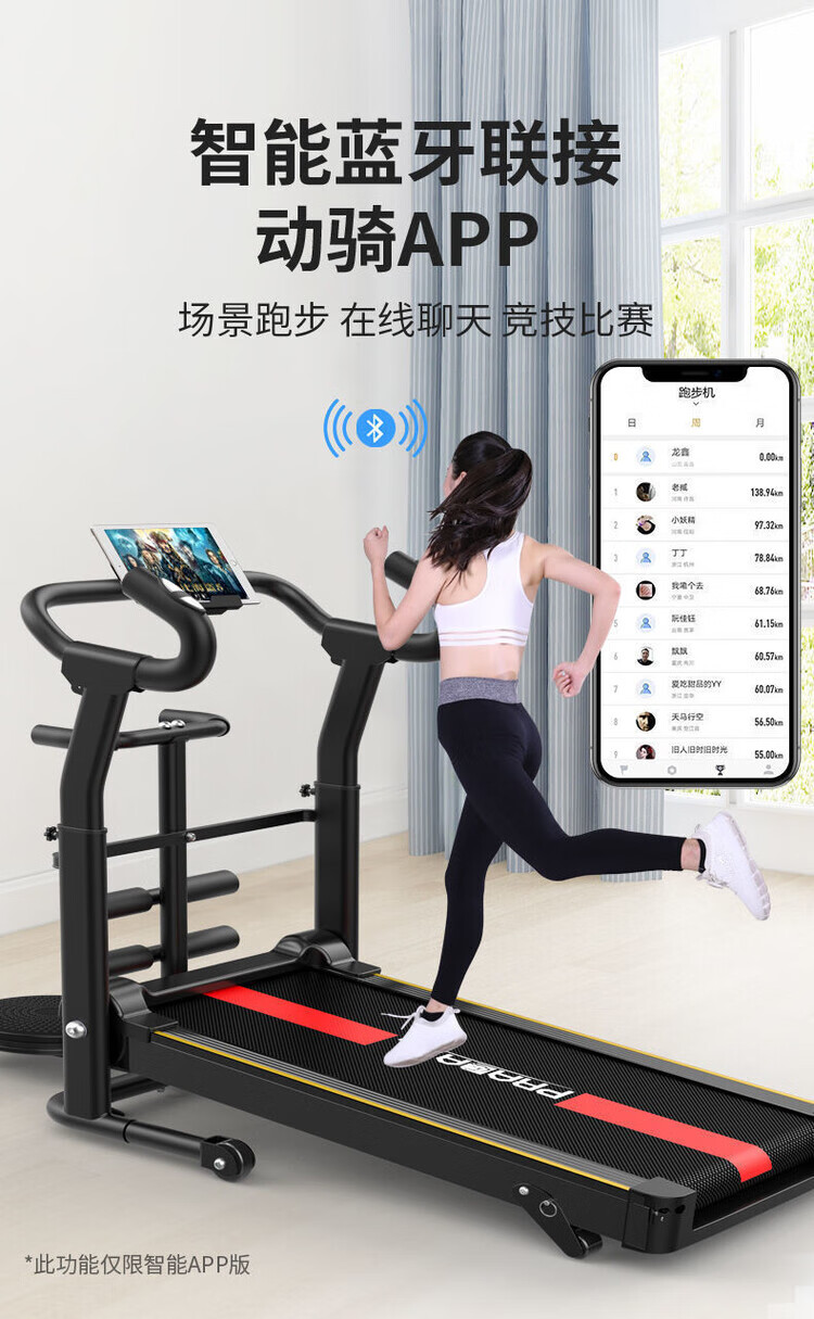 Treadmill Adult Home Small Folding Silent Folding Silent Indoor Home Gym Special Fitness Equipment for Adults Electric Drive Intelligent Bluetooth Version-Black