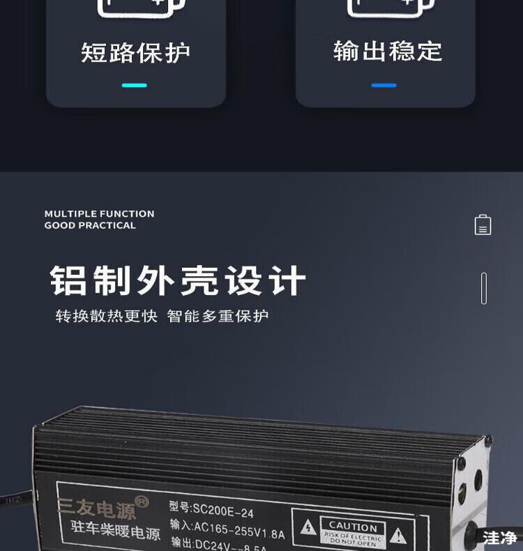 Transformer 220V to 12V 24V household parking diesel heating power supply fuel heater to household power converter transformer 220V to 24V (aluminum shell)