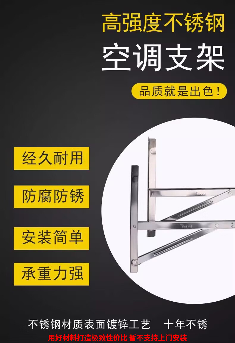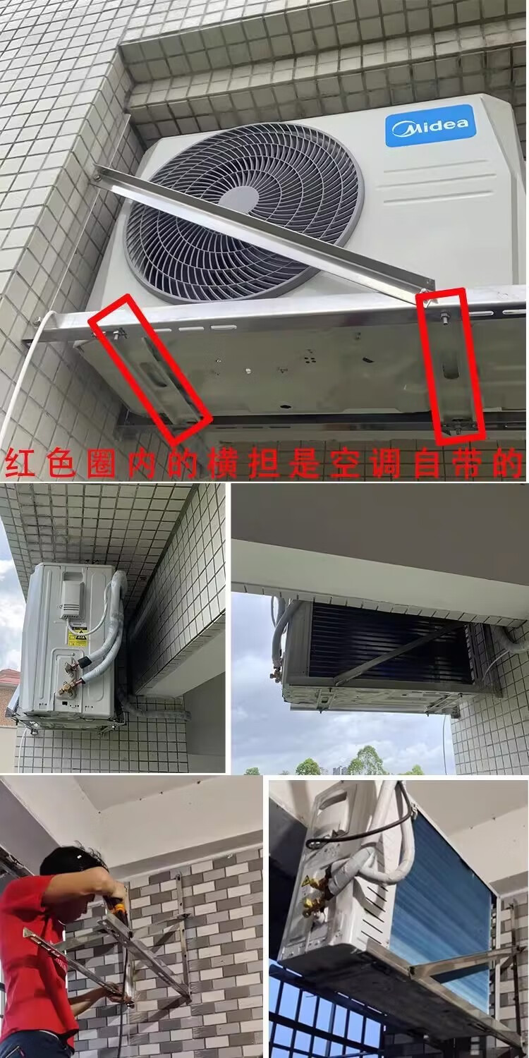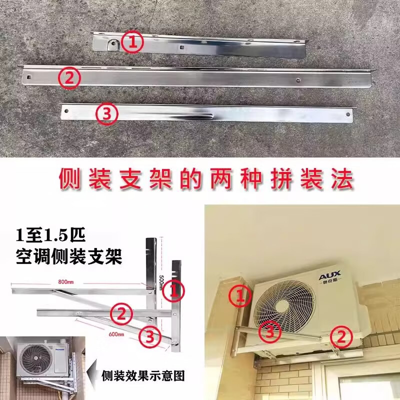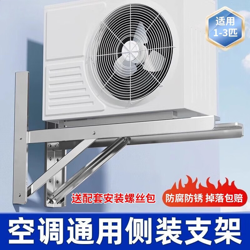 Air conditioner outdoor unit side-mounted bracket stainless steel safety heightening, lengthening and thickening 1-1.5P/2P/3 horizontal mounting shelf bracket universal high-rise household 2-3P stainless steel side-mounted bracket thick 1.7MM screws provided