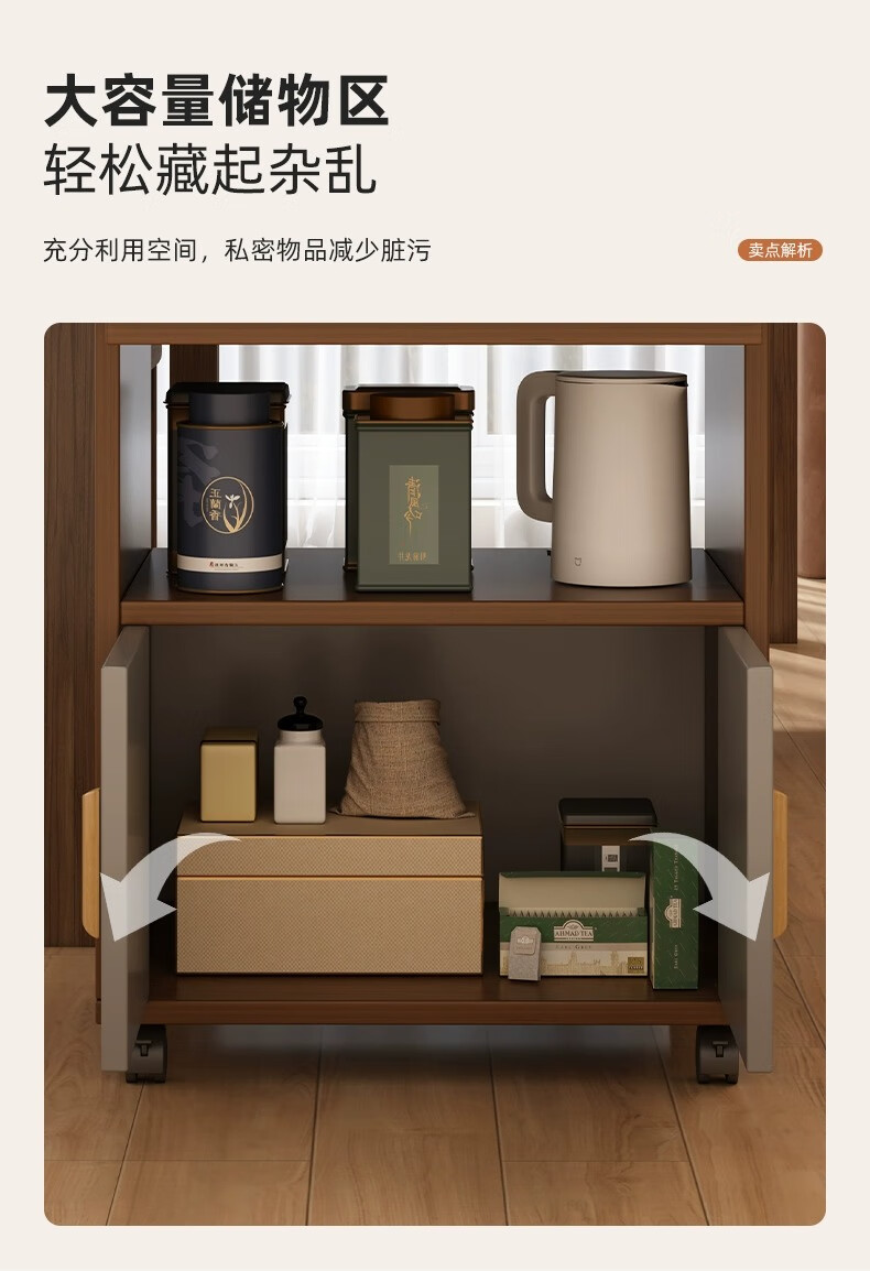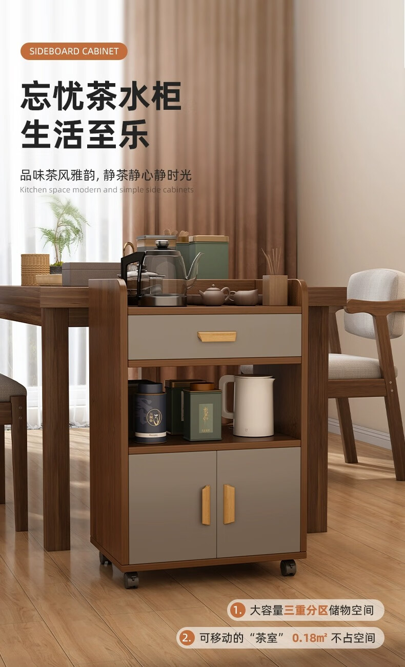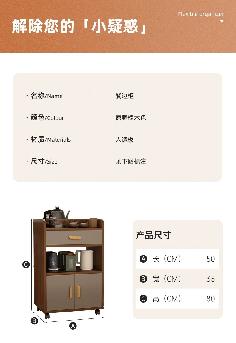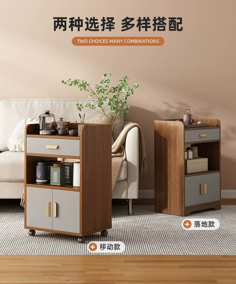 Movable coffee table sofa side cabinet side table tea cabinet office tea side cabinet under water tea table side cabinet tea table double door with one drawer and one compartment oak color