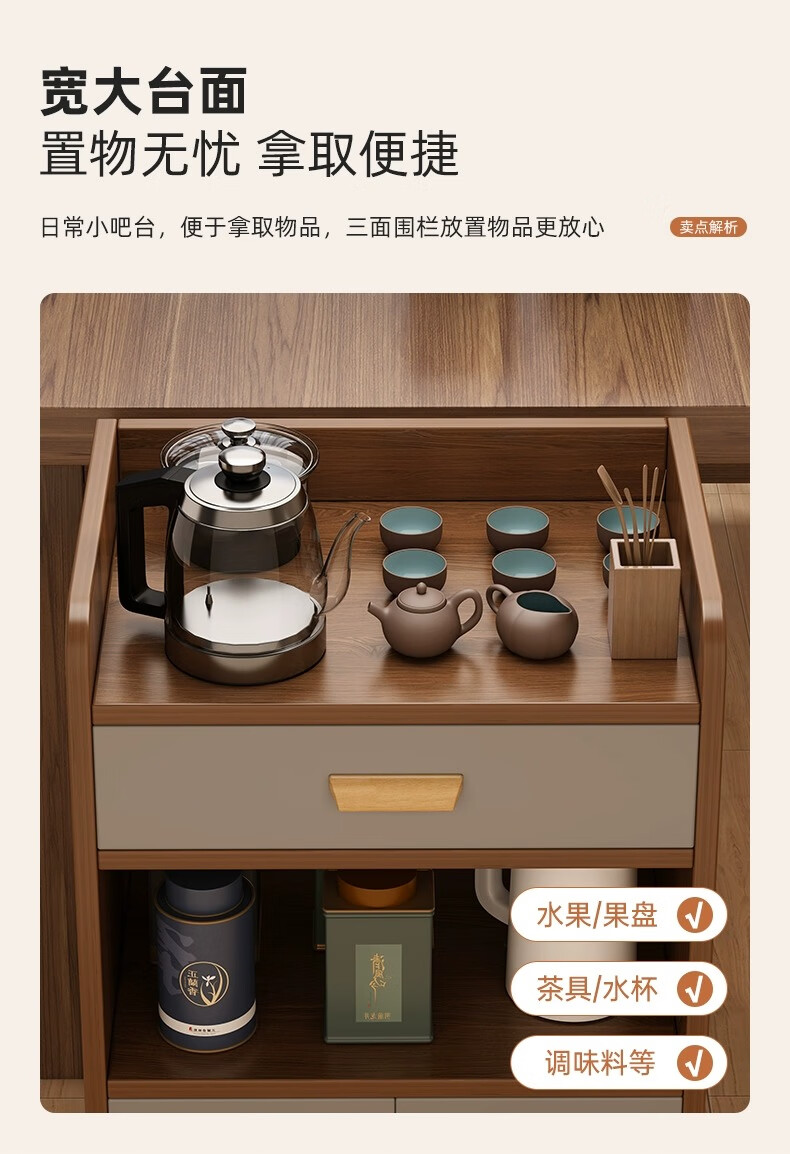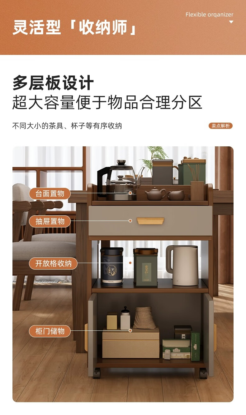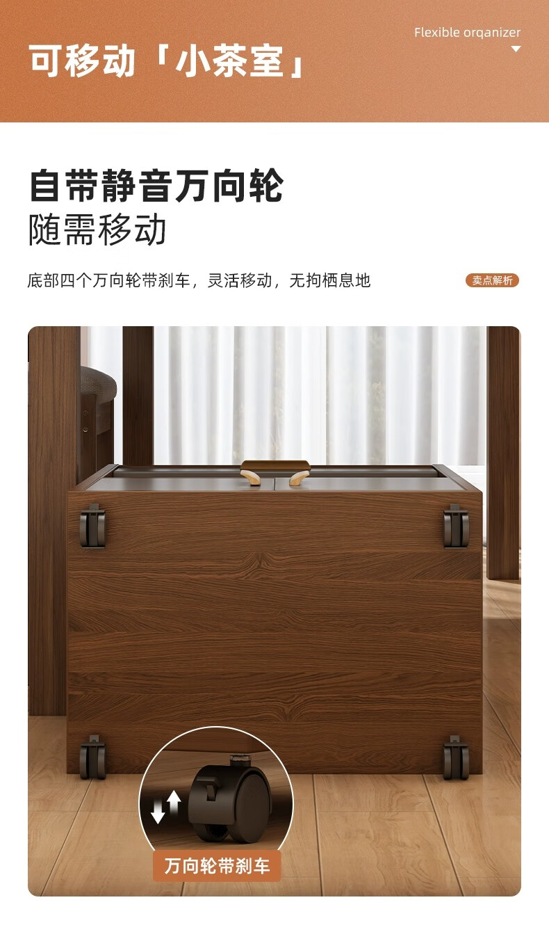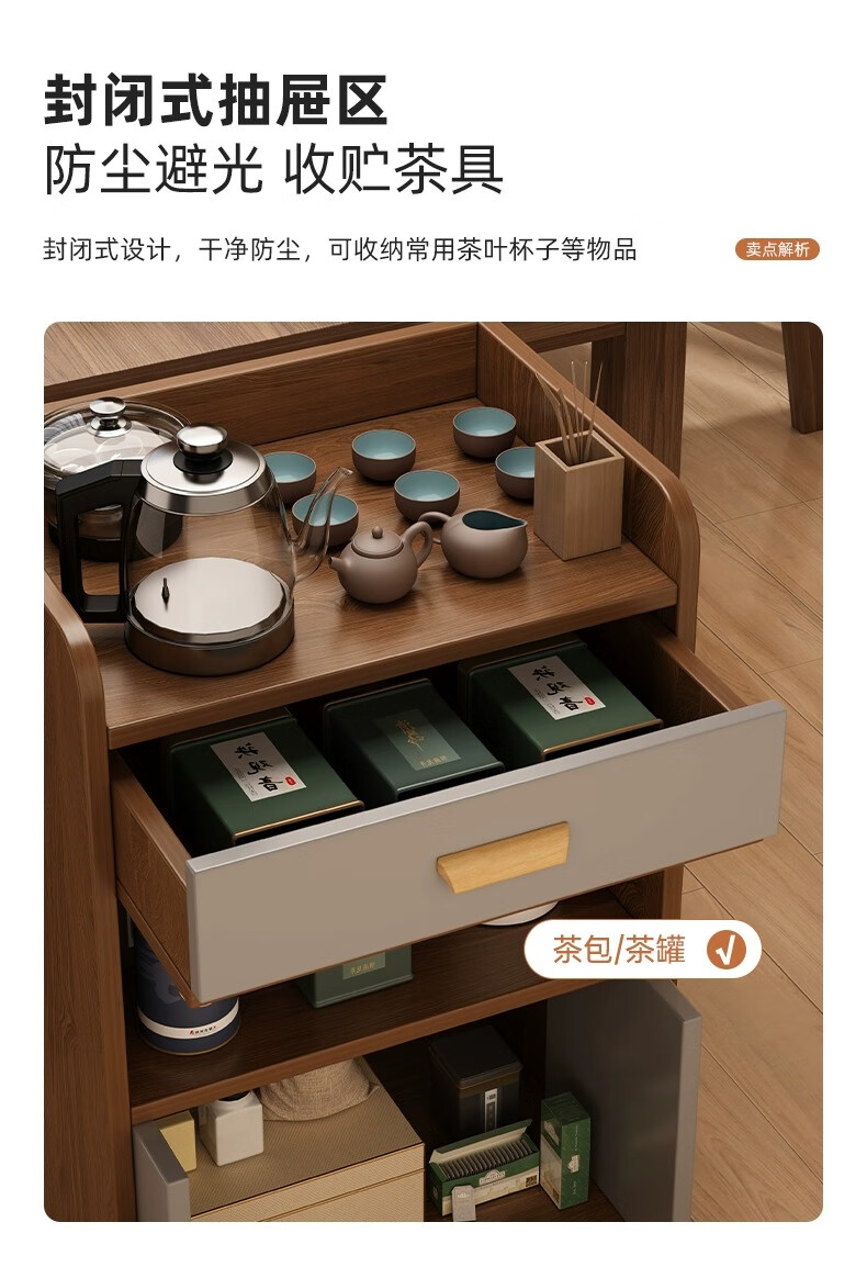 Movable coffee table sofa side cabinet side table tea cabinet office tea side cabinet under water tea table side cabinet tea table double door with one drawer and one compartment oak color