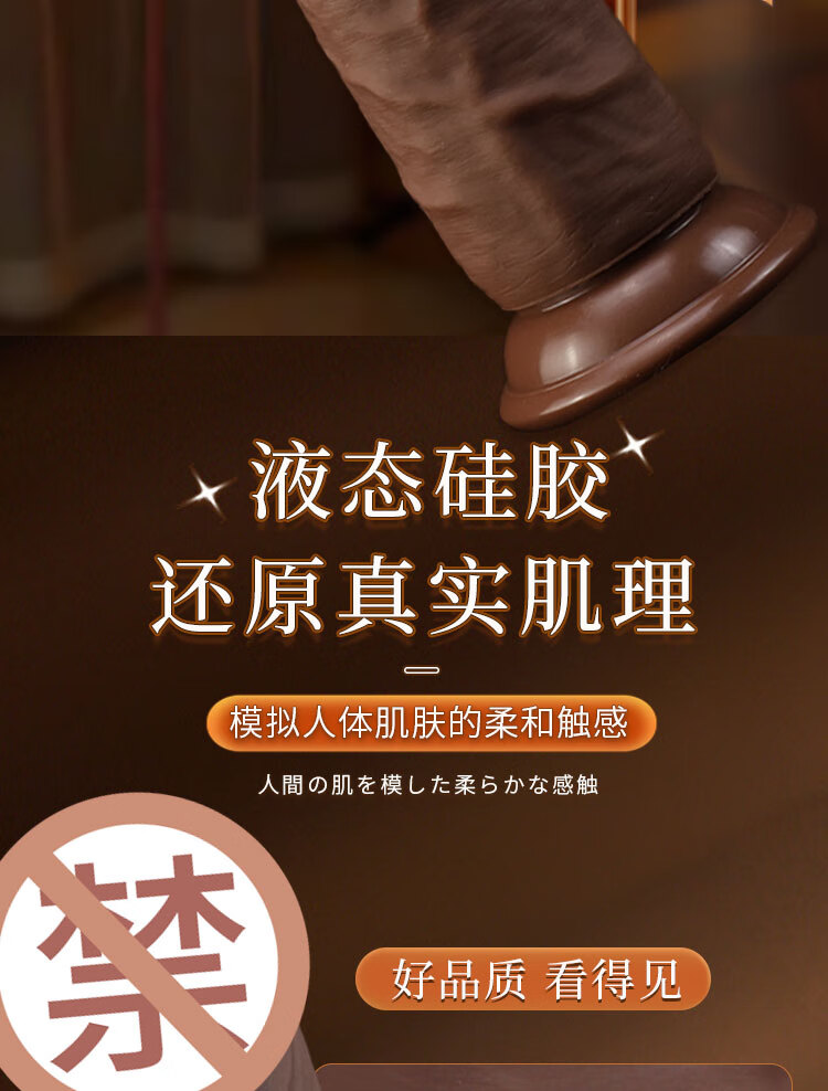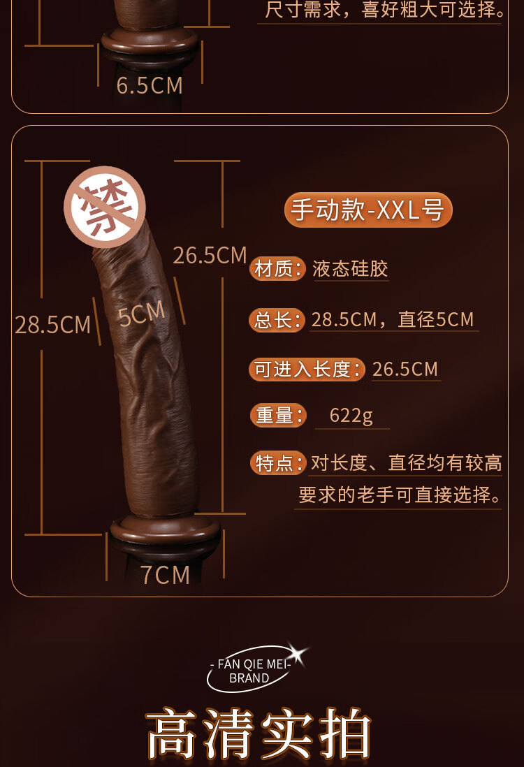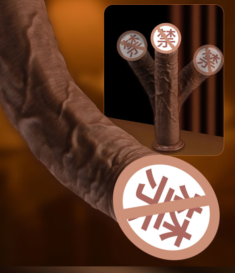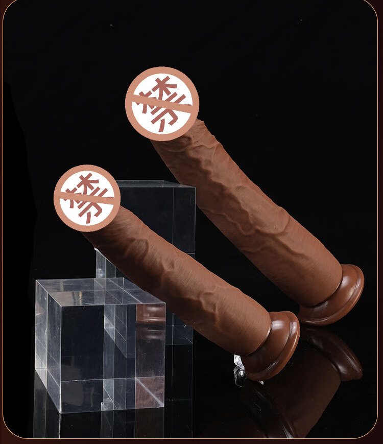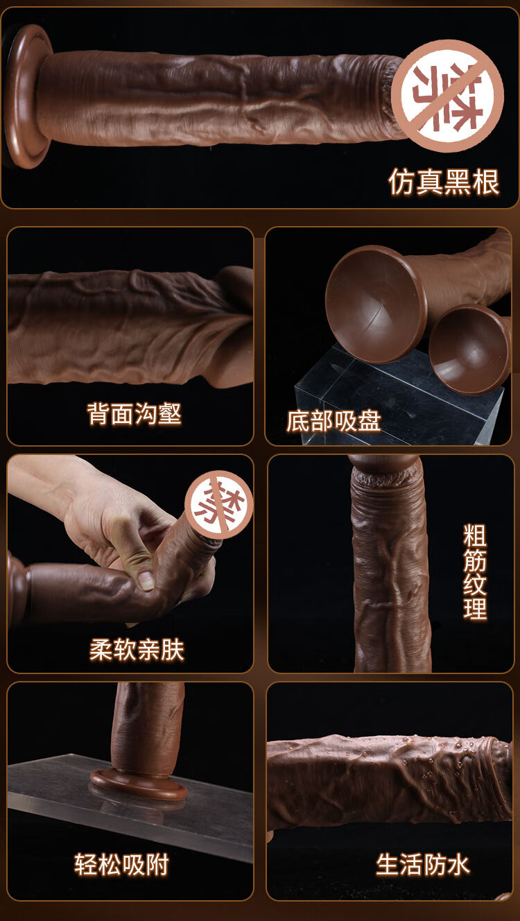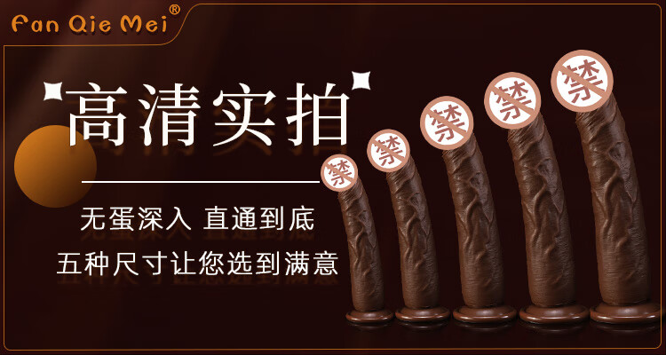 FAN QIE MEI liquid silicone eggless penis female simulation super soft black penis adult sex toy masturbator manual black coffee color M code