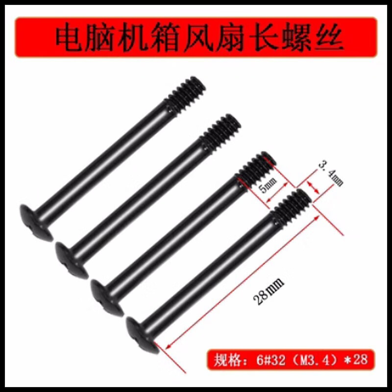 Shushe water-cooled radiator fan long screw computer chassis power supply 6#32 round head extended fixing screw thread 3.4MM 30mm radiator screw 16 pieces