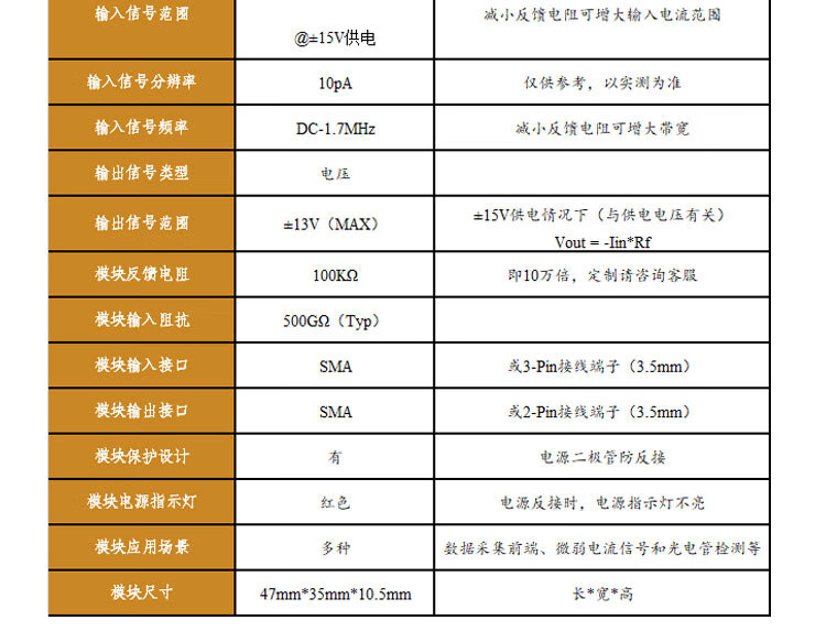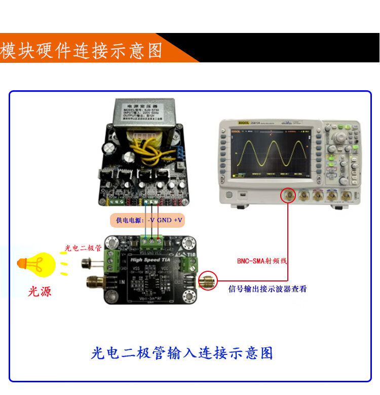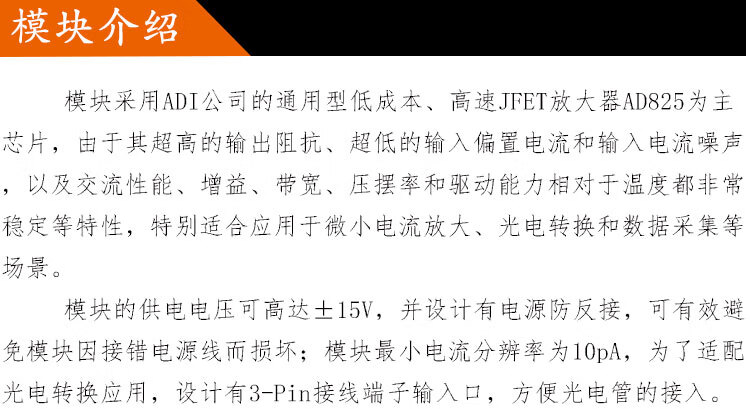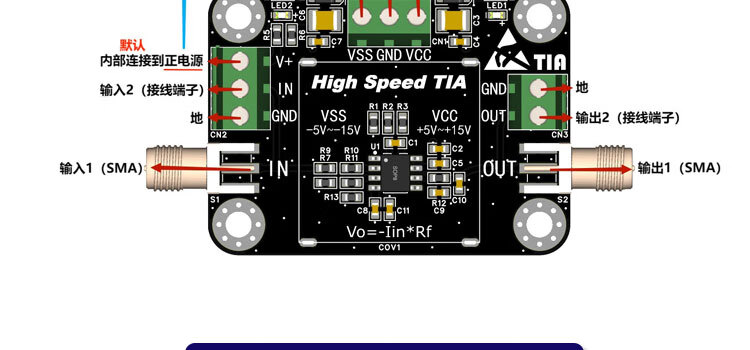 A825 transimpedance TIA amplifier module nA high-speed IV photocurrent to voltage APPIN photodetector gain default 100,000 times
