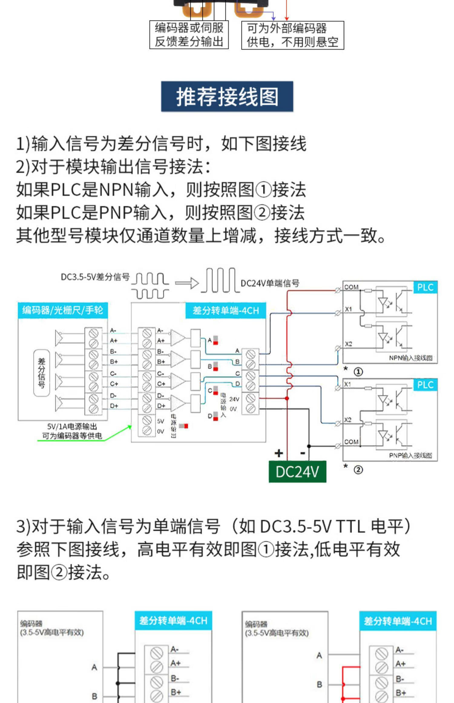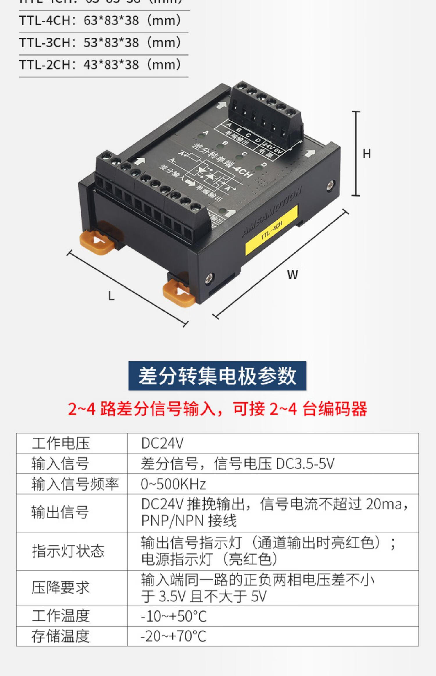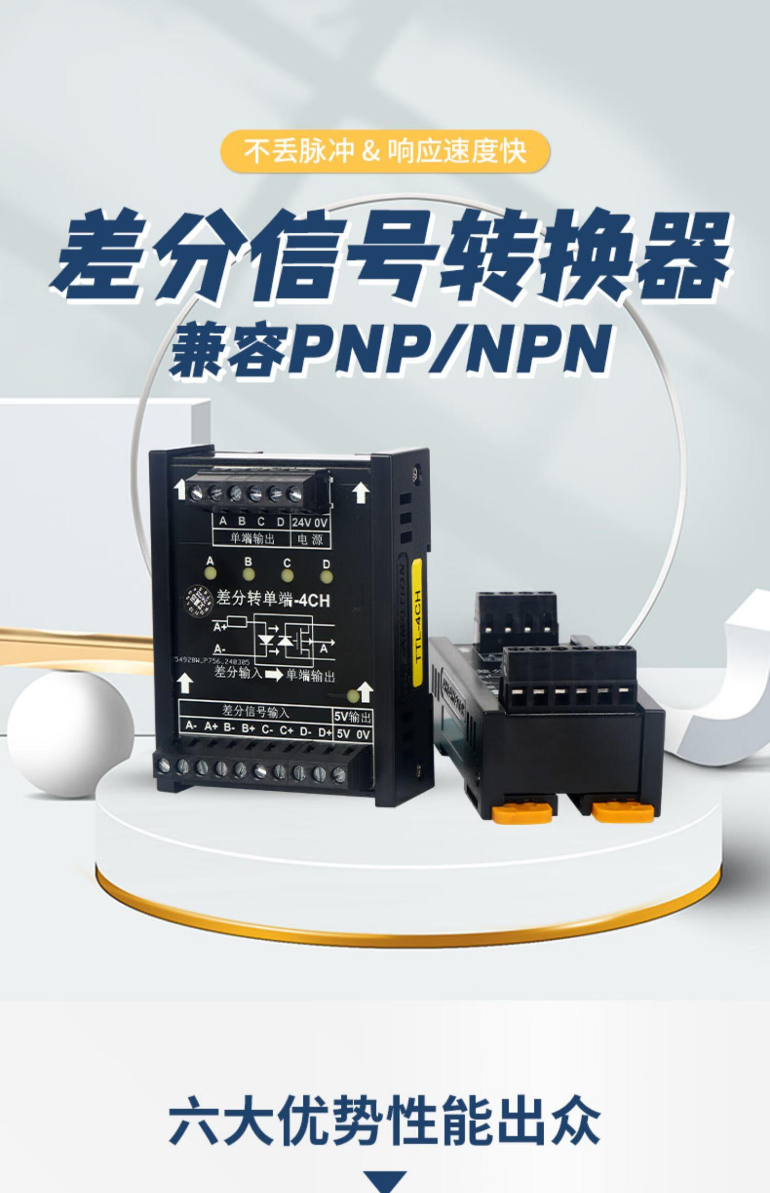 Differential to collector servo encoder signal converter 5V to 24V differential to single-ended NPNPNP module differential to collector 3 channels