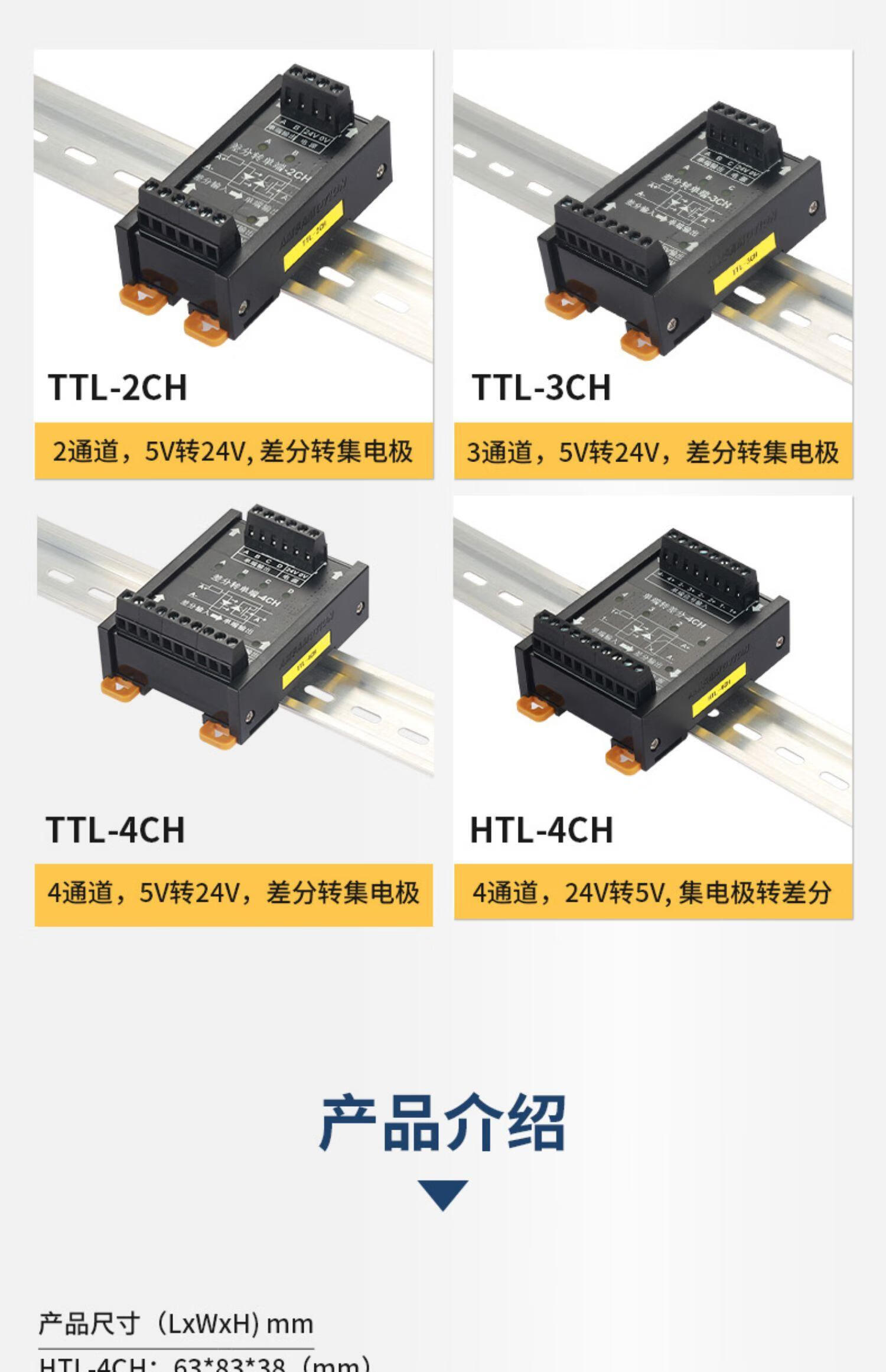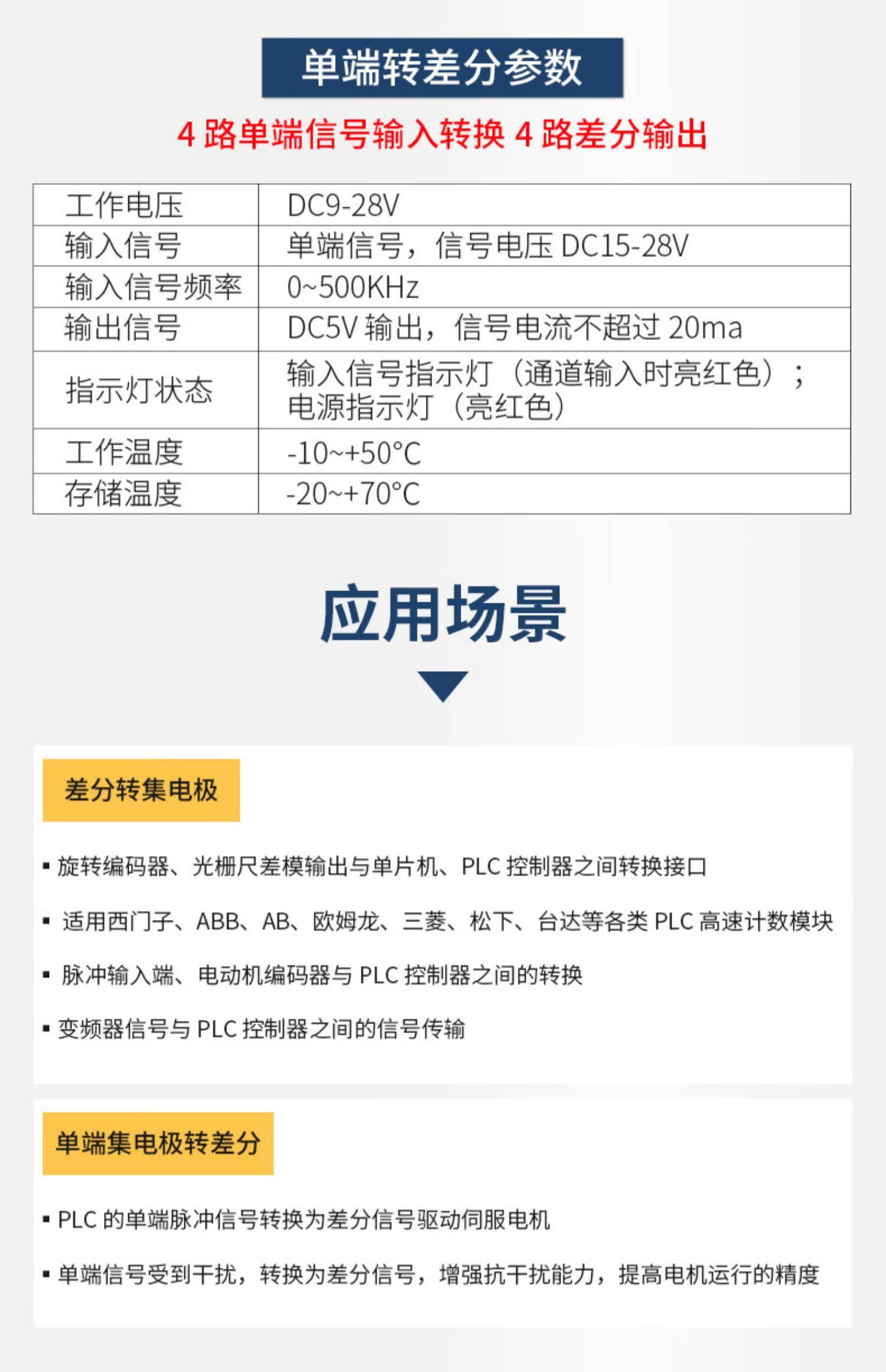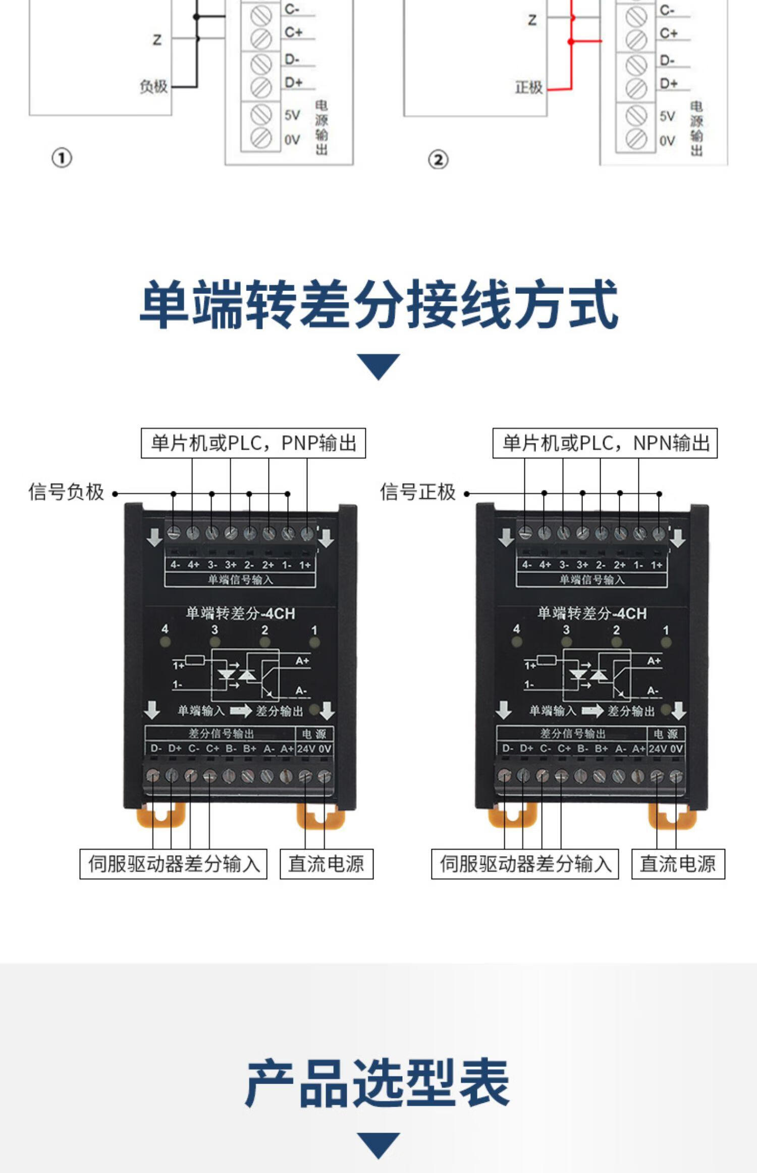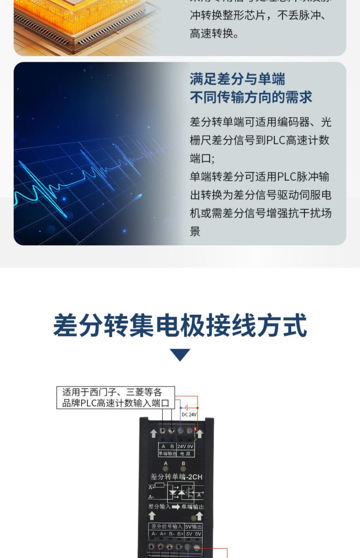 Differential to collector servo encoder signal converter 5V to 24V differential to single-ended NPNPNP module differential to collector 3 channels