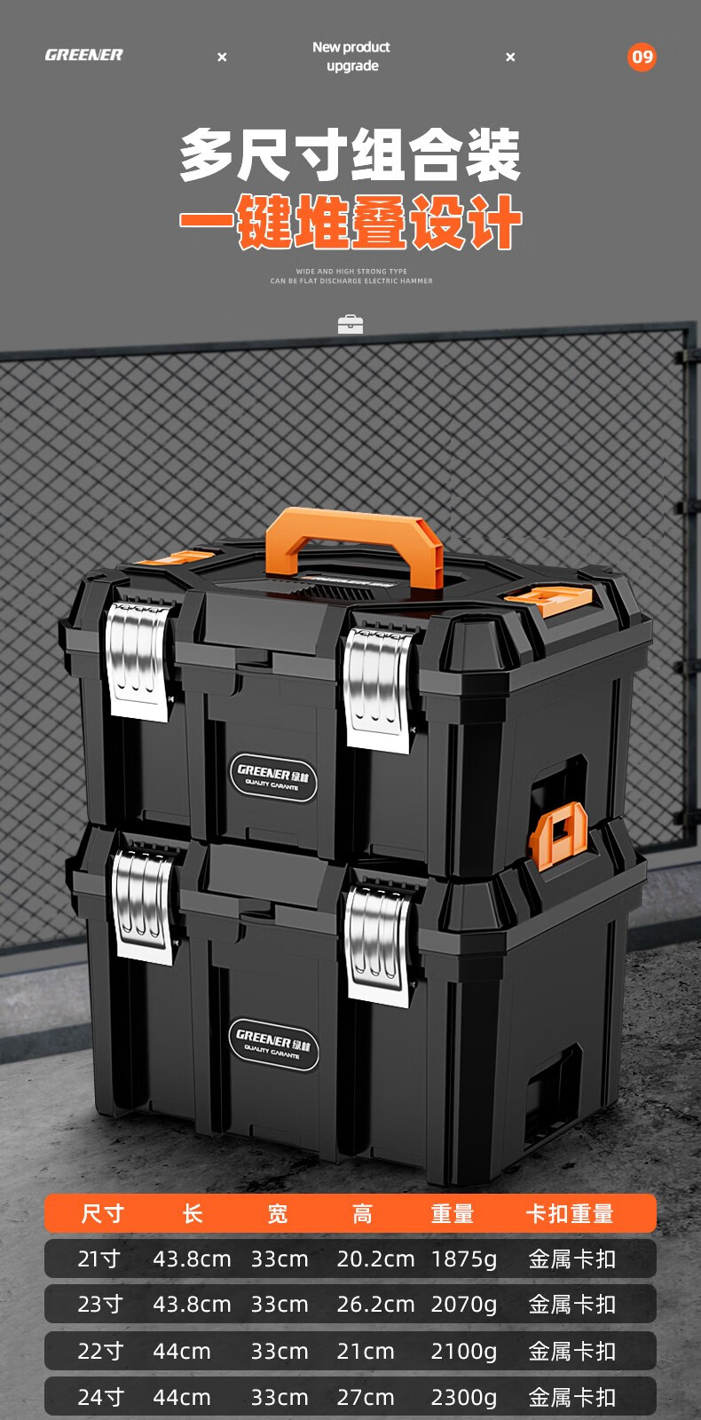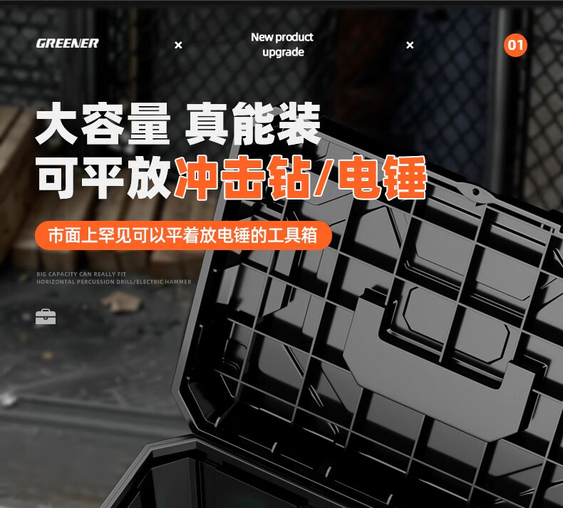 GREENER multifunctional electric hardware tool storage box stacking household storage box industrial grade extra large large capacity 21 29 inch black diamond extended and taller version easy