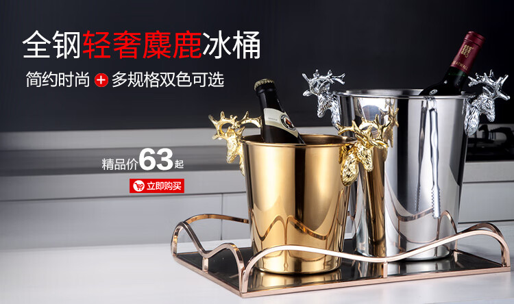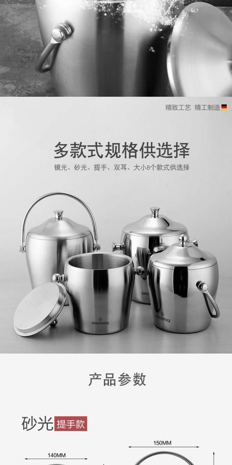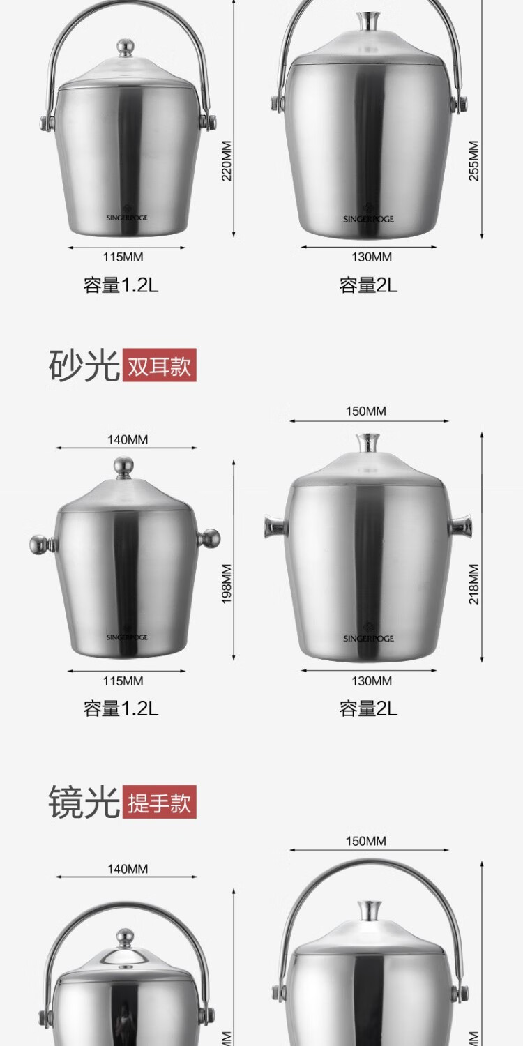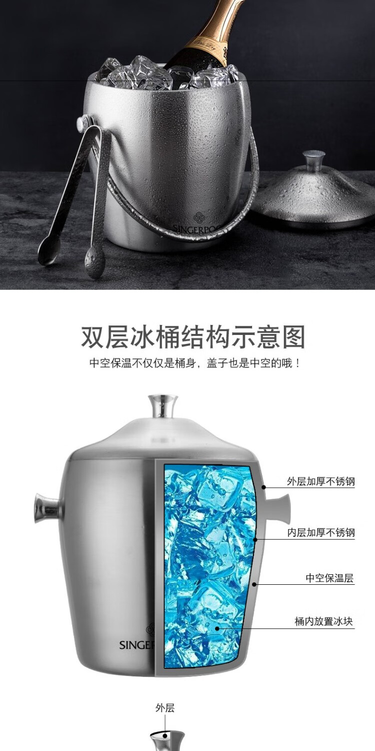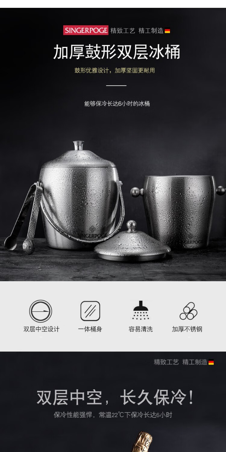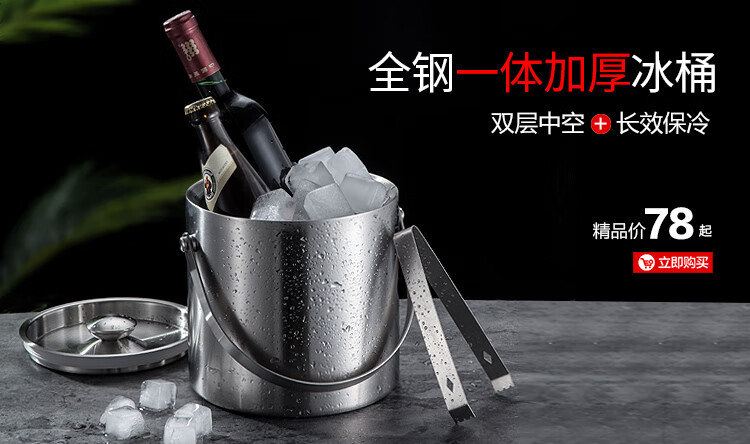 Magic Bean Shenghuo stainless steel ice bucket champagne bucket red wine iced beer ice bucket ktv bar insulation ice wine bucket ice bucket 2L bright binaural ice bucket with ice clip set