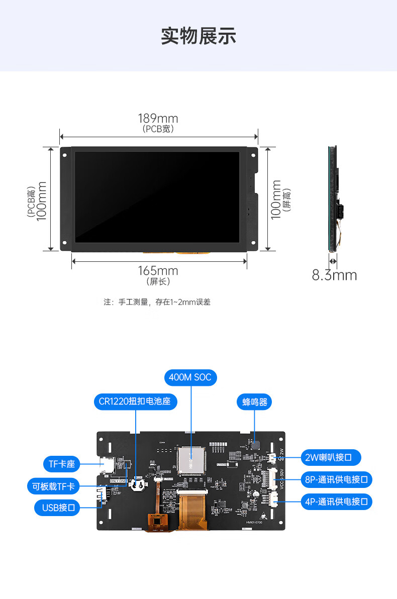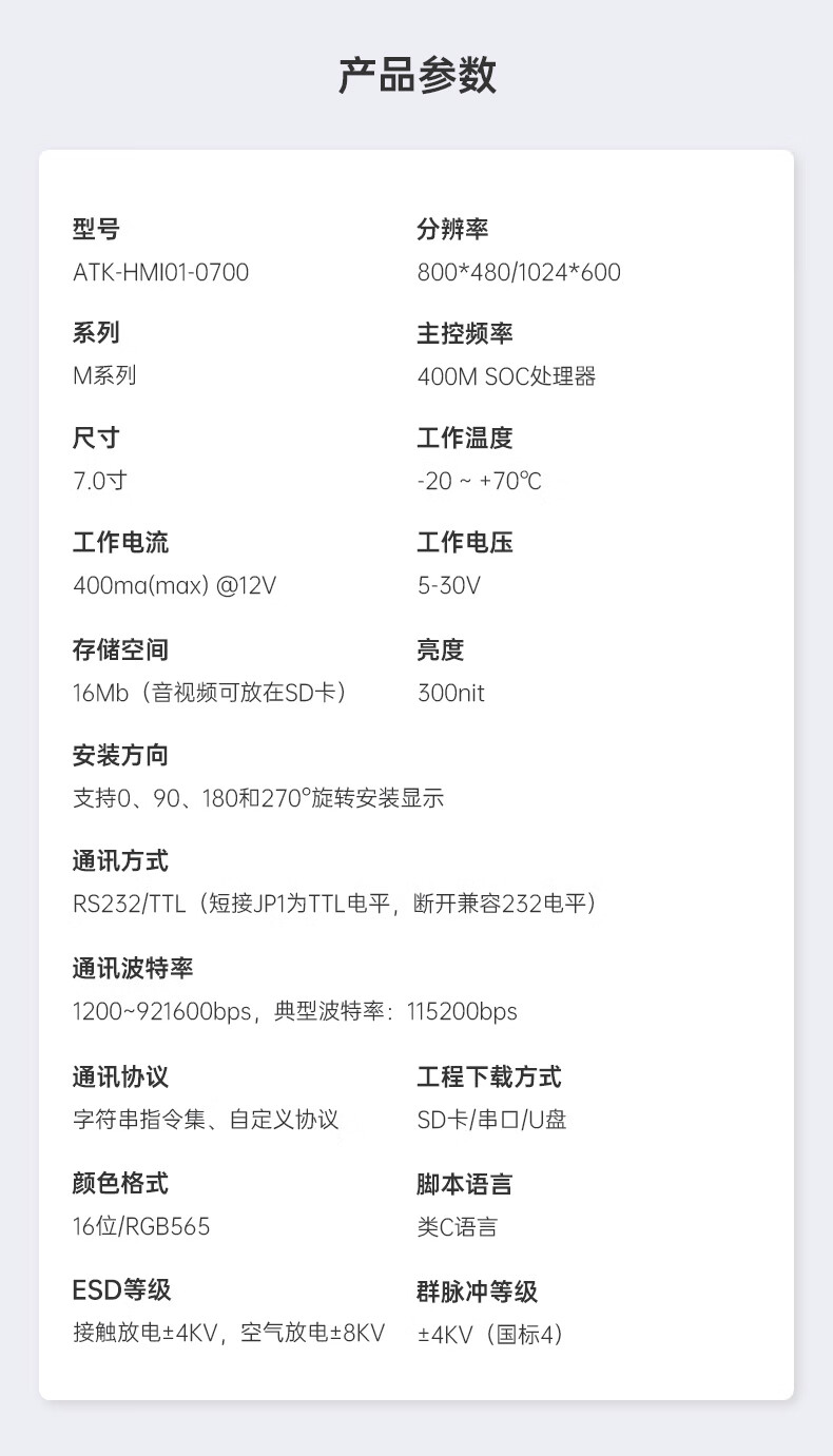 Punctual Atomic HMI 7-inch serial screen touch screen TFT LCD liquid crystal screen M series capacitive display HMI01-0700 800480 version + HMI debugging board