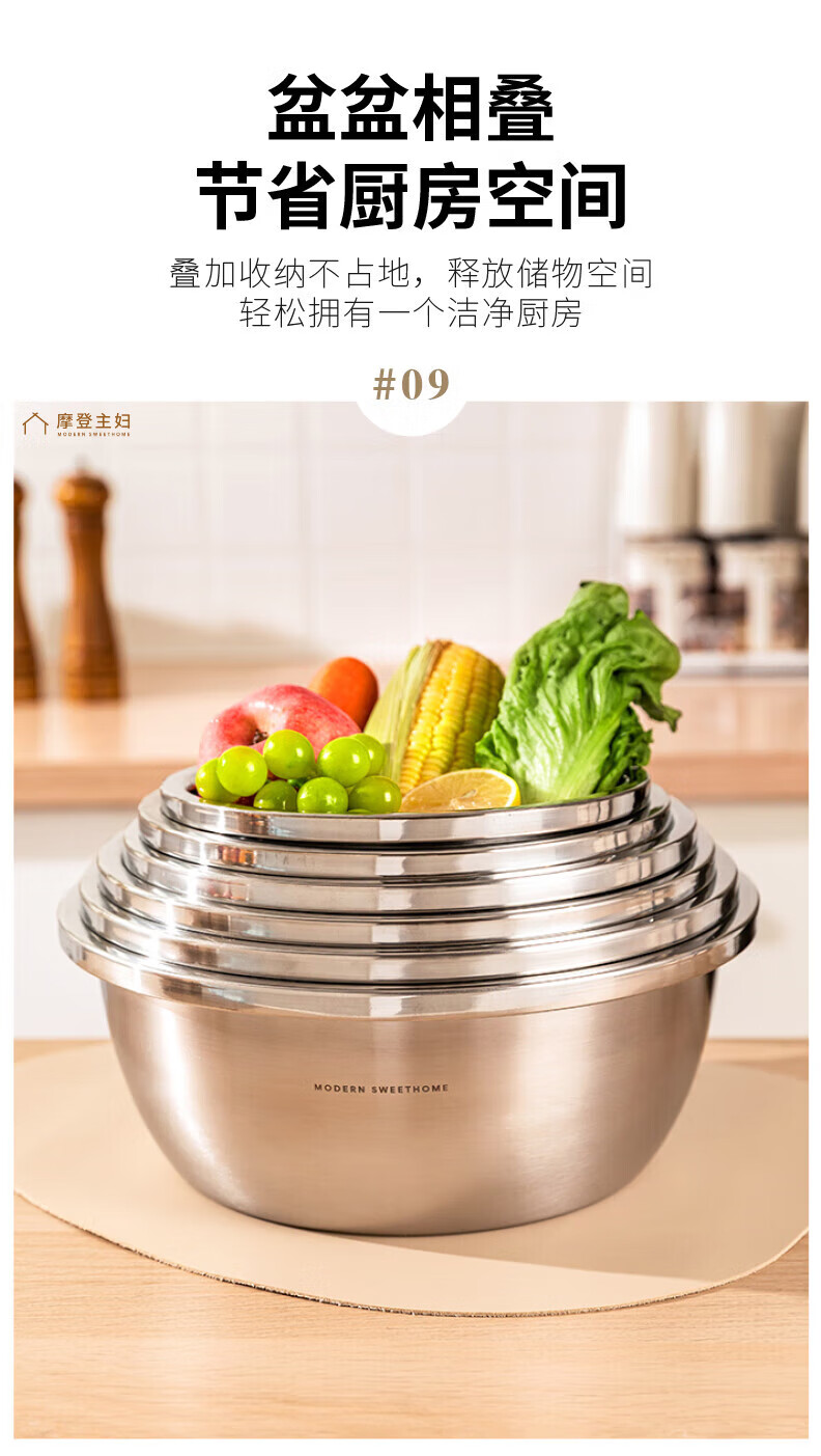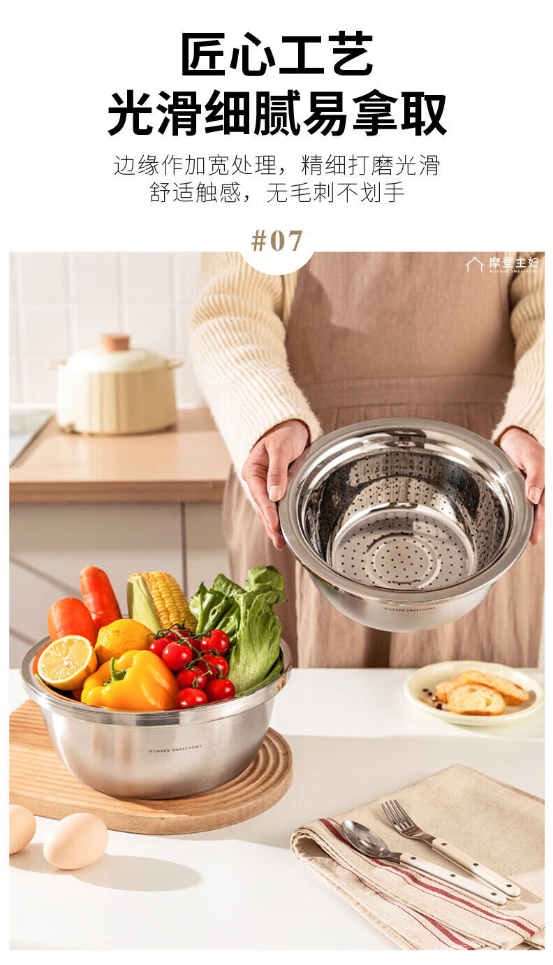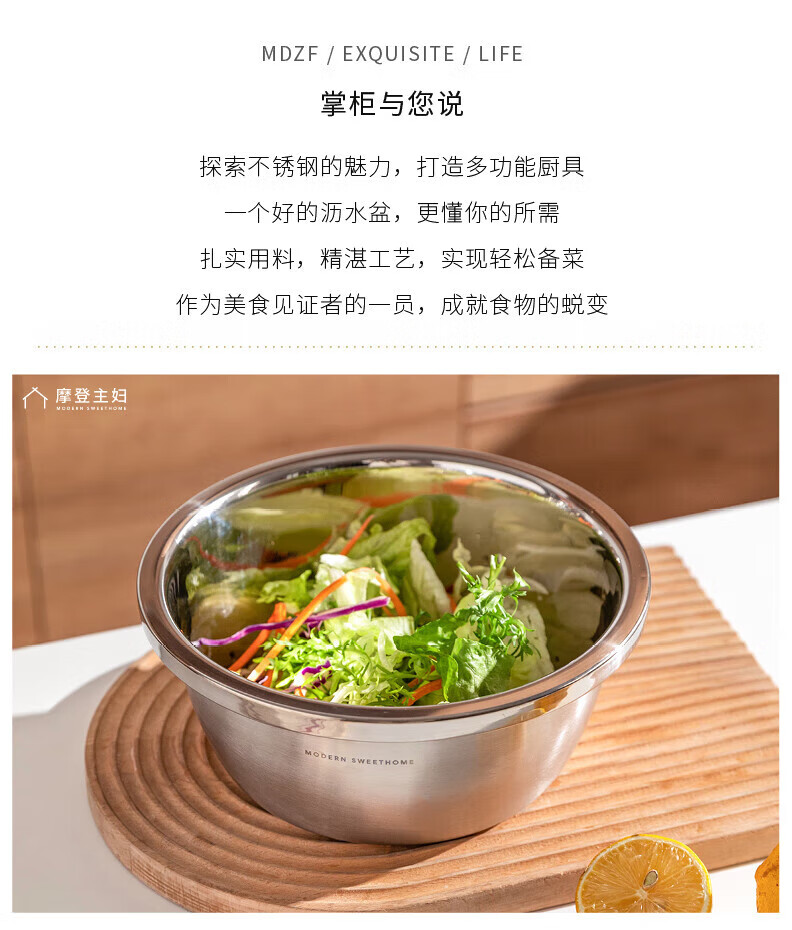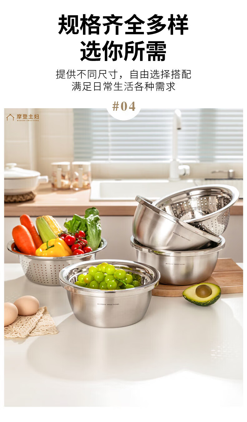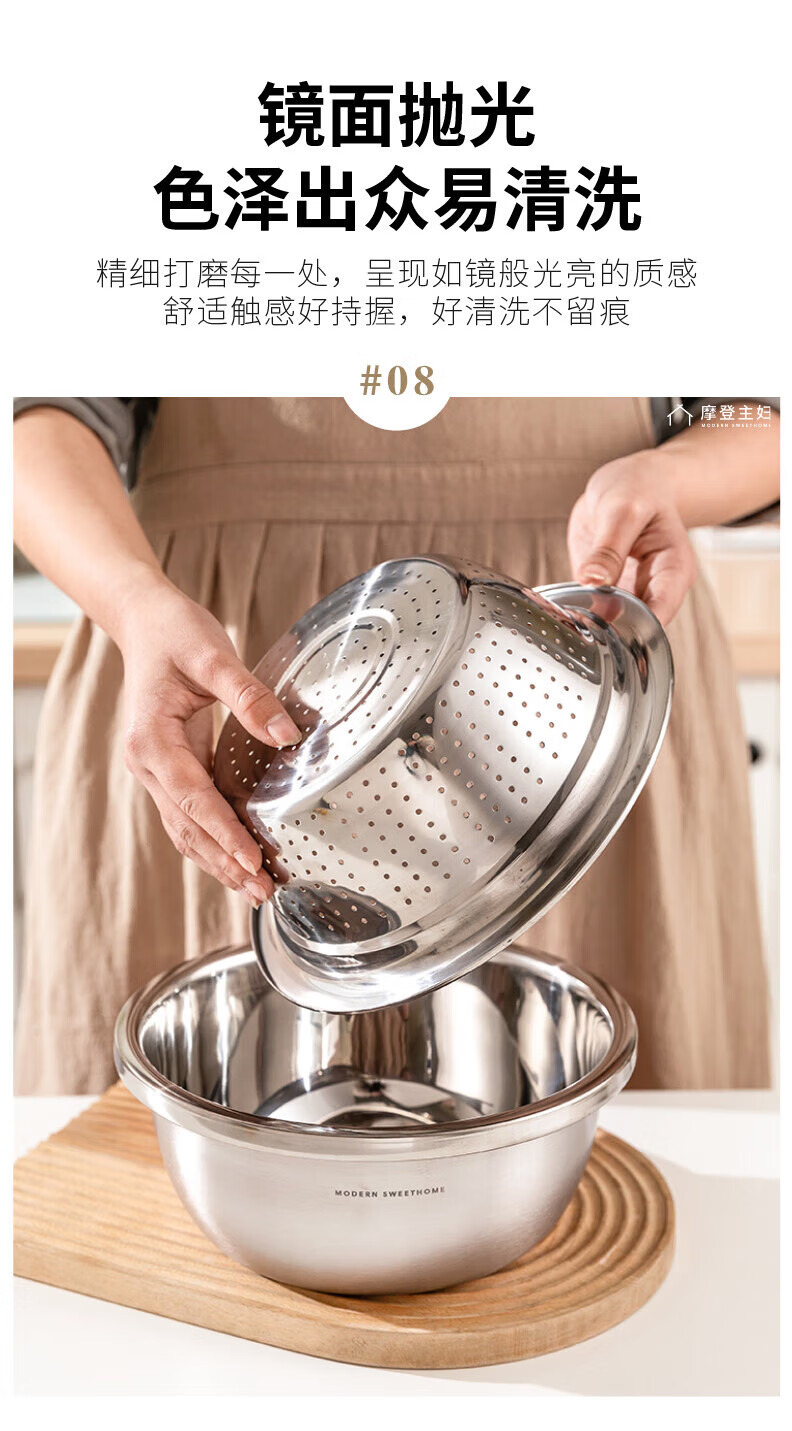 Modern Housewife Wash Basin Drain Basket 304 Stainless Steel Basin New Fruit Basket Rice Washing Artifact Washing Drainage Basket 32cm Drain Basin 304 Stainless Steel