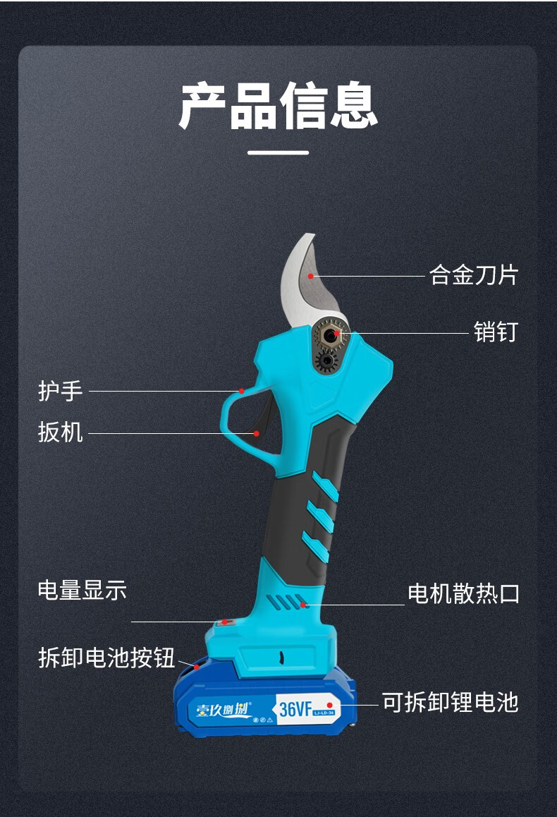 1988 electric scissors rechargeable garden pruning scissors fruit tree shears lithium battery branch shears garden shears can cut 3.0c thick 3 36VF brushless two batteries and one charge