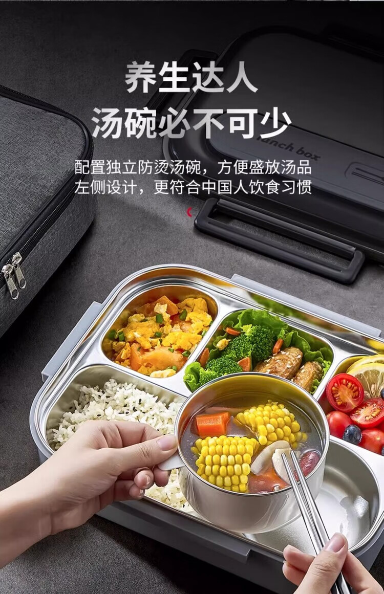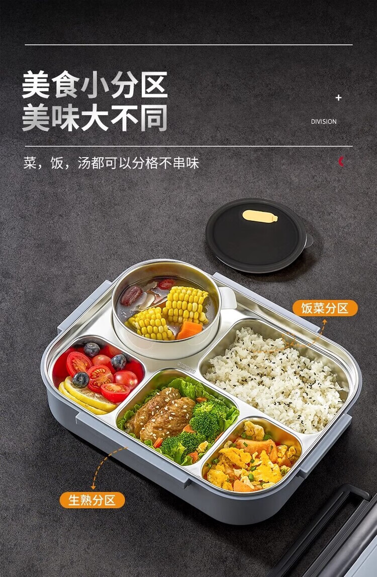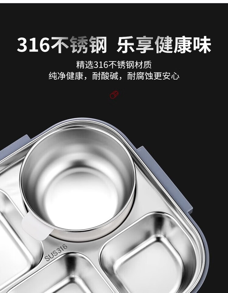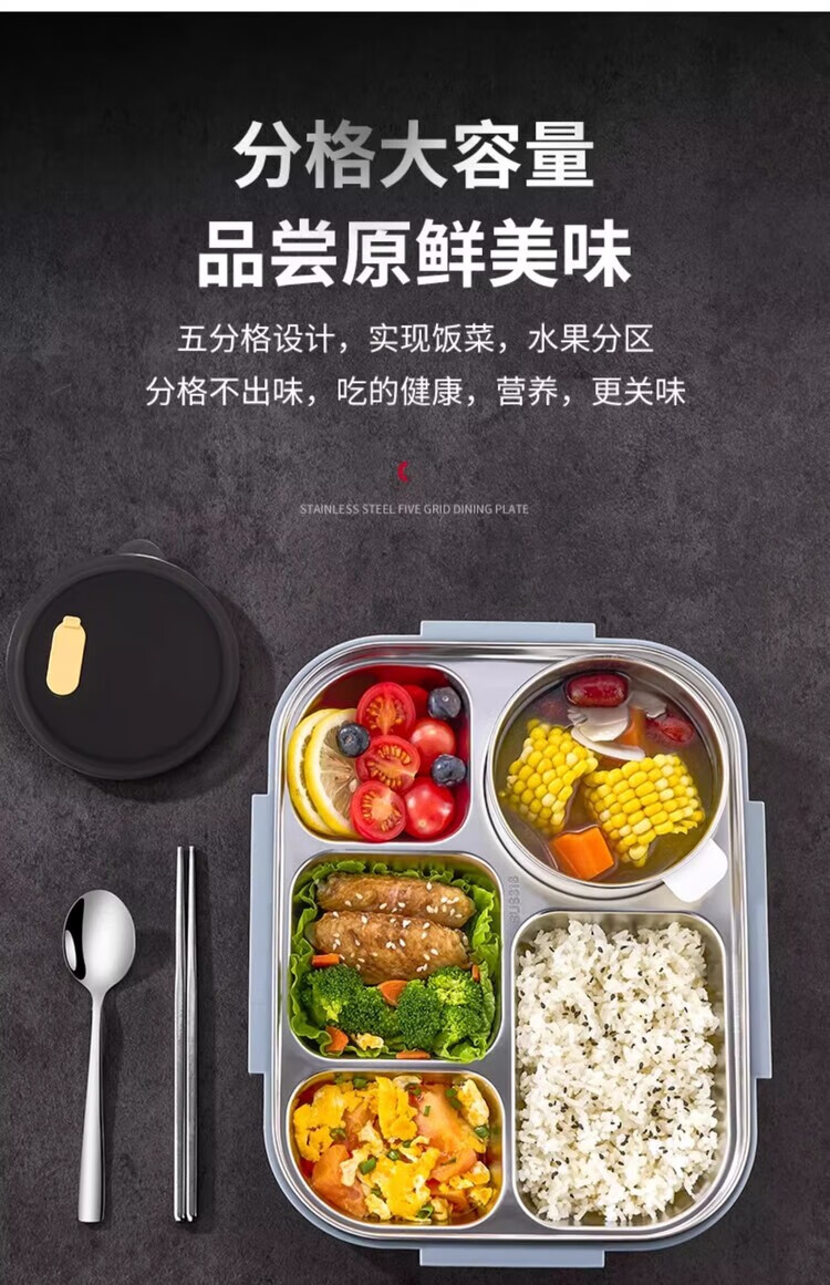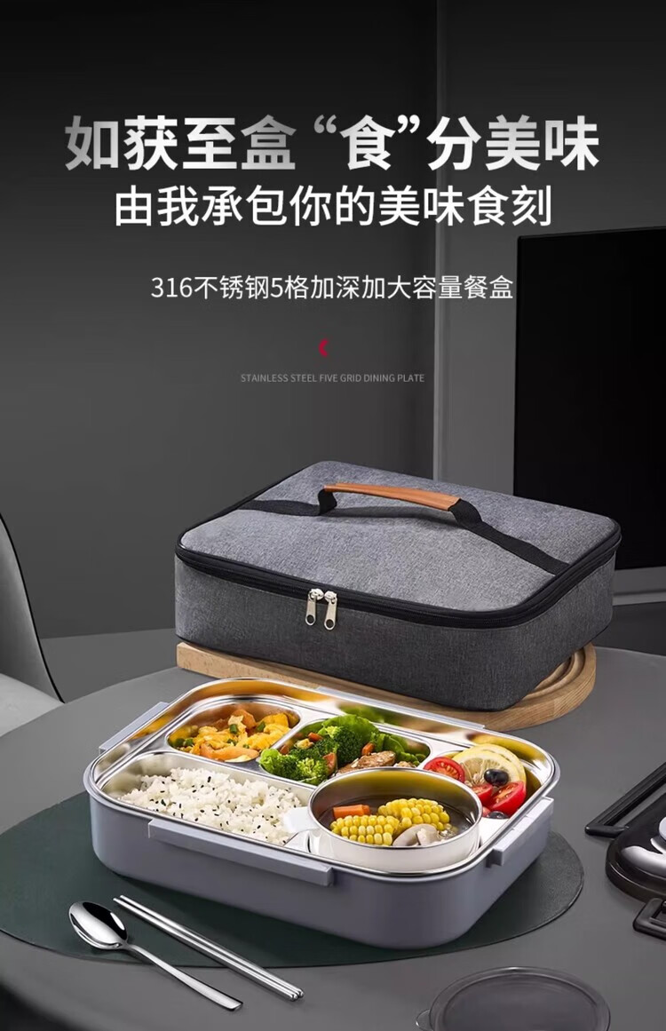 AILUKI Japanese 316l stainless steel lunch box large capacity portable lunch box for office workers, canteen student lunch plate lunch box 316 stainless steel gray large size 5 compartments + cutlery + insulation bag