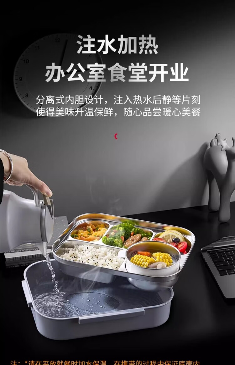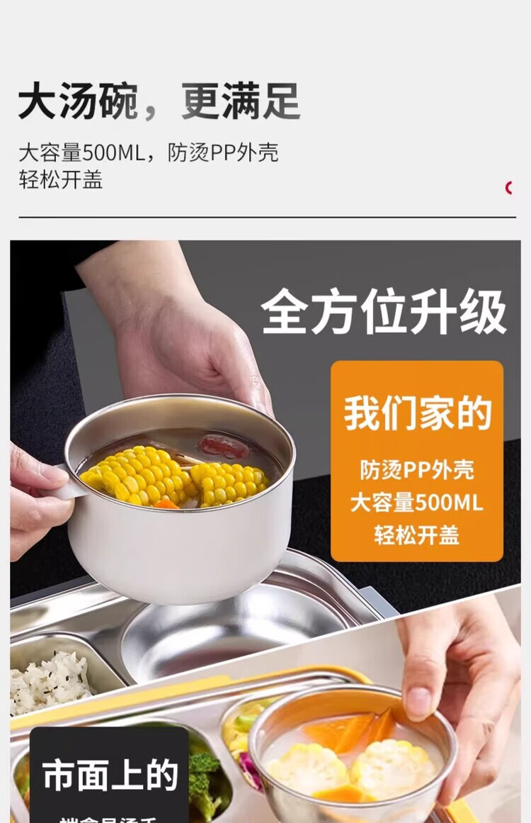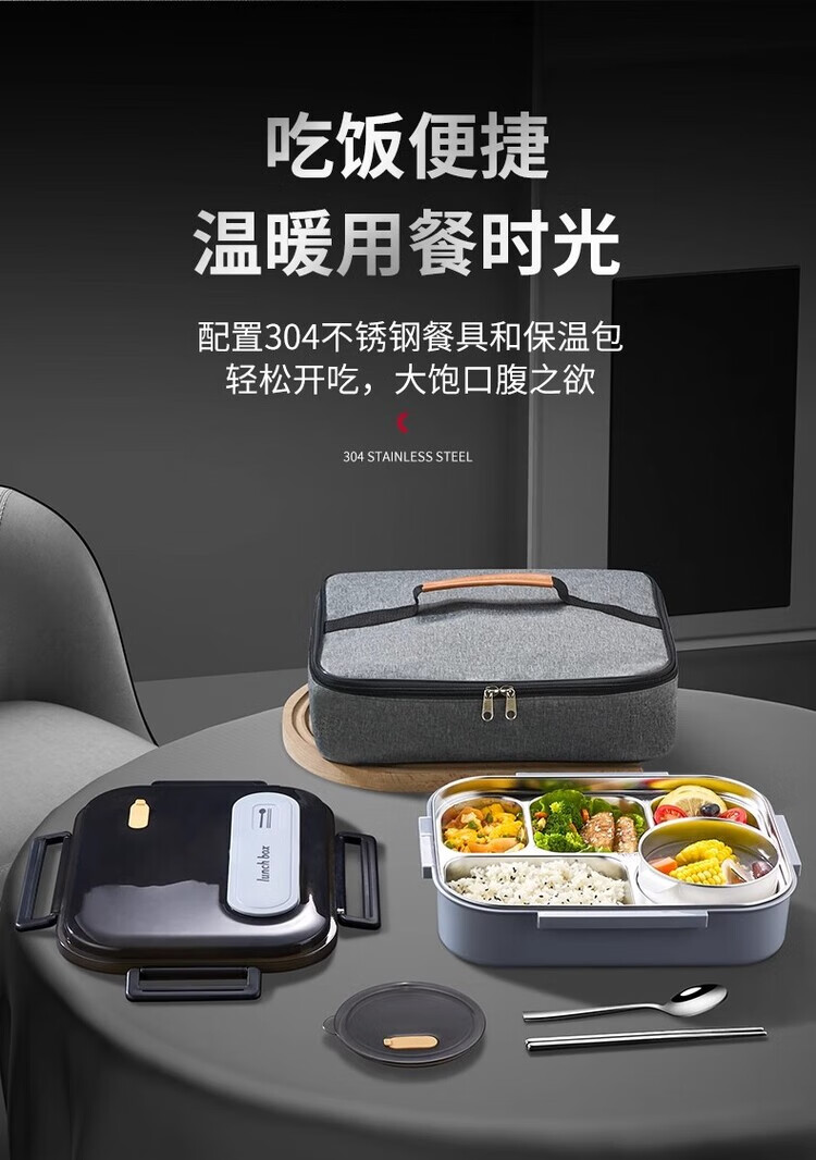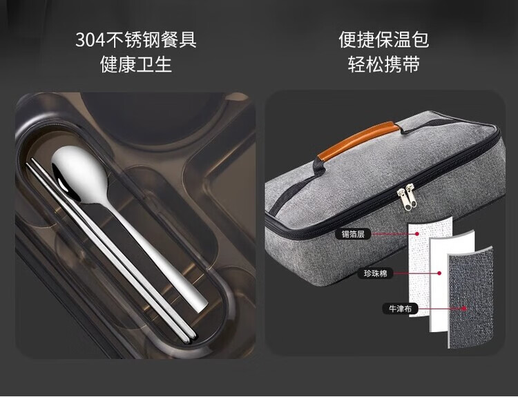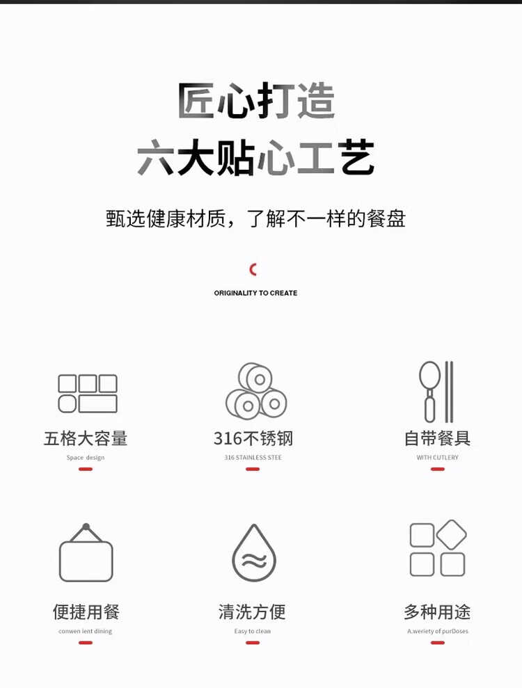 AILUKI Japanese 316l stainless steel lunch box large capacity portable lunch box for office workers, canteen student lunch plate lunch box 316 stainless steel gray large size 5 compartments + cutlery + insulation bag