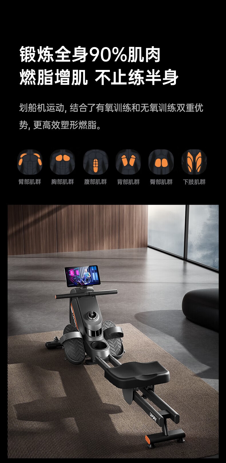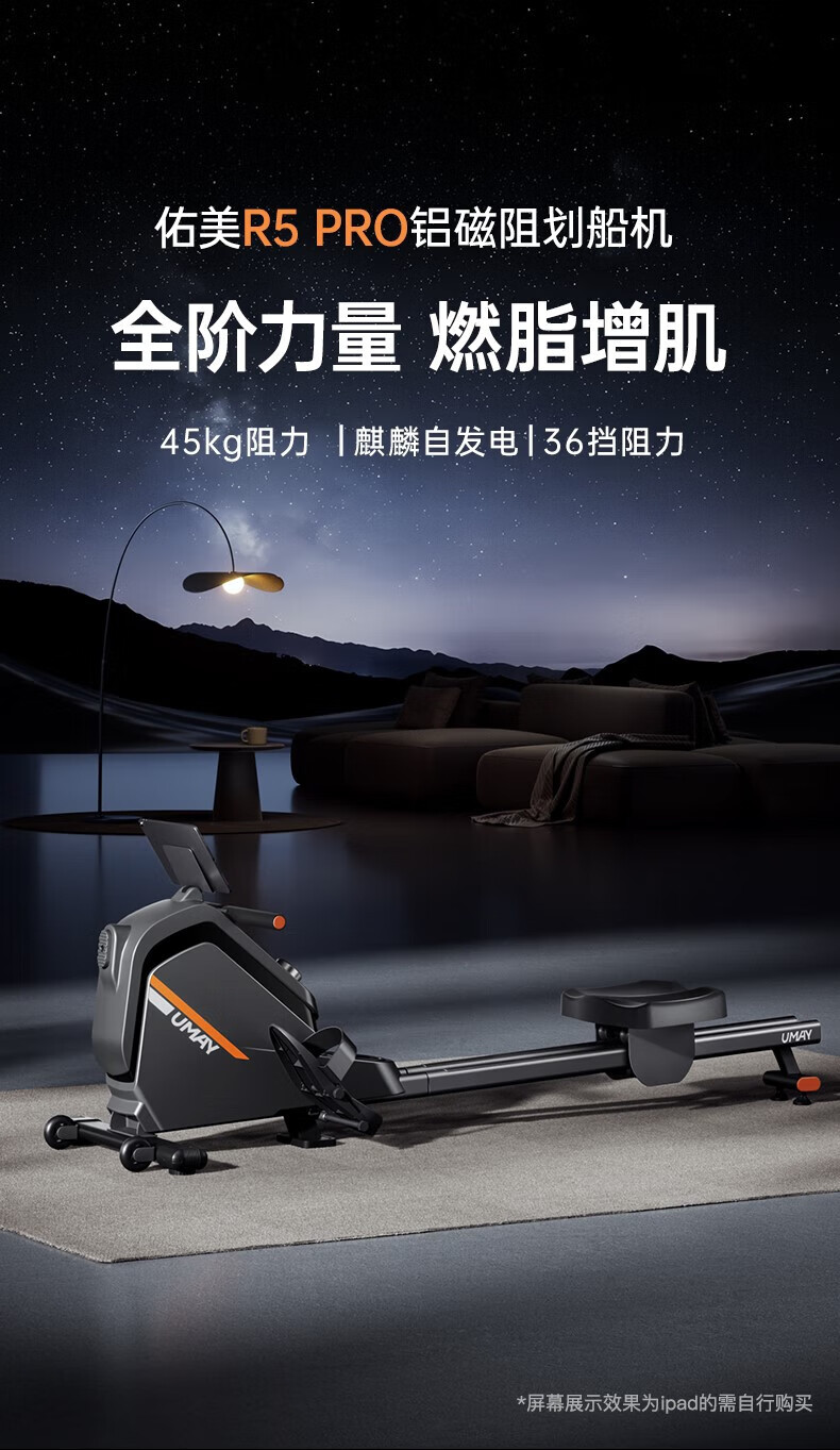 UMAY rowing machine home smart magnetic resistance silent super fat-burning fitness equipment gym rowing trainer R5P upgraded self-generated model 36 levels of intelligent resistance adjustment