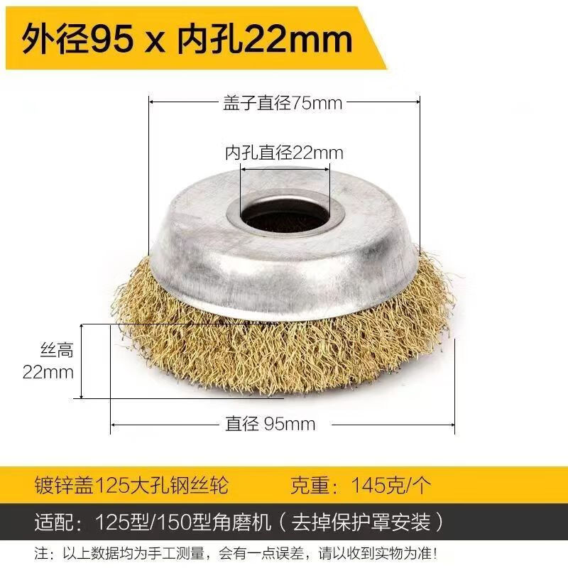 The whole box of thickened bowl type 125150180 wire wheel 100 angle grinder special metal grinding and rust removal polishing wheel 304 stainless steel hole 22mm丨the whole box of 100 pieces 15 meters