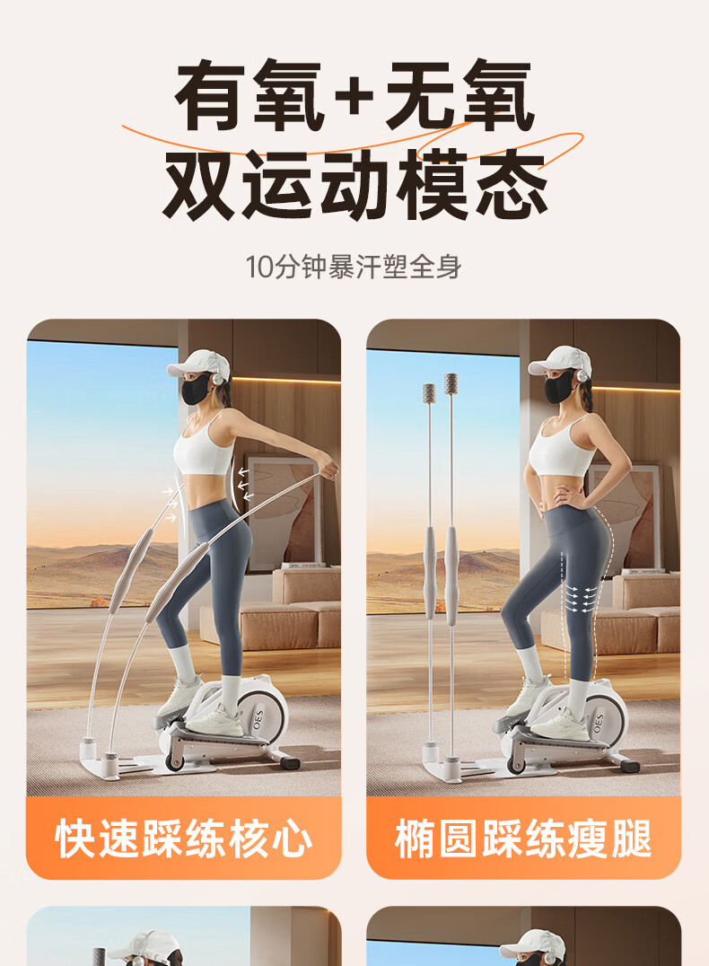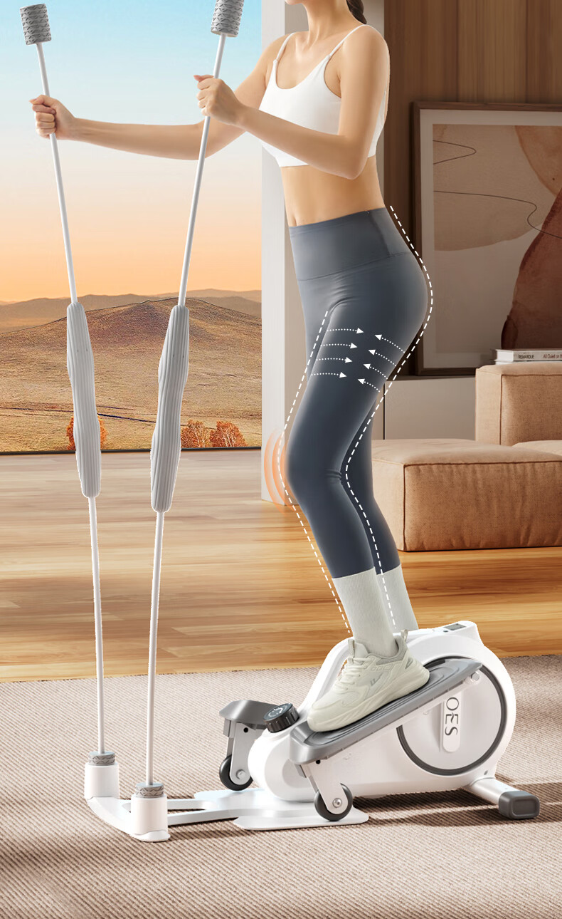 OES Felix Stick Elliptical Machine Home Mini Stepper Silent Elliptical Machine Space Walking Machine Mountaineering Fitness Equipment White - Felix Stick + 8-level resistance adjustment + two-way measurement and control flywheel + free courses