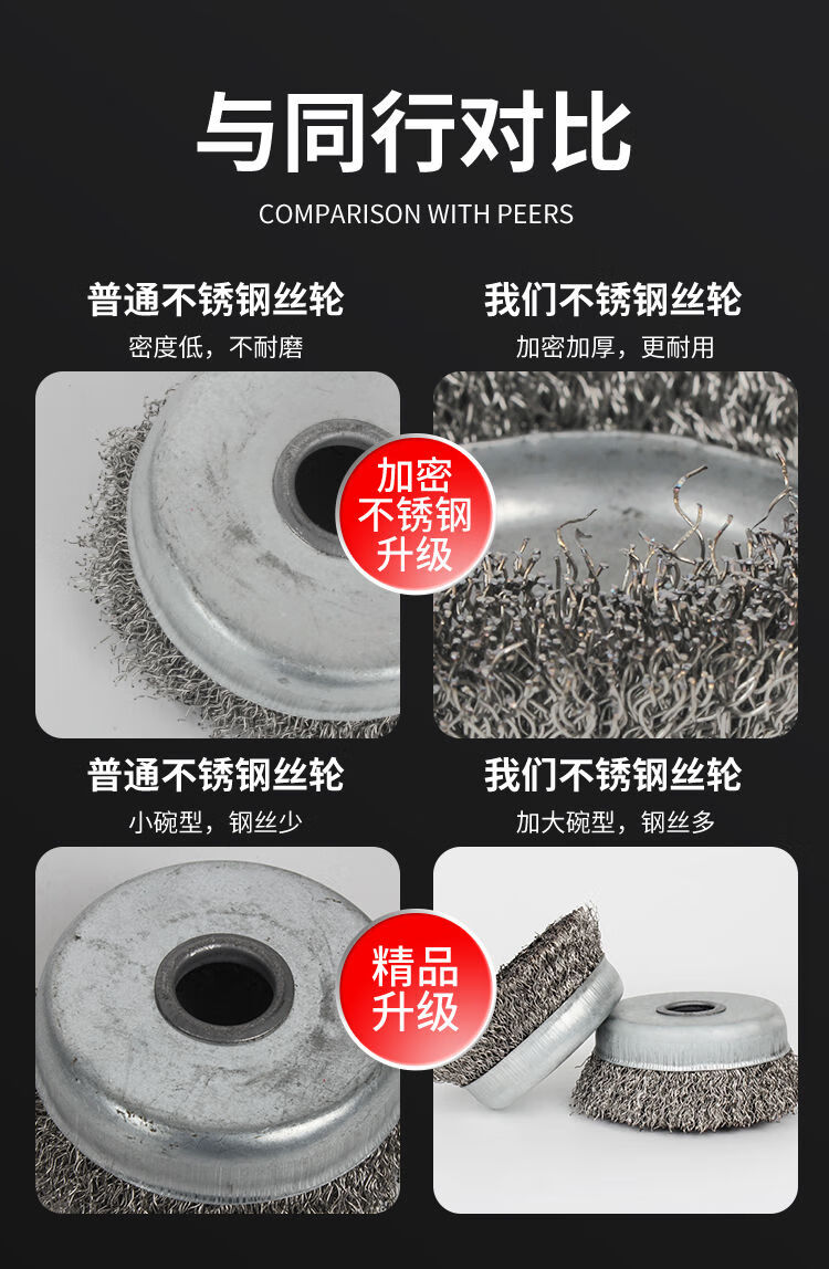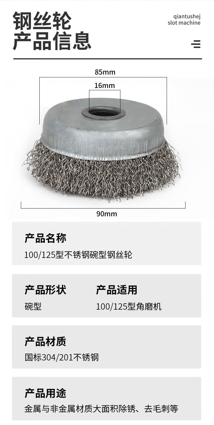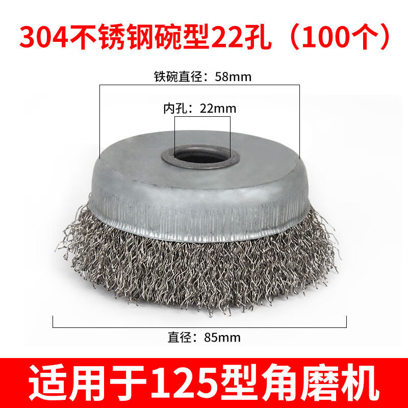 The whole box of 201 stainless steel wire wheel bowl type thickened grinding and rust removal 100 type wire brush angle grinder 304 polishing 304 stainless steel hole 22mm丨The whole box of 100 pieces 15 meters