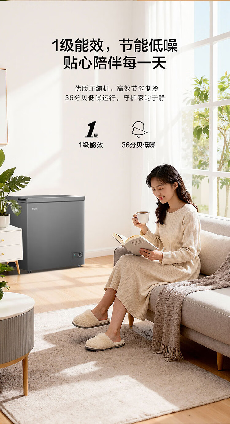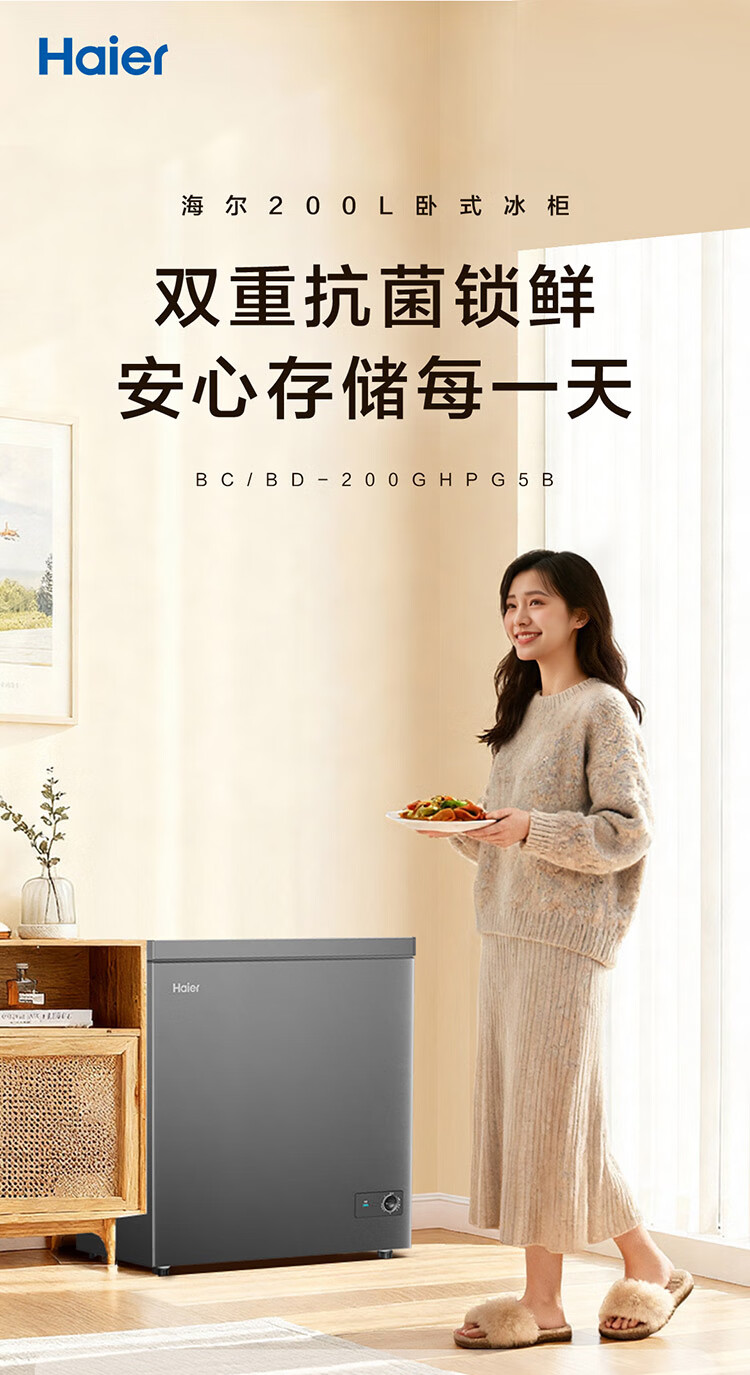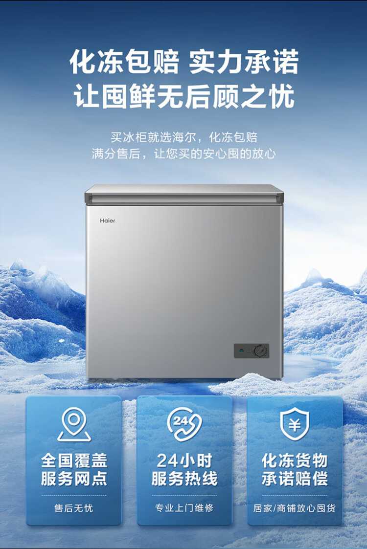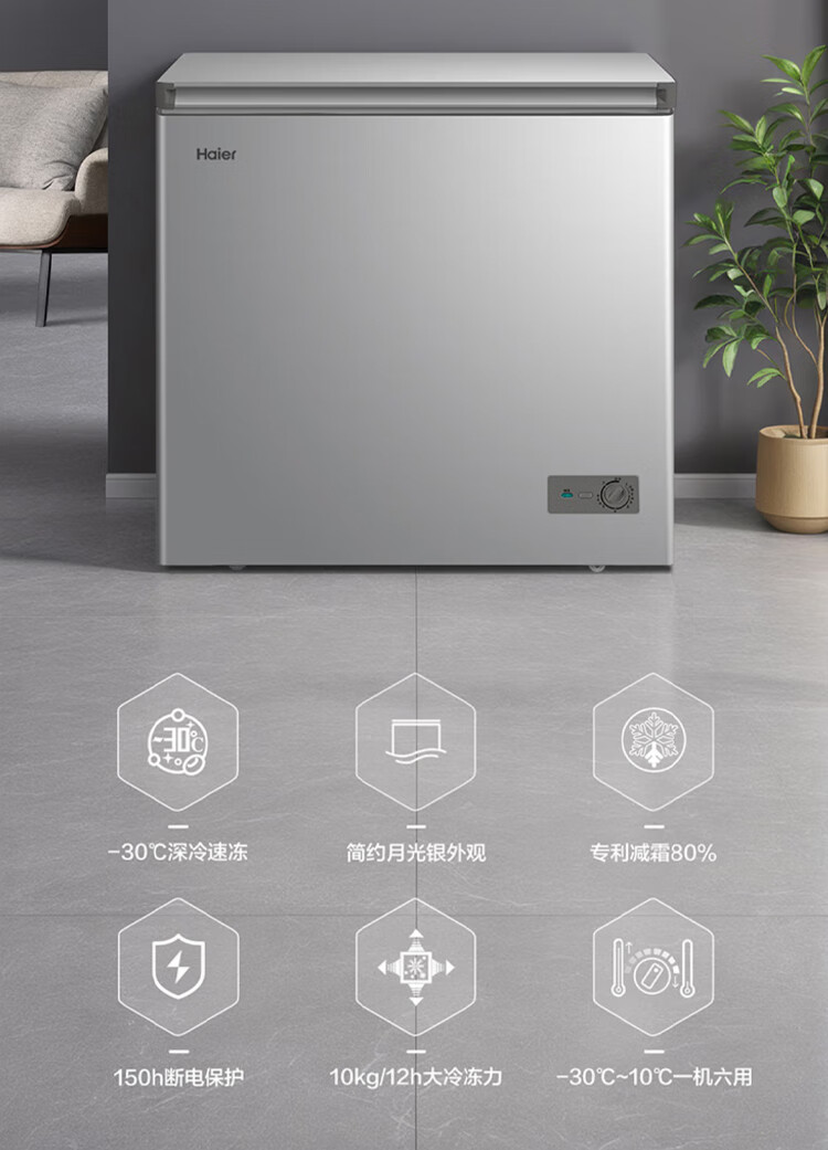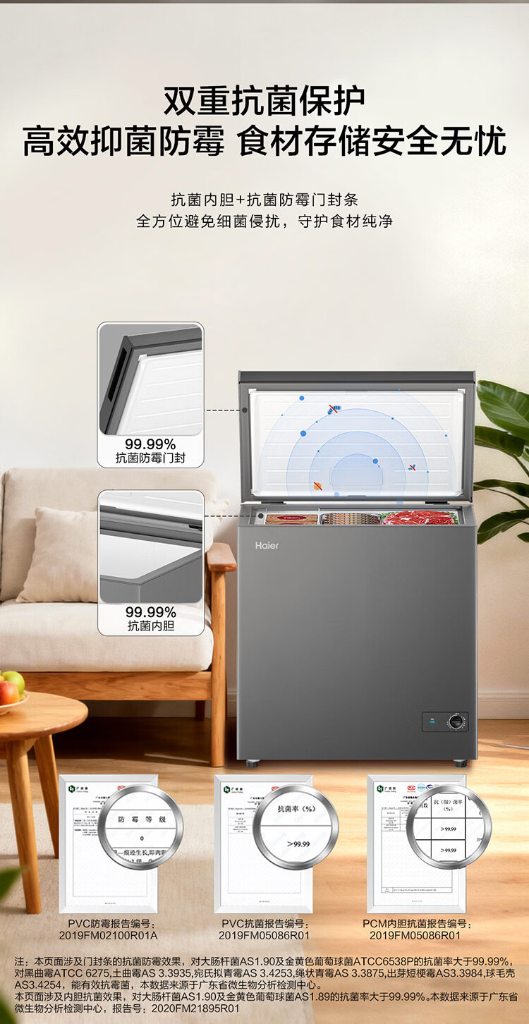 Haier (Haier) Stocking Choice Haier Freezer Says Goodbye to Frequent Defrosting Household Level 1 Energy Efficiency 100L 200L 142 Small Freezer Small Freezer Dual-Purpose Freezing and Refrigeration Non-frost-free Minus 30丨PCM Liner丨No need for frequent defrosting 201L Series