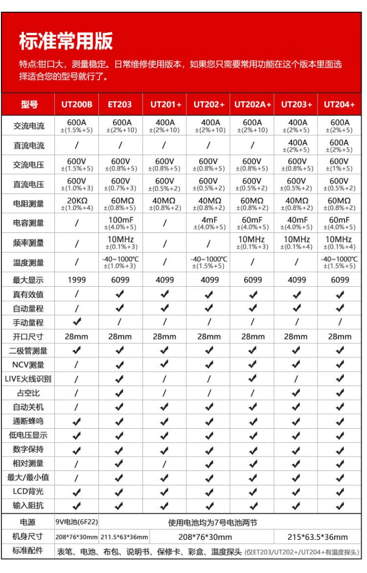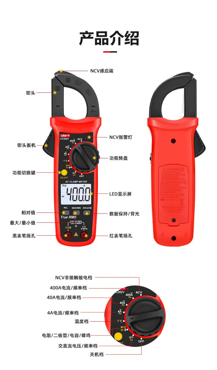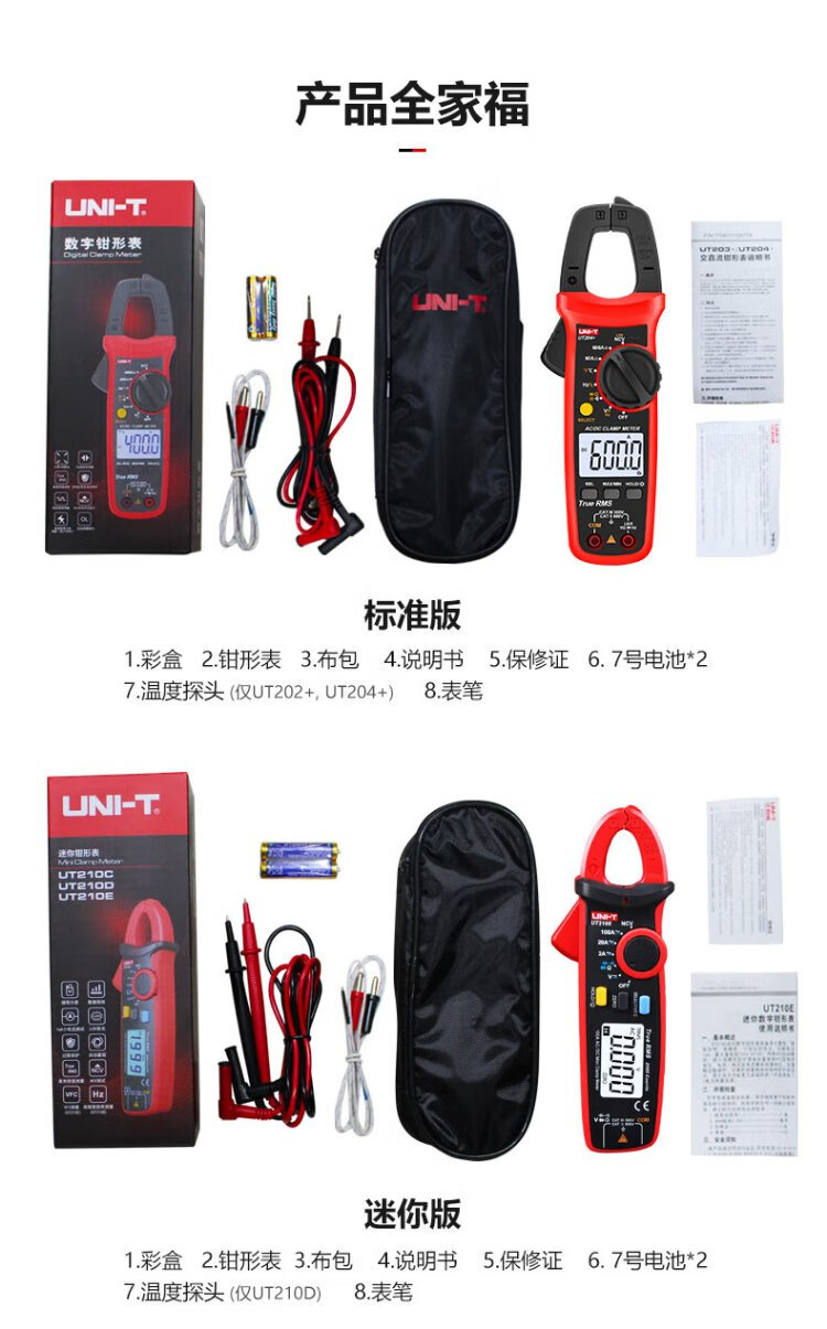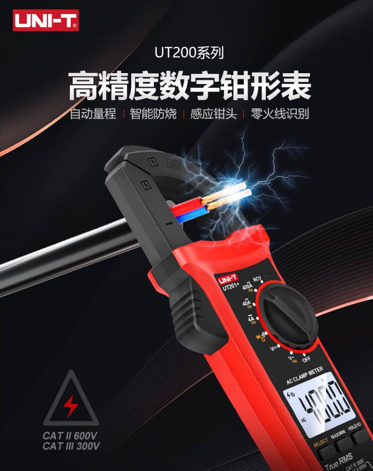 Uliide digital clamp multimeter high-precision clamp meter clamp meter automatic range anti-burn backlight NCV measurement electric meter ET203 (automatic range/AC current 600A)