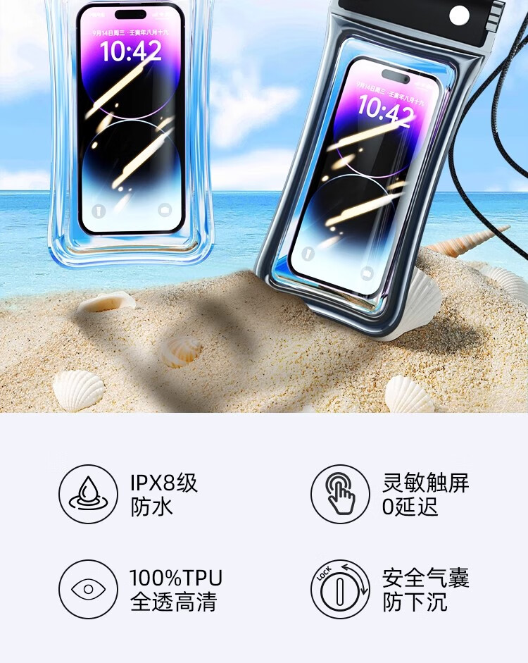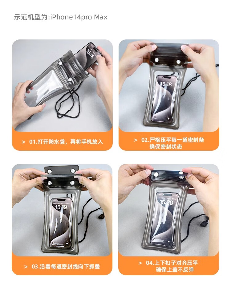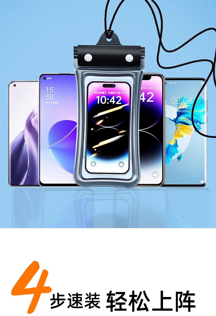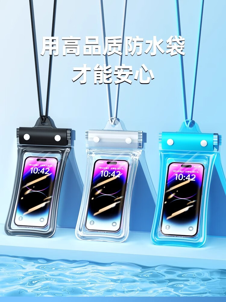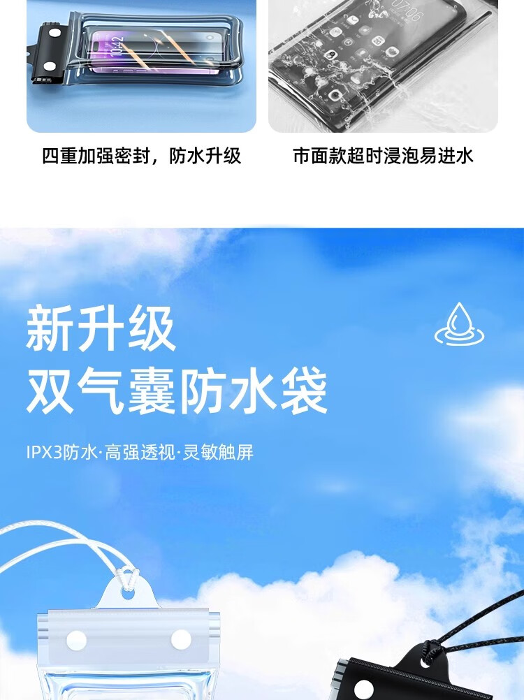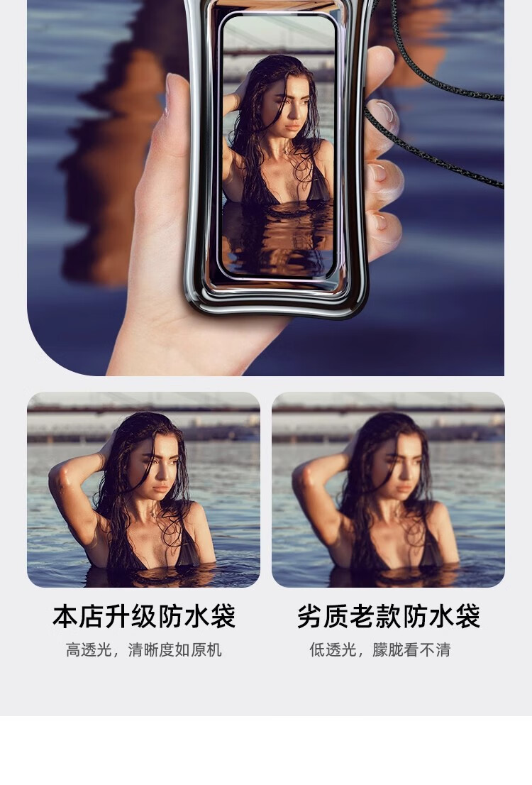 Janes outdoor mobile phone accessories waterproof bag with touch screen for swimming takeout, rainy day waterproof sealed bag, underwater airbag waterproof cover, available for 7.5 inches and below, such as Apple 16pm, quadruple sealed black 1 piece, available for 7.5 inches and below