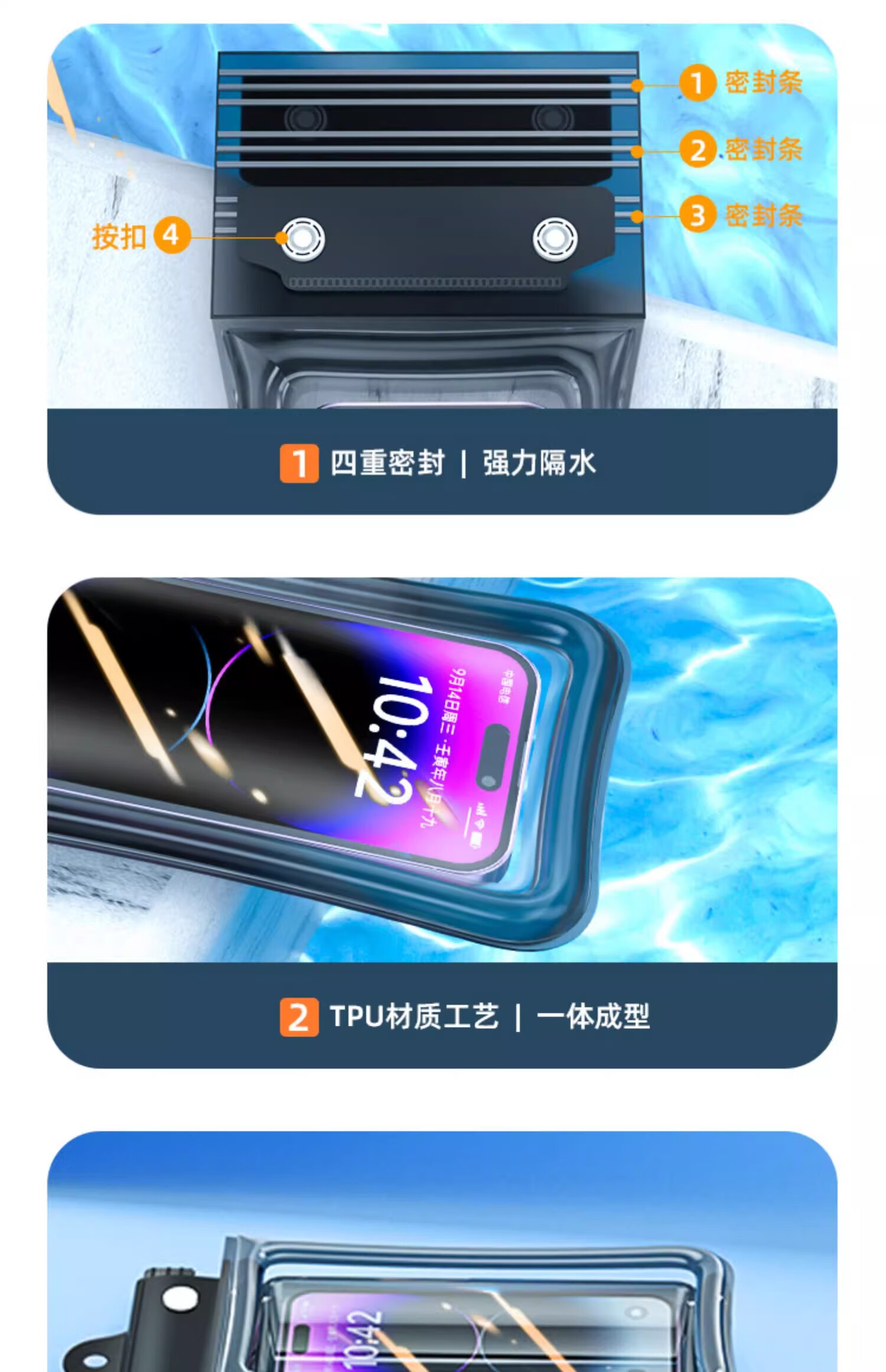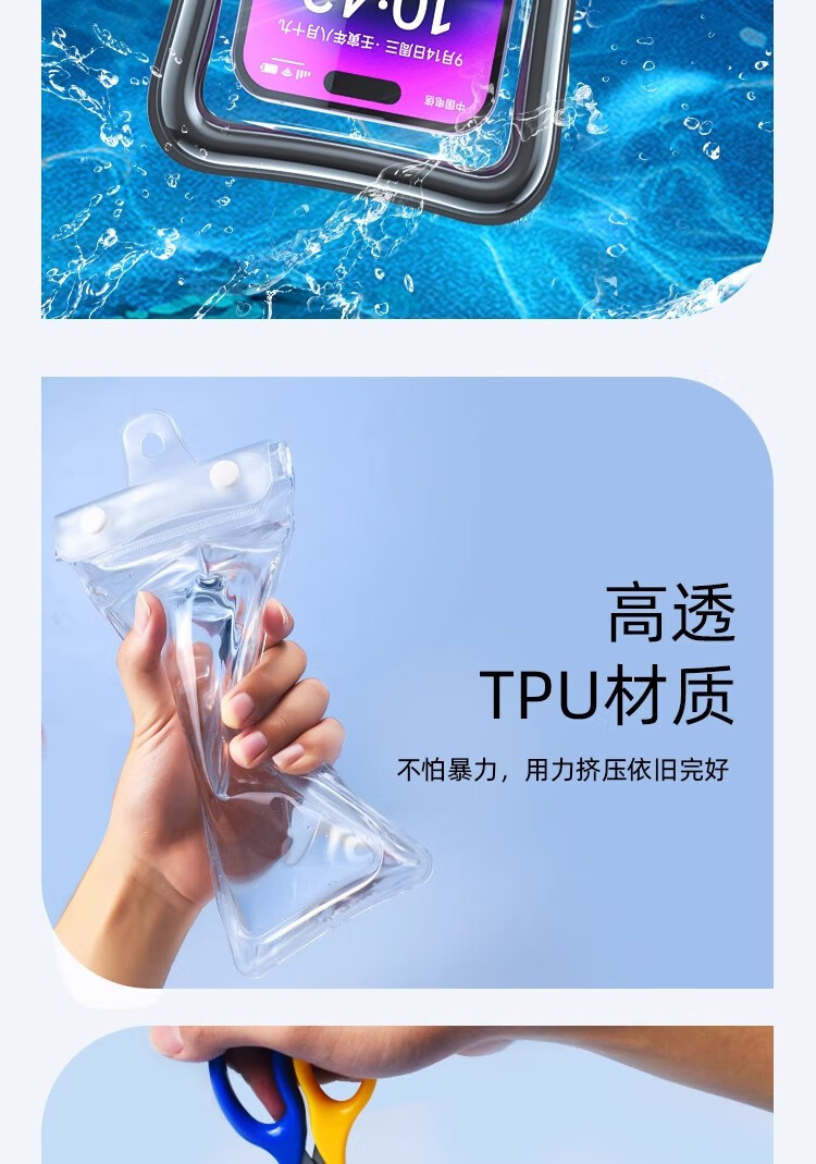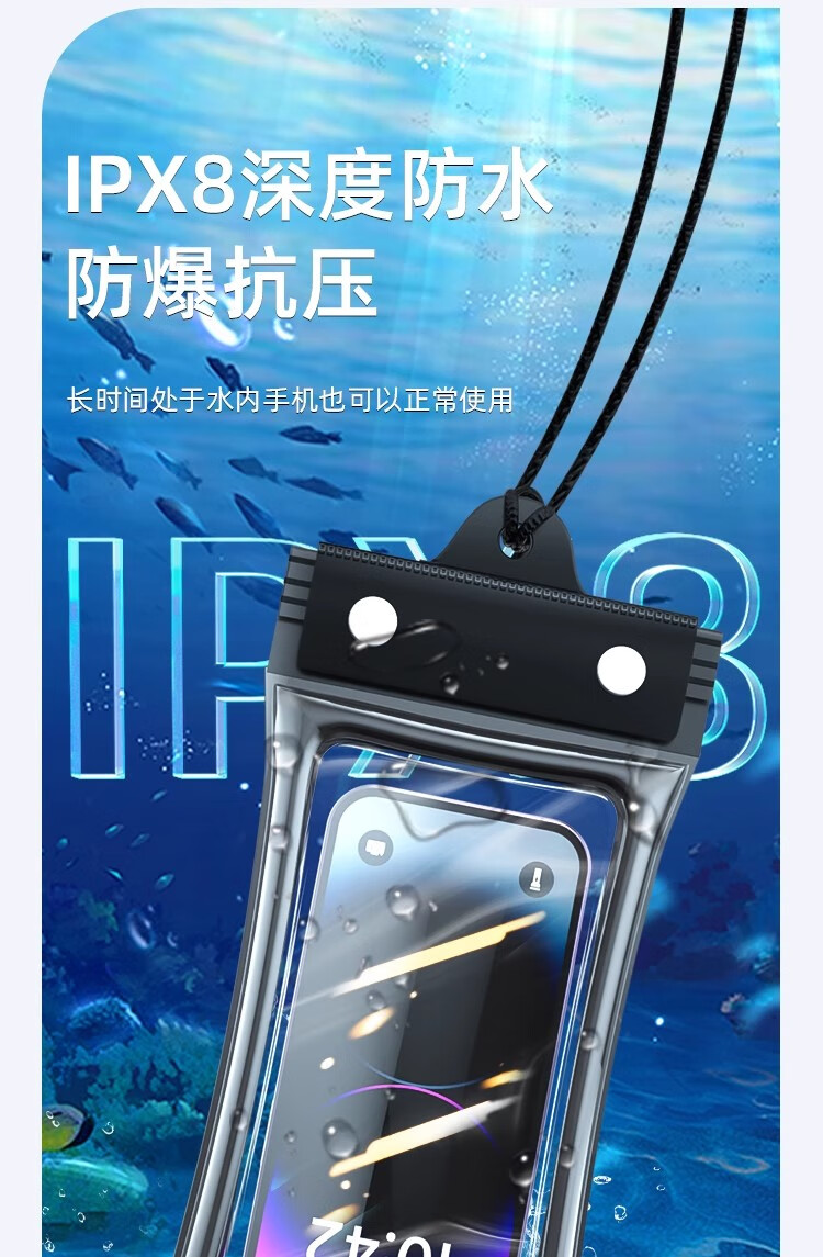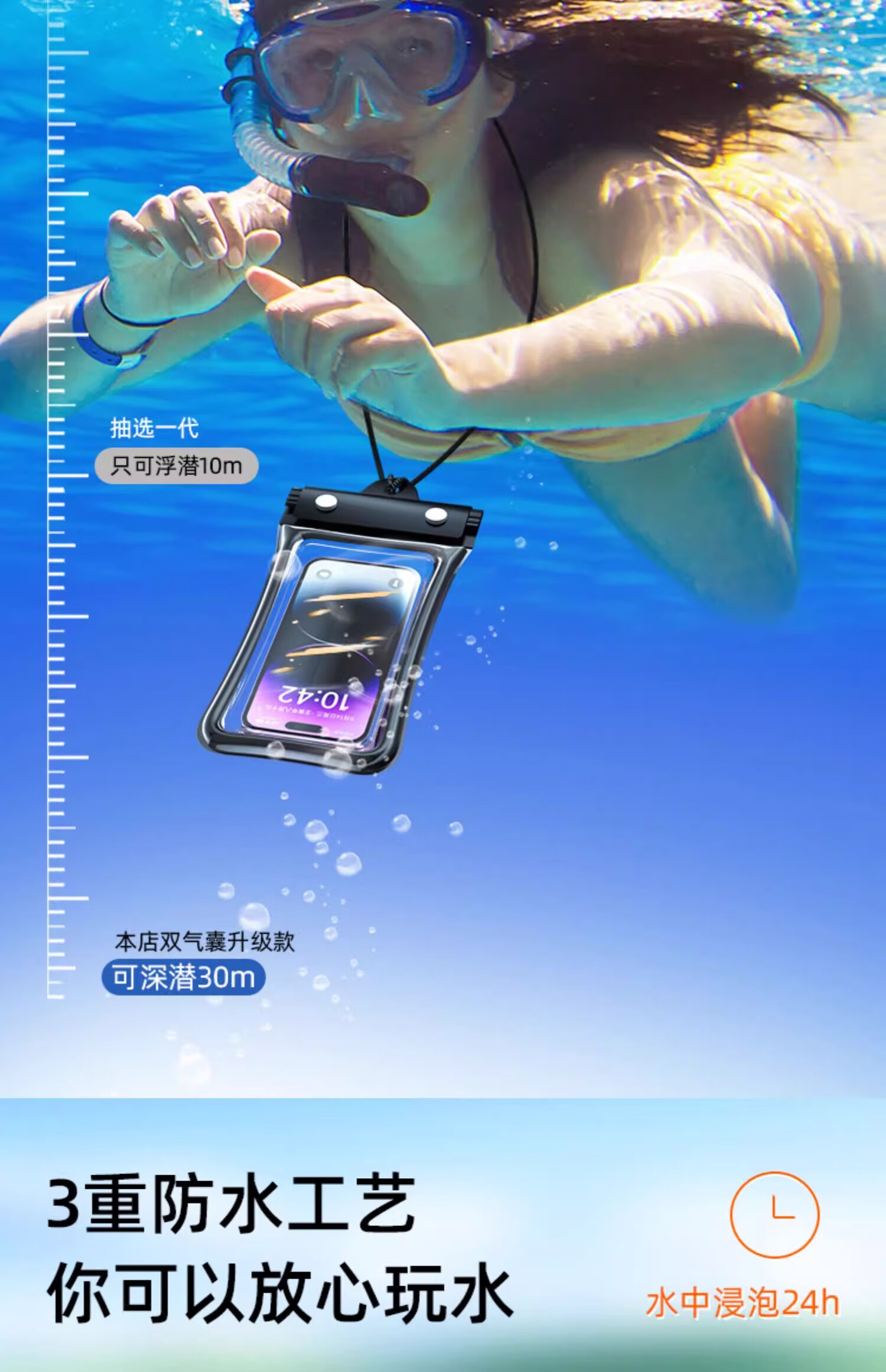 Janes outdoor mobile phone accessories waterproof bag with touch screen for swimming takeout, rainy day waterproof sealed bag, underwater airbag waterproof cover, available for 7.5 inches and below, such as Apple 16pm, quadruple sealed black 1 piece, available for 7.5 inches and below