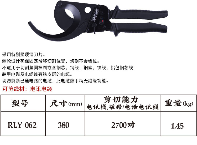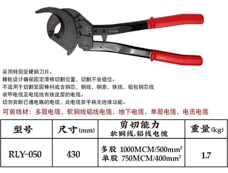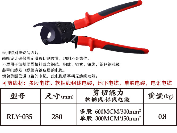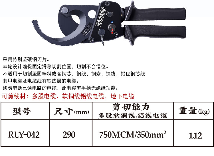 Robin Hood (RUBICON) cable cutter cable cutter wire cutter industrial grade large electrician wire cutting tool ratchet cable scissors RLY-0 RLY-032 cable cutter