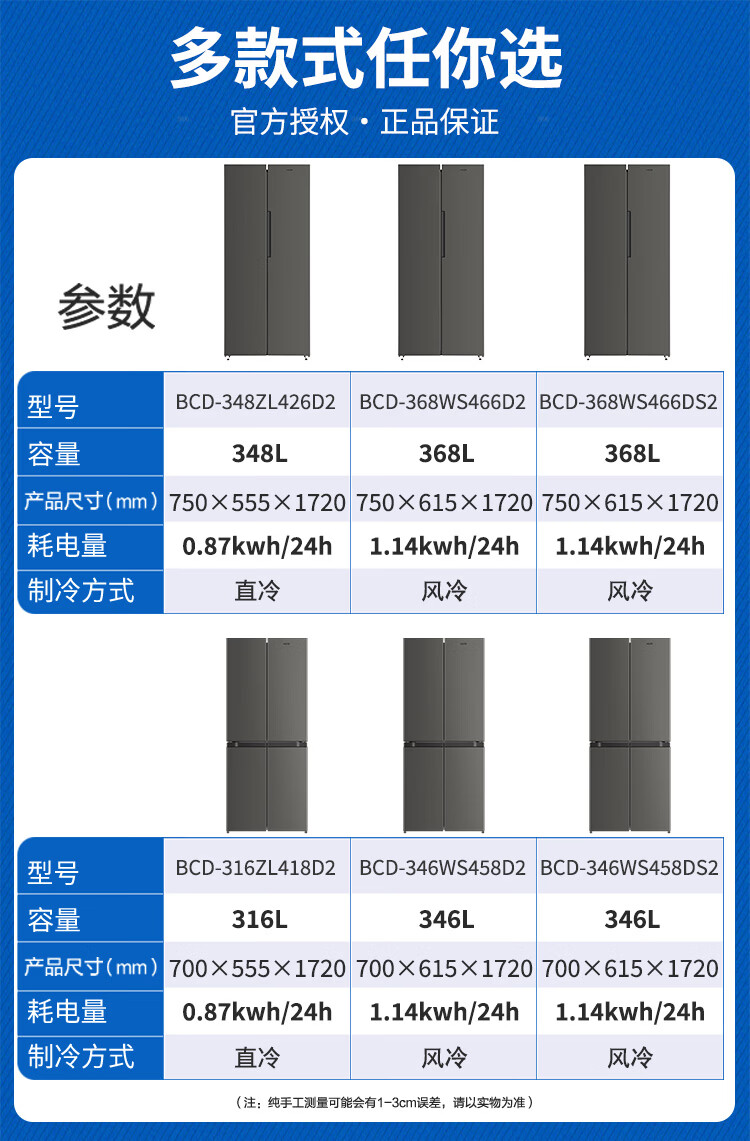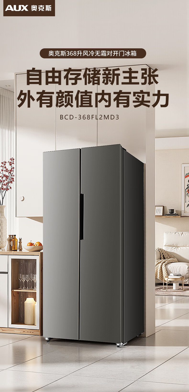 AUX refrigerator double-door household cross-door four-door multi-door large-capacity household refrigerator electronic temperature control ultra-thin and embeddable first-class energy efficiency 466 upgraded double-door air-cooled frost-free