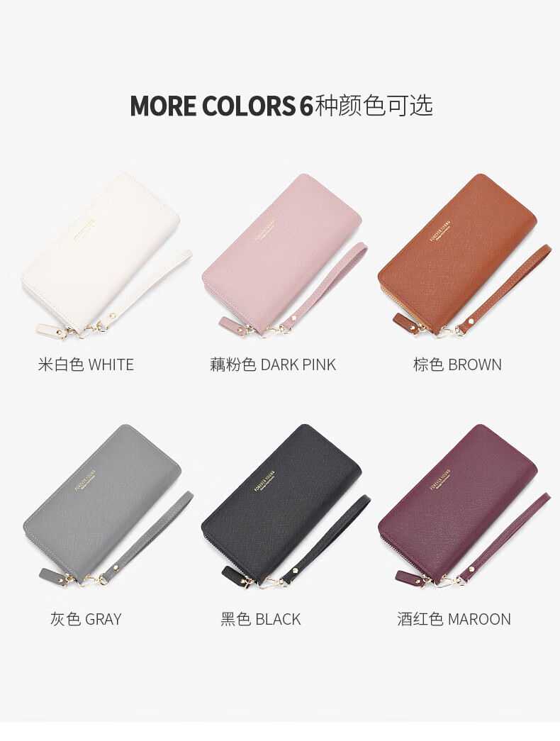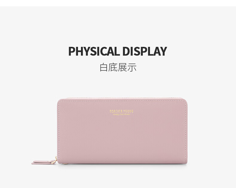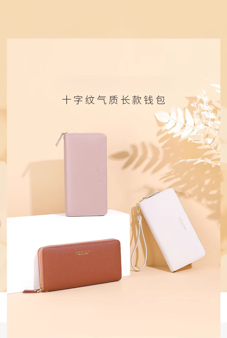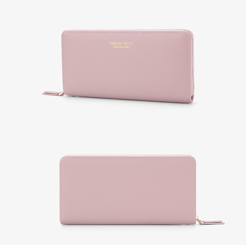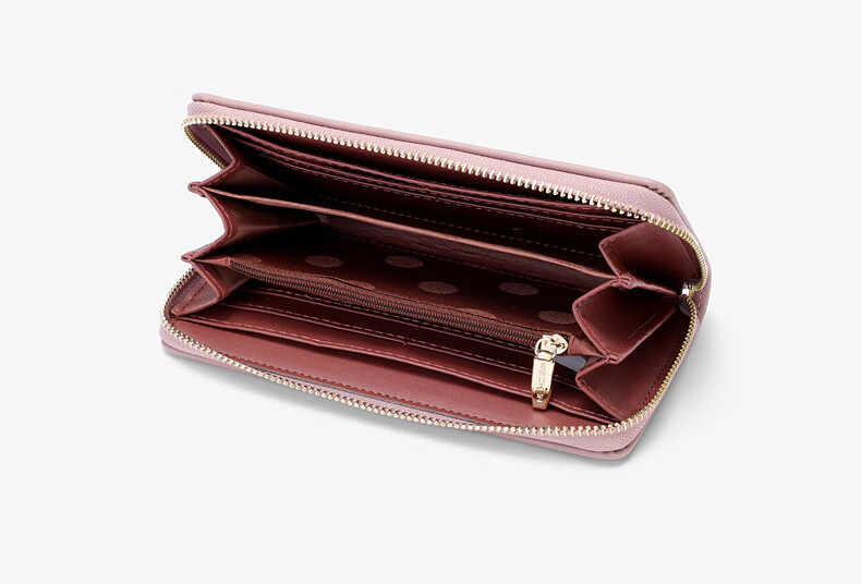 Casa-kups long women's hand wallet card bag zipper wallet new white simple fashion solid color multi-card slot versatile pink dark pink