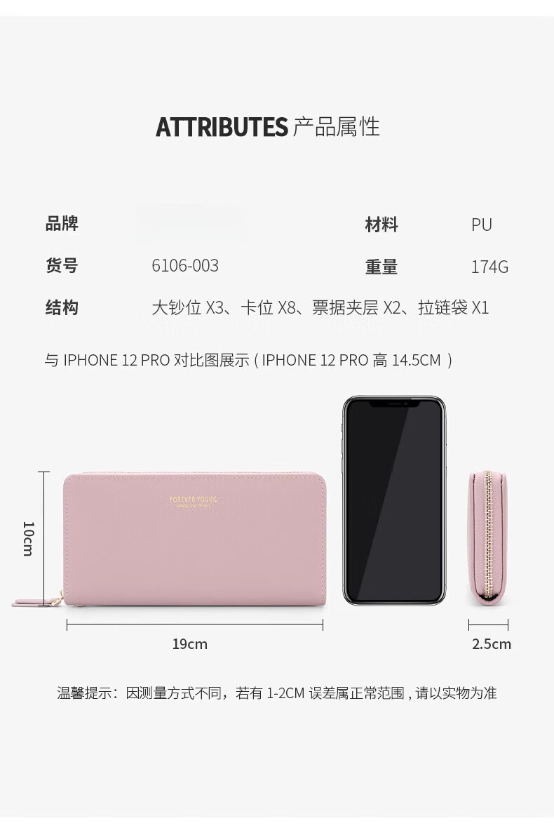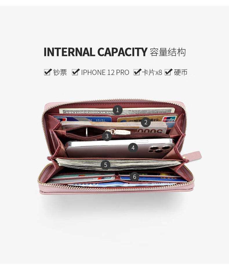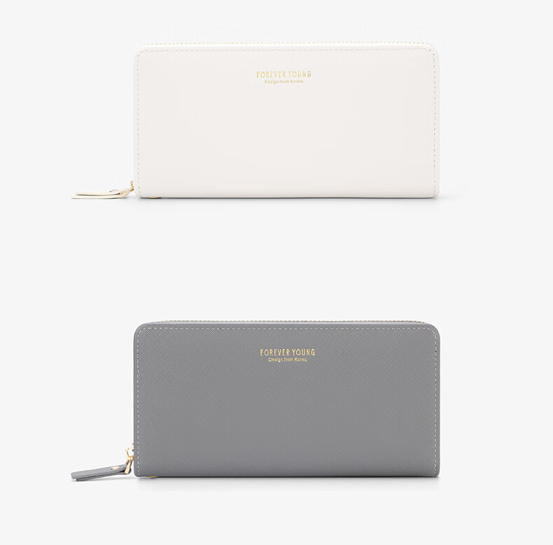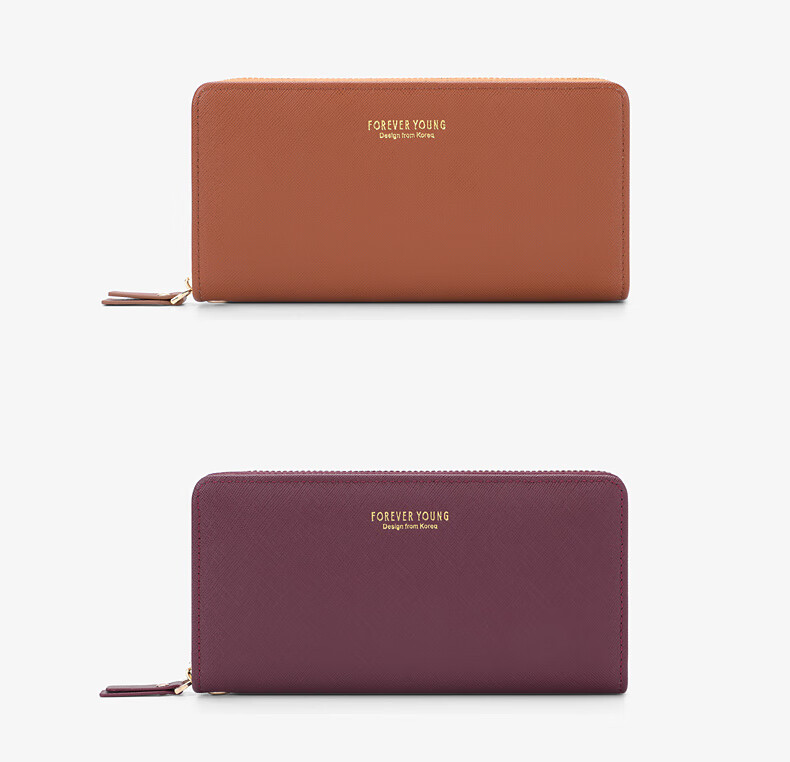 Casa-kups long women's hand wallet card bag zipper wallet new white simple fashion solid color multi-card slot versatile pink dark pink