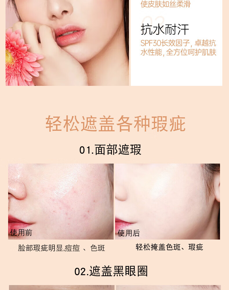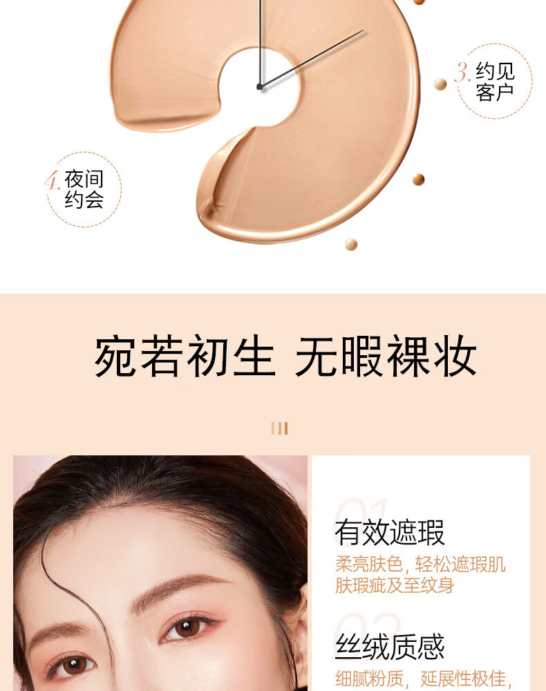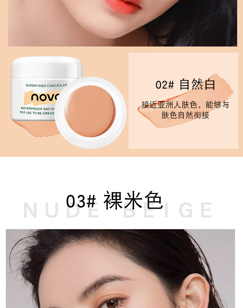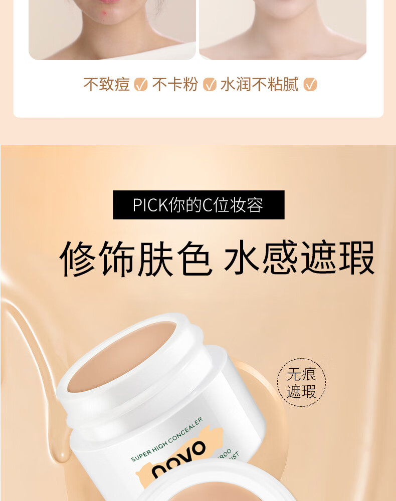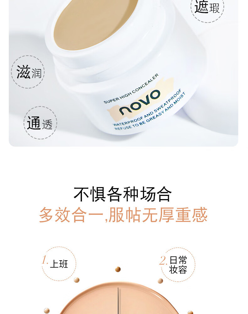 NOVO concealer covers spots, dark circles, acne marks, facial acne, scars, tear troughs, men's sample three-in-one 2# natural color + 270 concealer brush