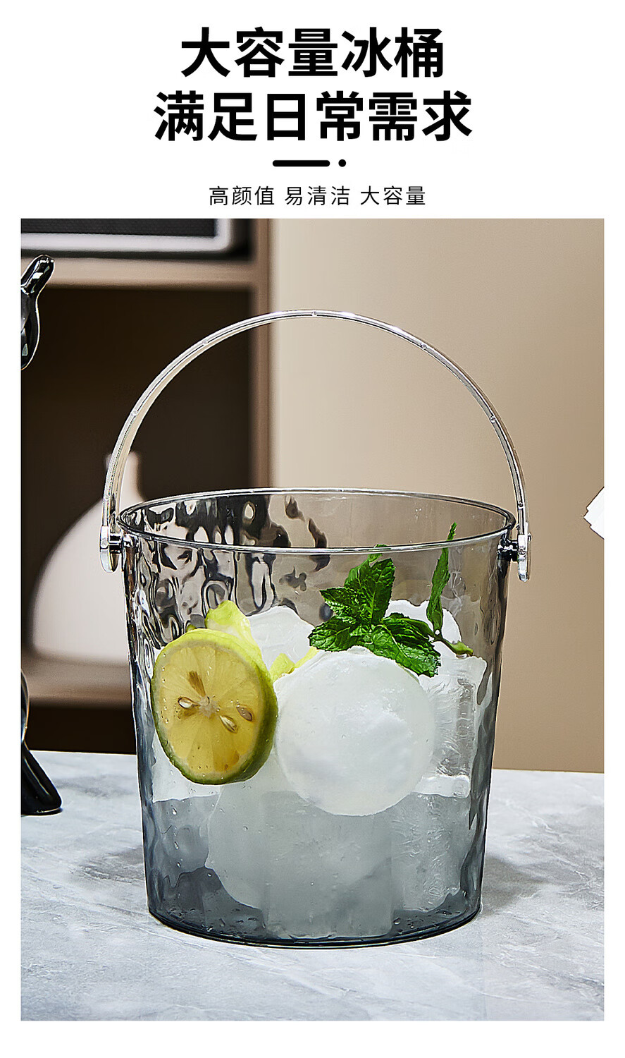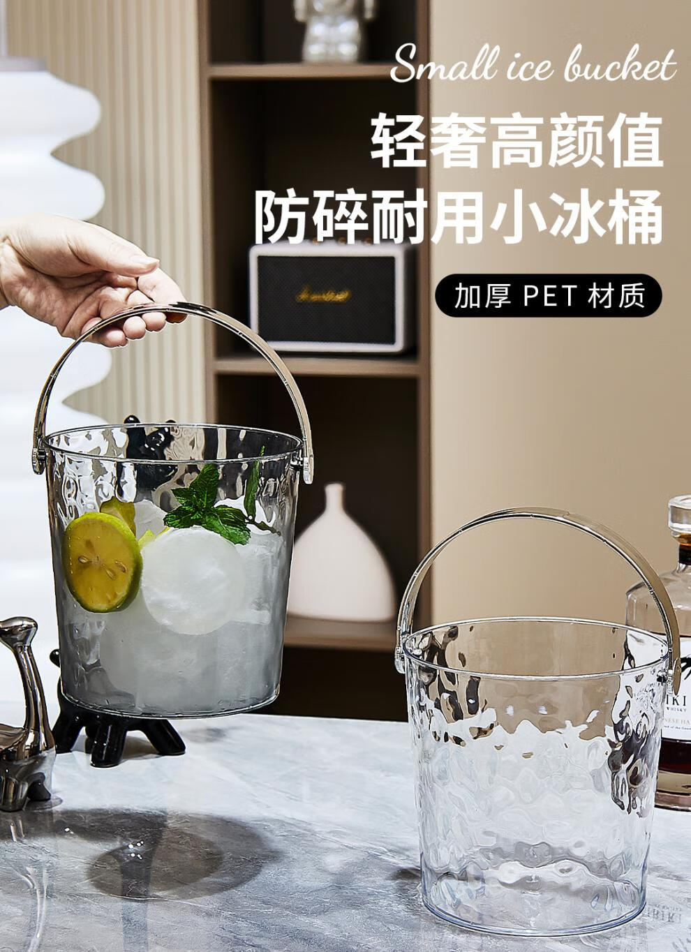 Fanxiang light luxury water ripple thickened transparent ice bucket high-value home commercial ice bucket bar KTV beer bucket ice cubes free ice clip water ripple light luxury ice bucket transparent