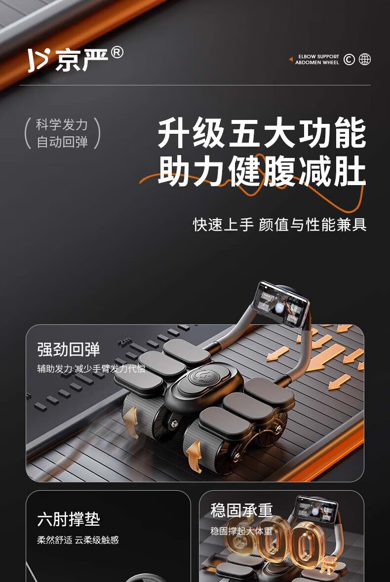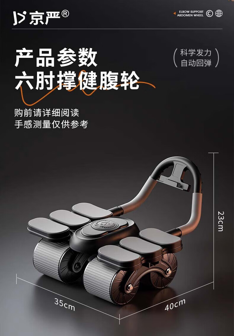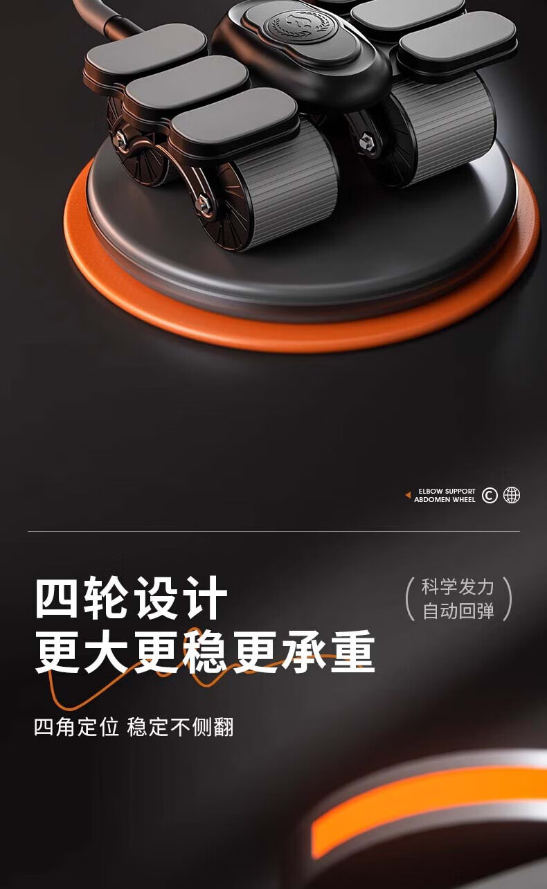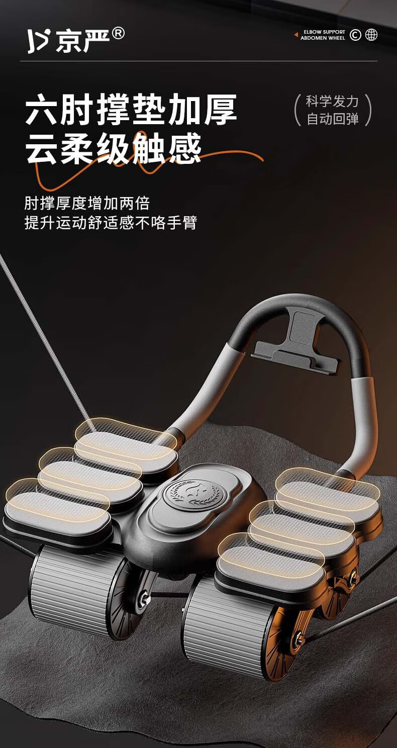 Jingyan four-wheel abdominal fitness wheel, automatic rebound elbow support, abdominal muscle wheel, crunch trainer, abdominal muscle training tool, belly reduction fitness device, 2025 new 4-wheel, 6-elbow support - black, smart app mobile phone interconnection, free black balance pad + kneeling pad, next day delivery