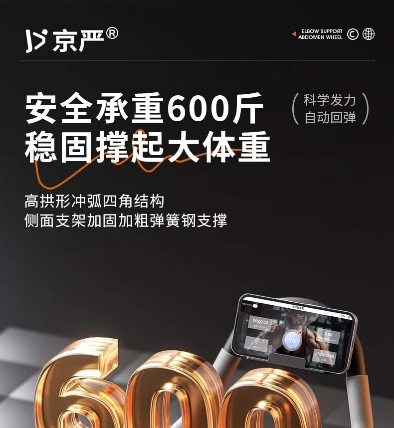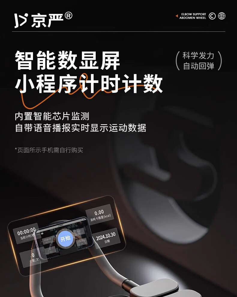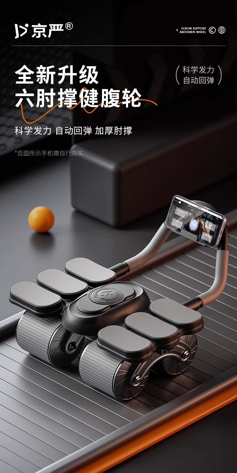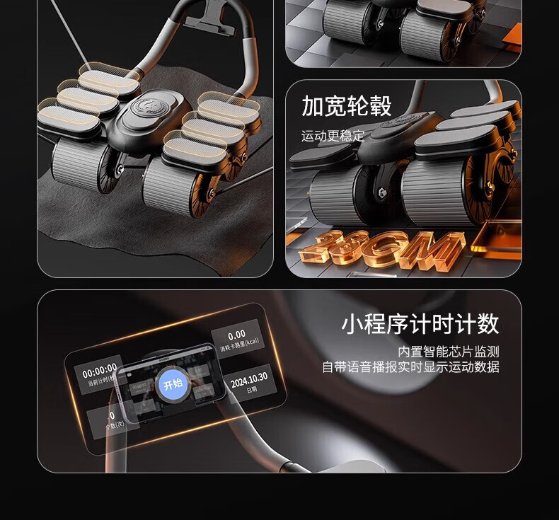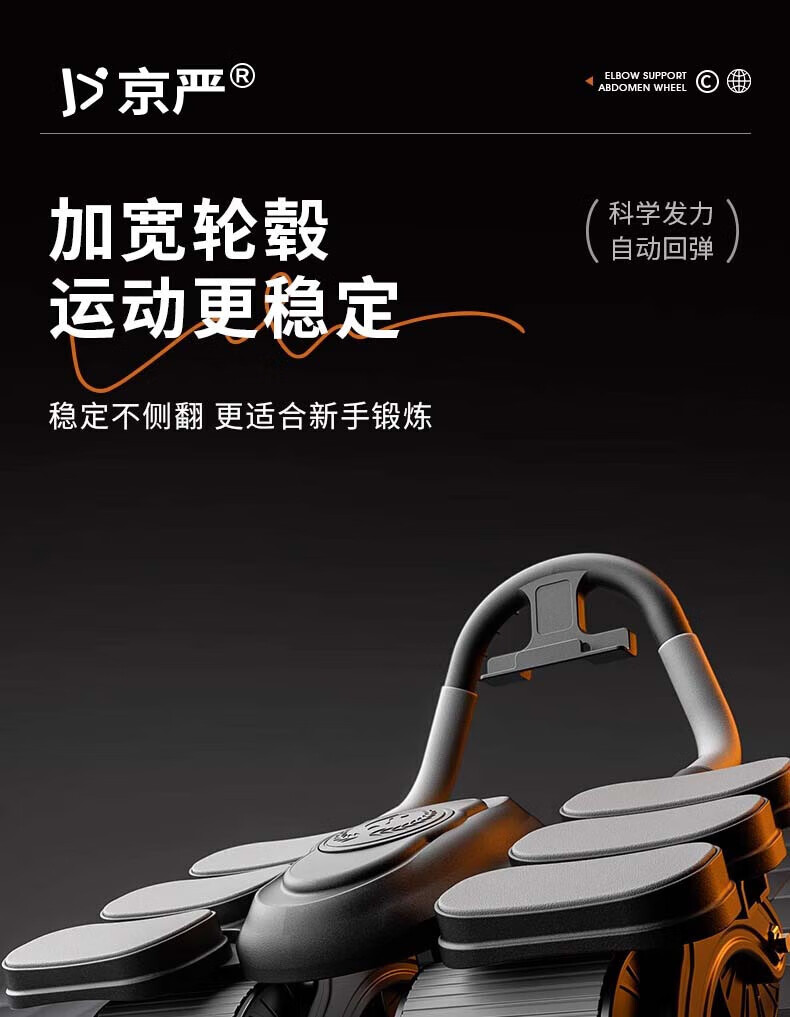 Jingyan four-wheel abdominal fitness wheel, automatic rebound elbow support, abdominal muscle wheel, crunch trainer, abdominal muscle training tool, belly reduction fitness device, 2025 new 4-wheel, 6-elbow support - black, smart app mobile phone interconnection, free black balance pad + kneeling pad, next day delivery