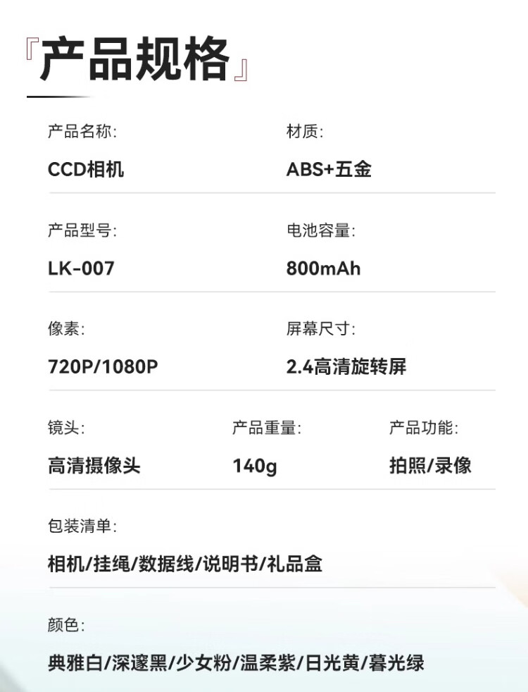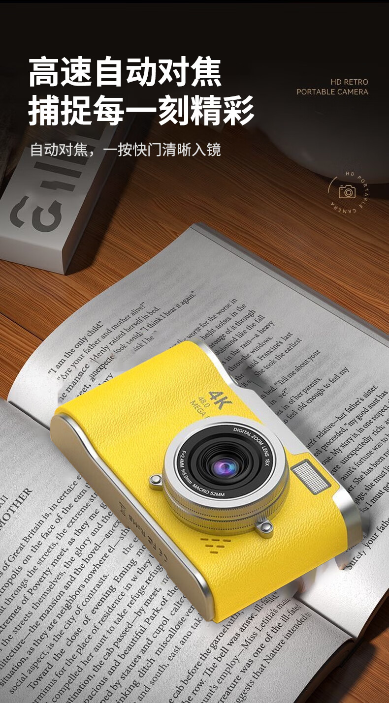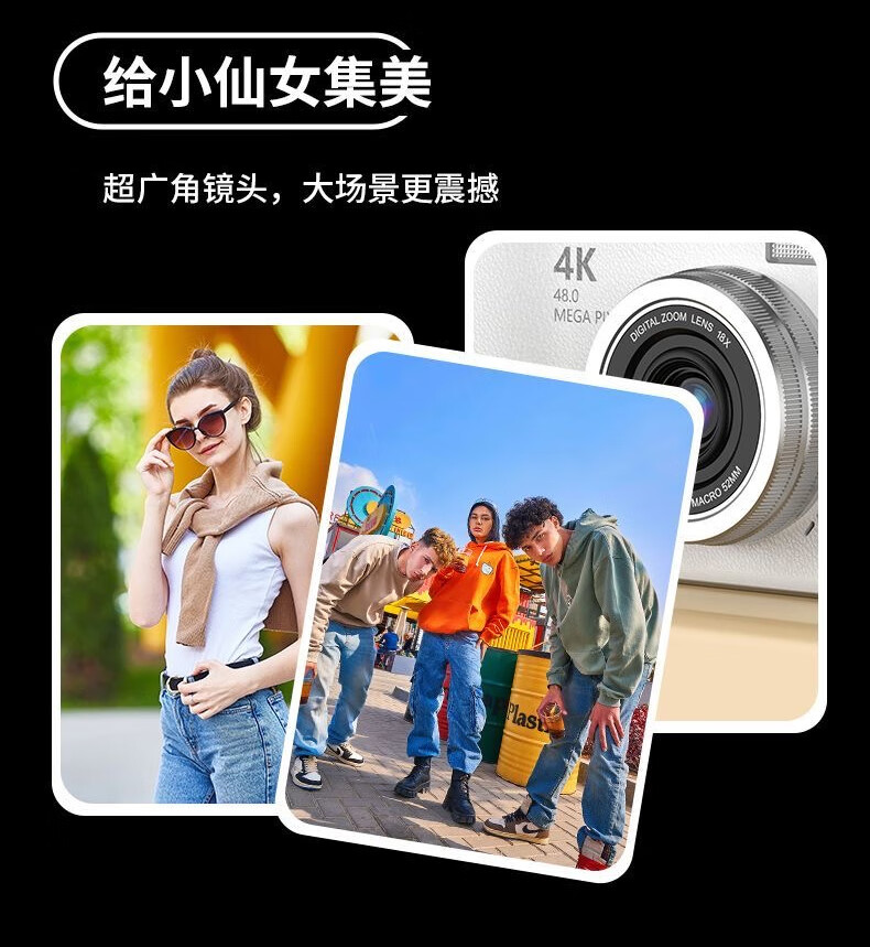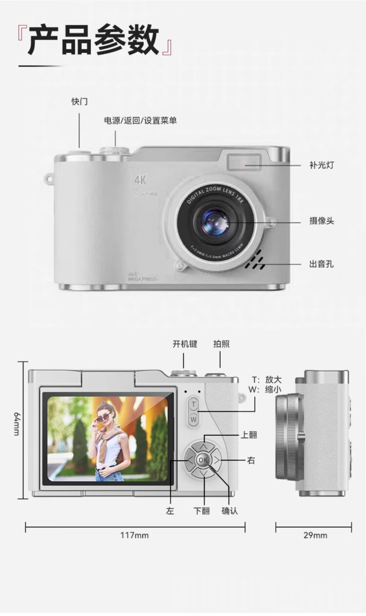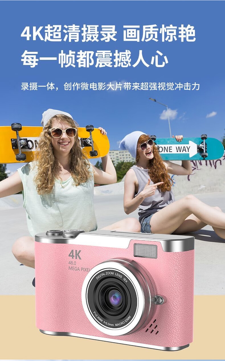 Entry-level flip-screen digital camera CCD replacement for students and high school students selfie camera travel portable high-pixel anti-shake delayed shooting birthday gift elegant white 64G memory card + card reader + adapter flip screen + 4800W pixels + flash fill light