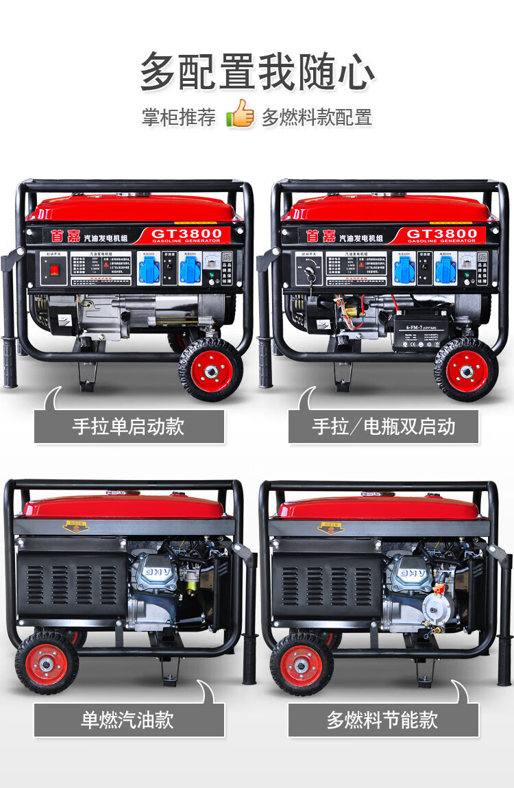 MieLanat Germany imported Shoujia gasoline generator single-phase 220V household 3kw/5kw/6KW/8 3500W hand start burning gasoline 220V