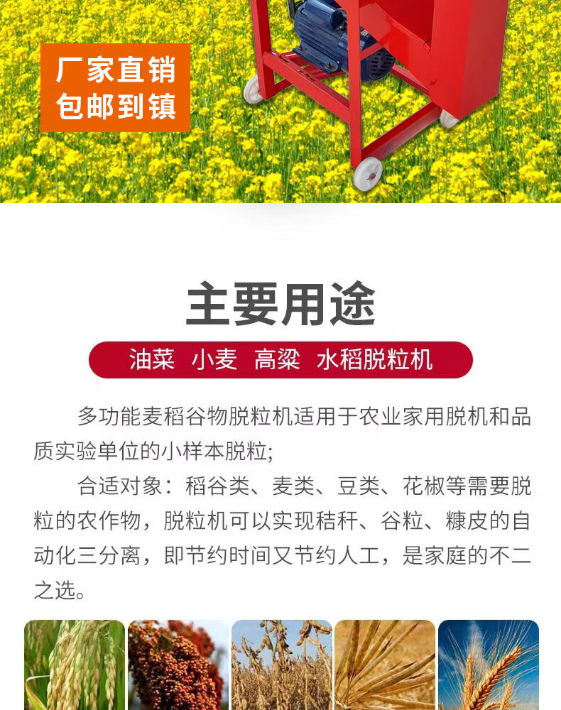 Zhong Zhanggui multifunctional household sorghum fully automatic rapeseed threshing machine harvester soybean small rice sorghum threshing machine 800 thickened upgraded model + 170 horsepower gasoline engine