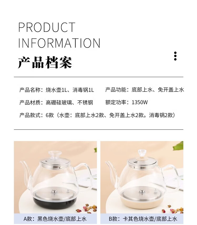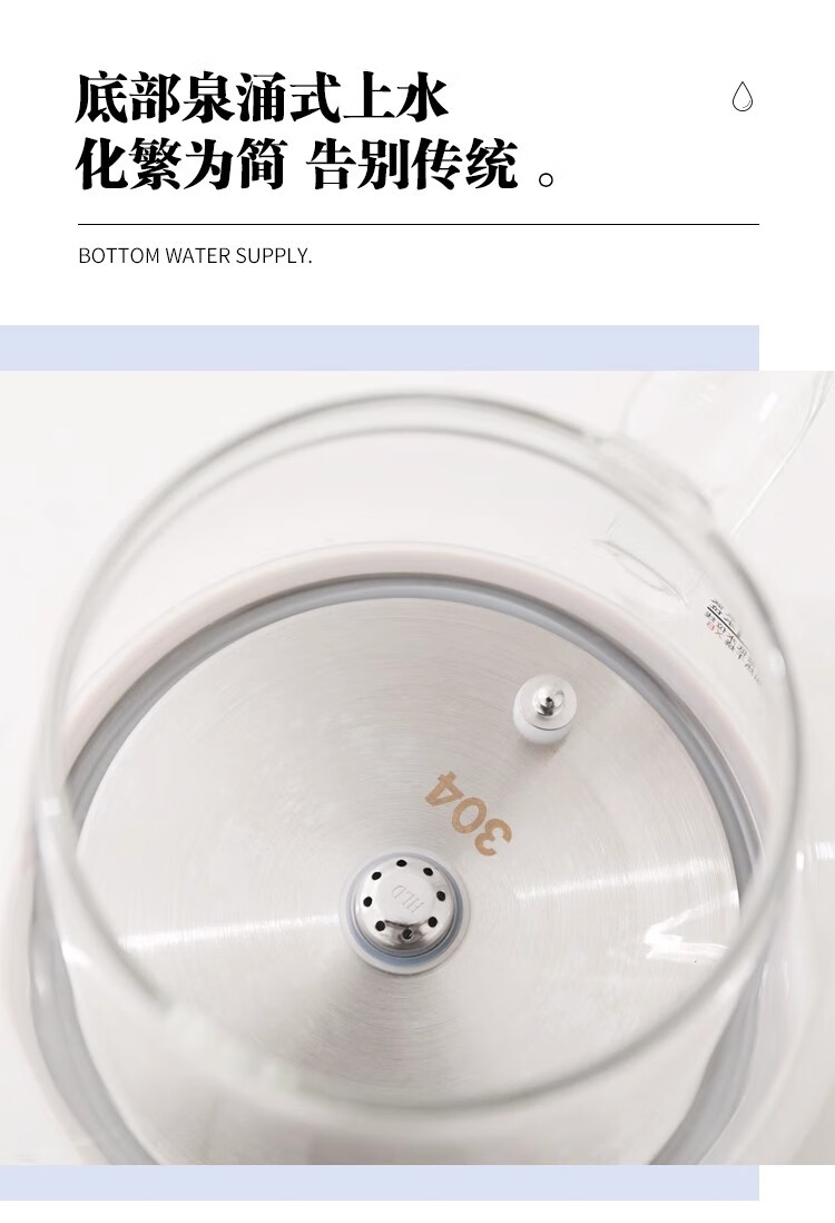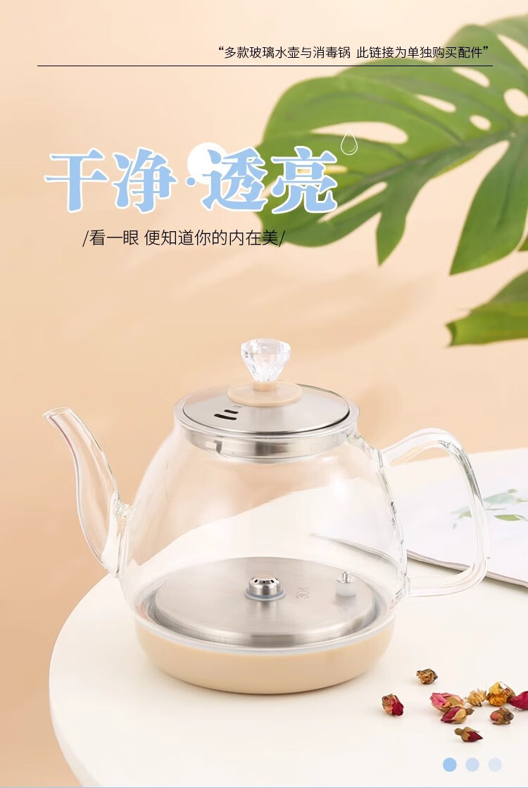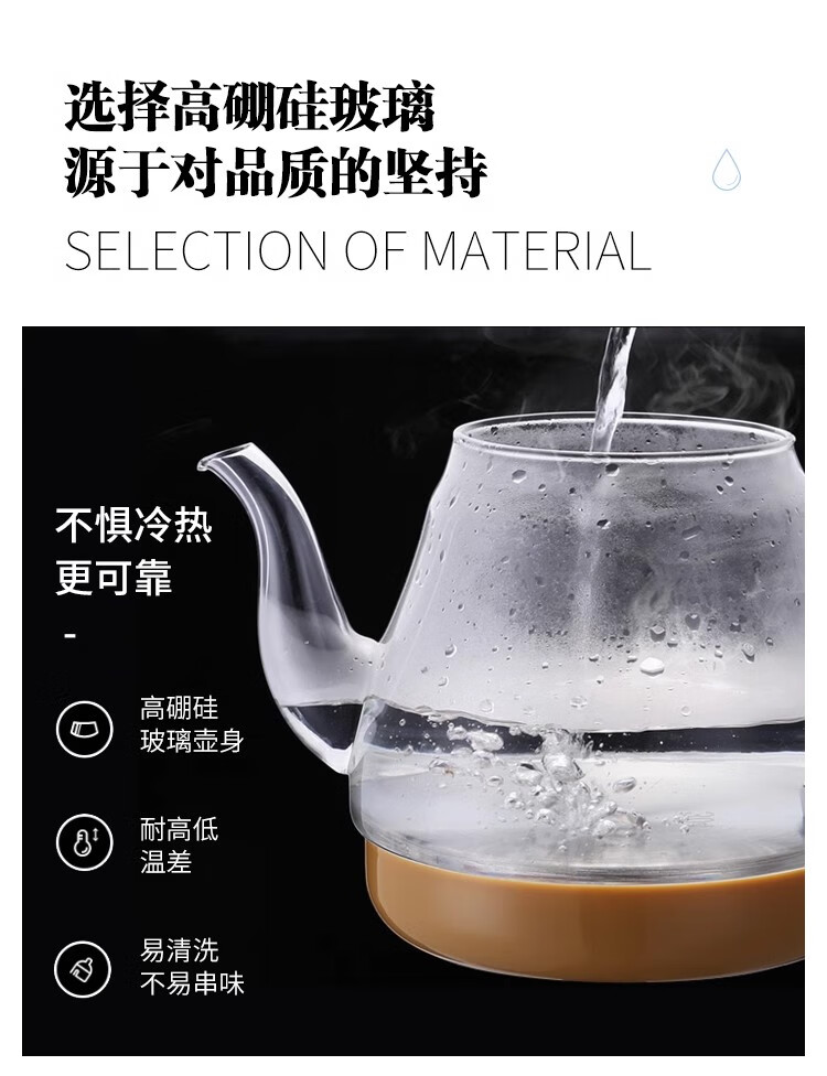 Yami Ou Hongyan fully automatic electric teapot double probe bottom water high borosilicate glass universal kettle bottom water refining kettle black 1L