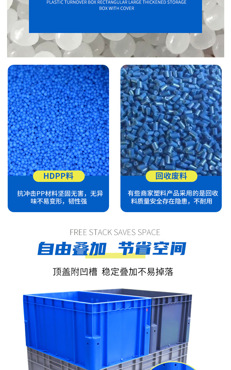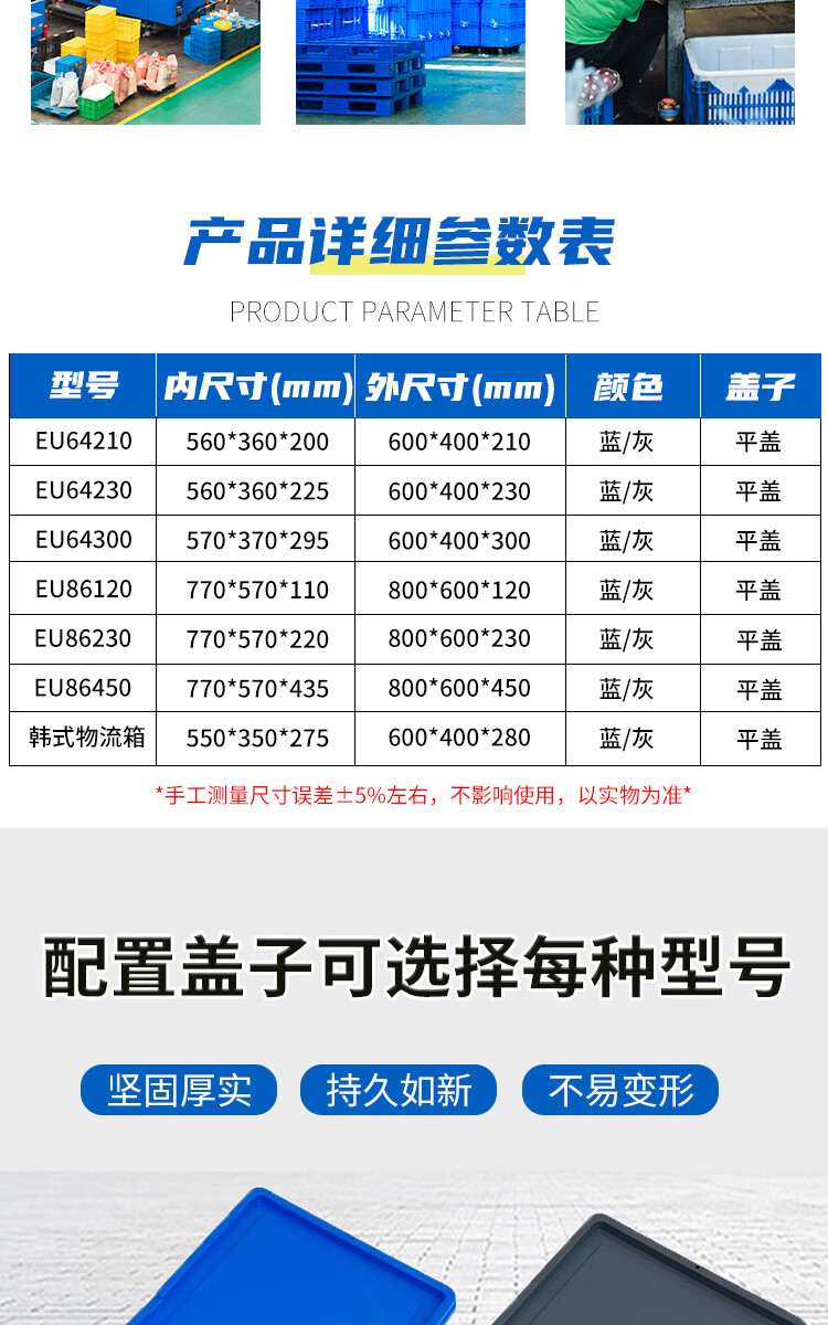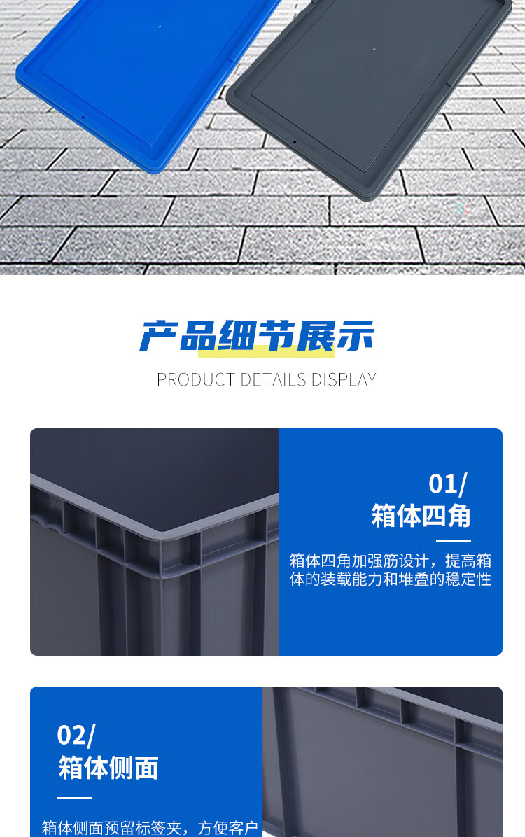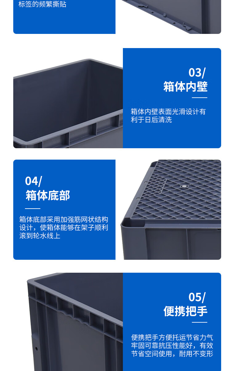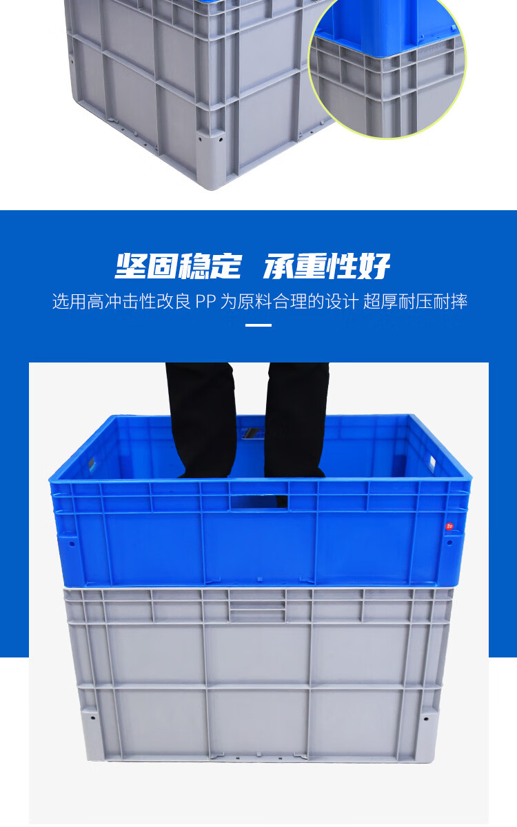 EU thickened logistics box reinforced bottom large three-dimensional warehouse plastic turnover box rectangular gray industrial box storage box EU64175 blue (outside 600*400*147) thickened (three-dimensional warehouse box) welcome to purchase