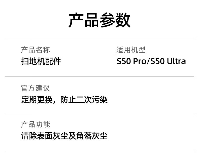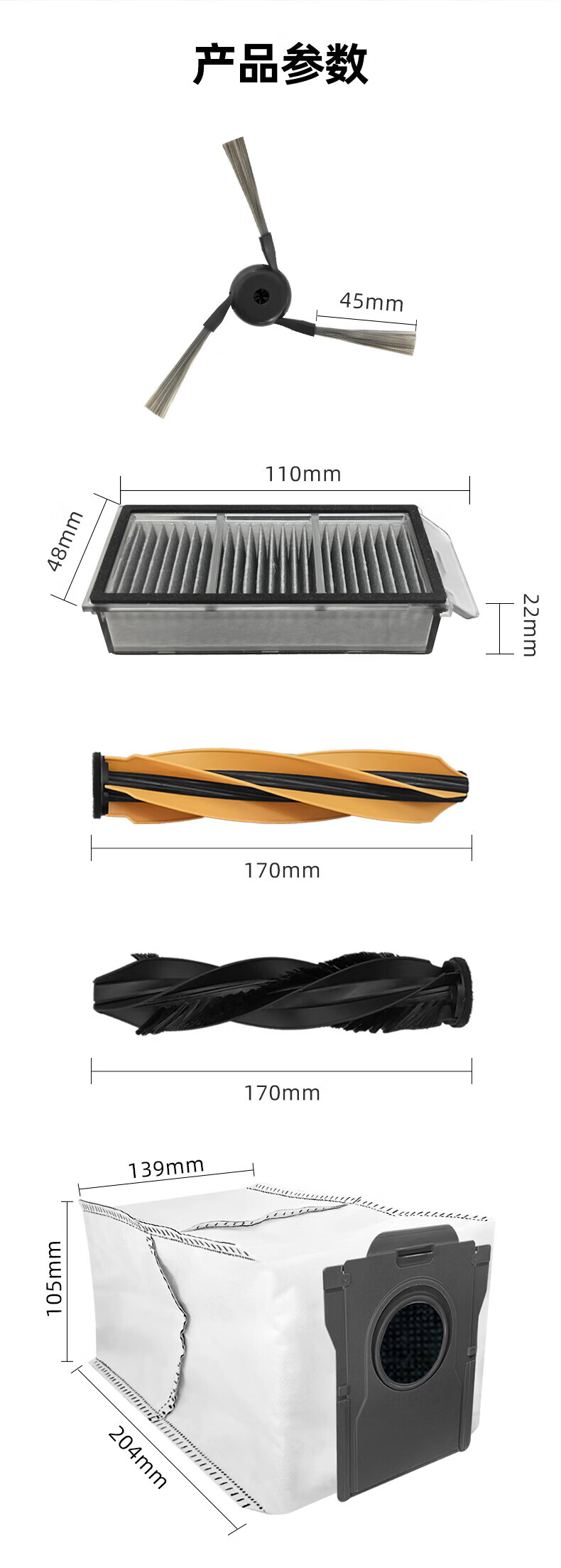 Jianlang is suitable for chasing the sweeping robot S50 PRO/ULTRA accessories, roller brush, side brush, mop, dust bag, filter, floor cleaning liquid, consumables, 2 brackets + 2 rags