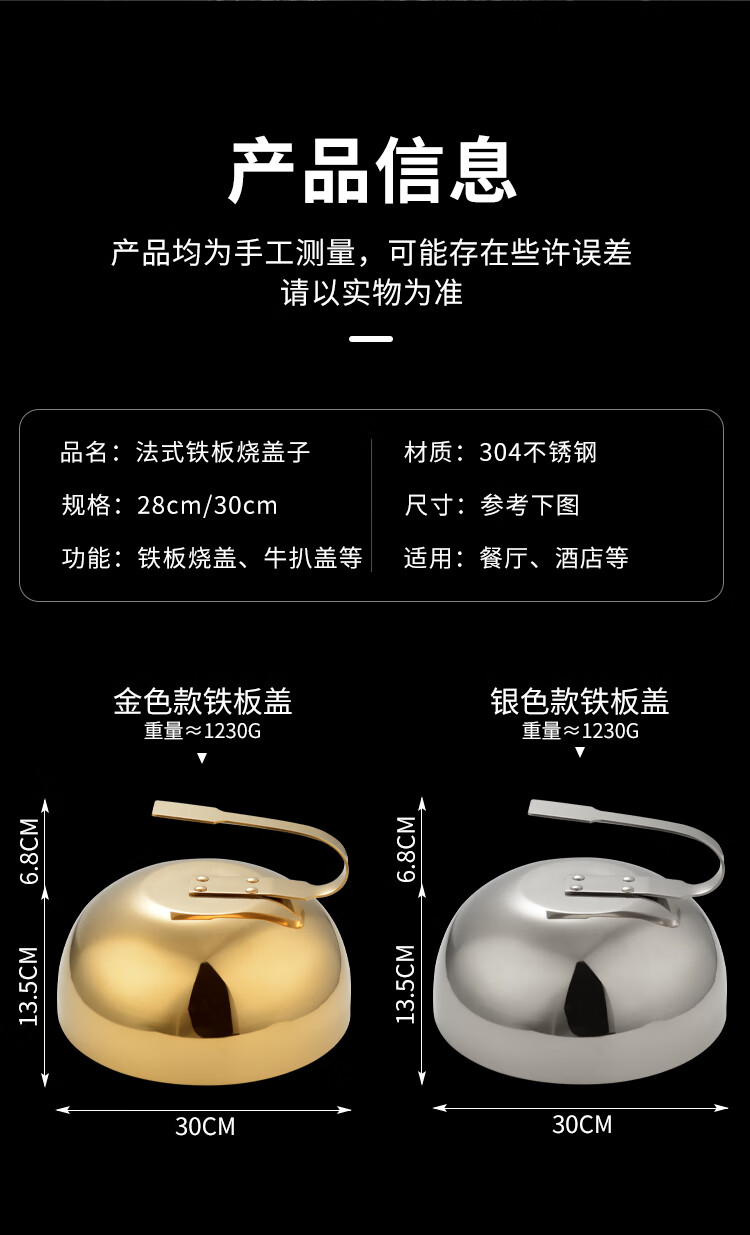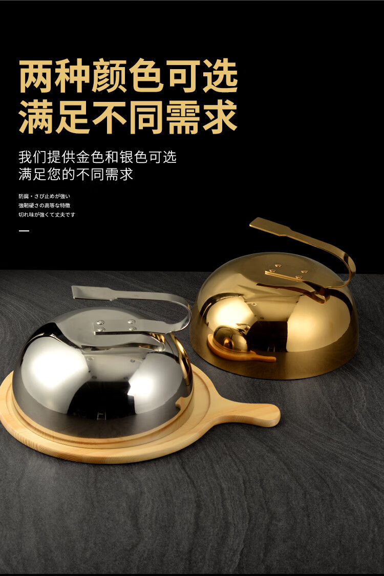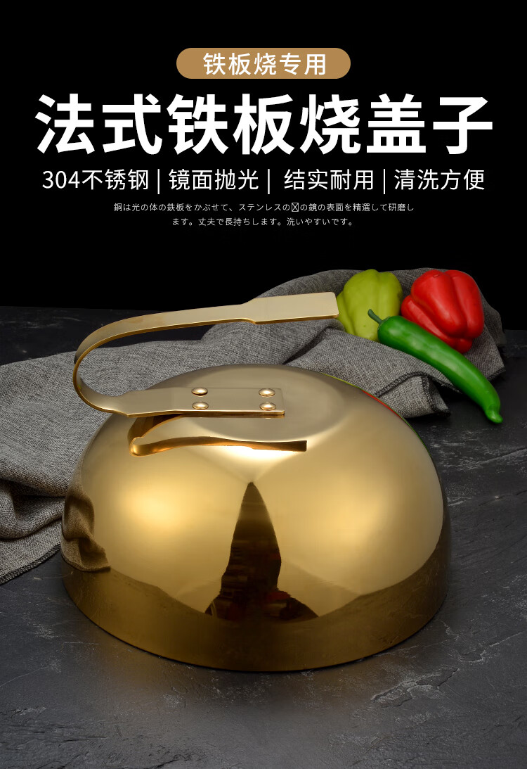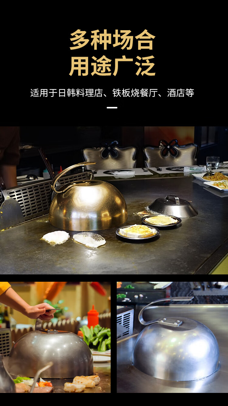 SMVP Teppanyaki equipment commercial stainless steel Teppanyaki cover Japanese steak cover Japanese cuisine meal cover Steak cover 30CM golden thickened iron plate cover