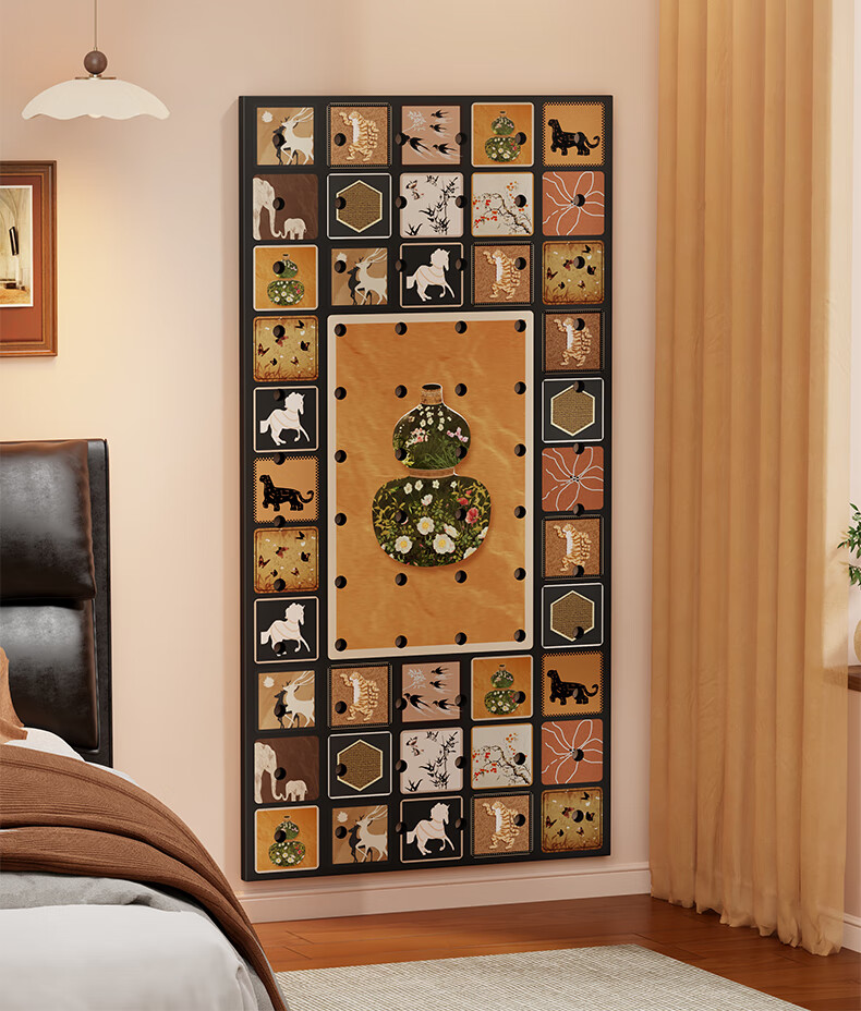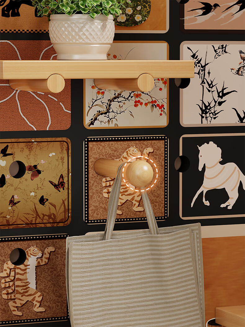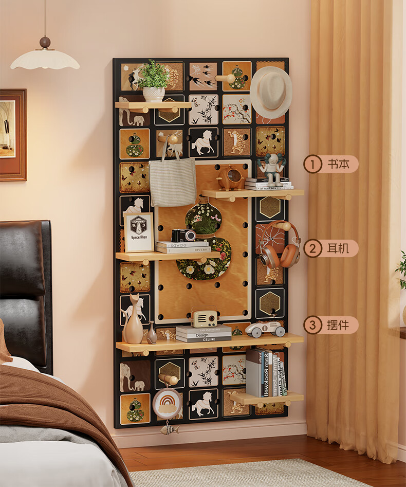 Lin Jia boy solid wood hole board entry entrance storage rack style wall hanging hanger decorative display accessories multi-functional storage rack retro style black 60*120