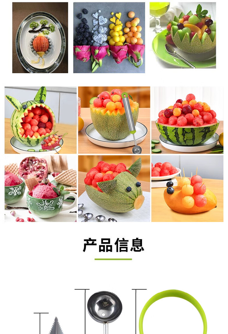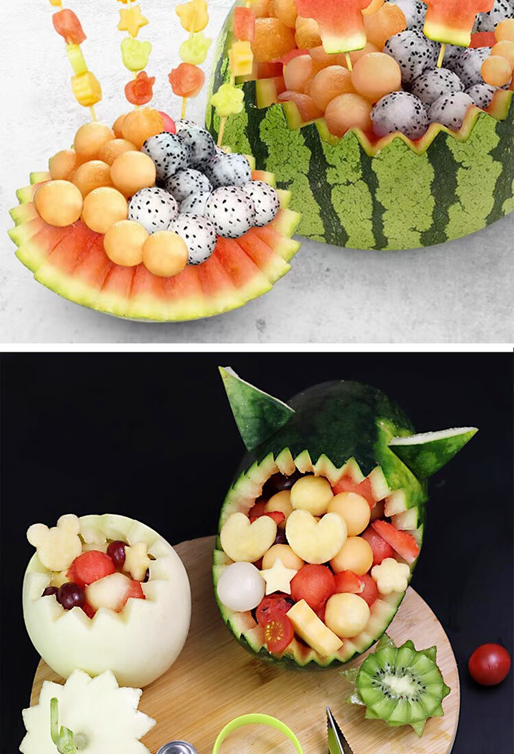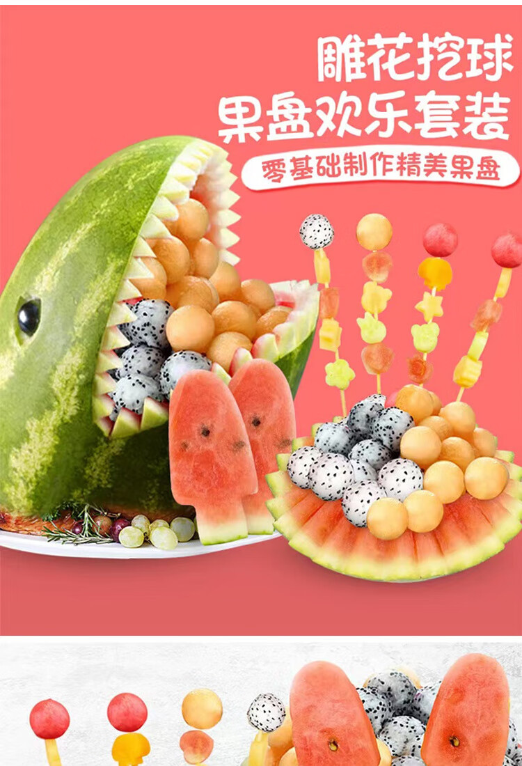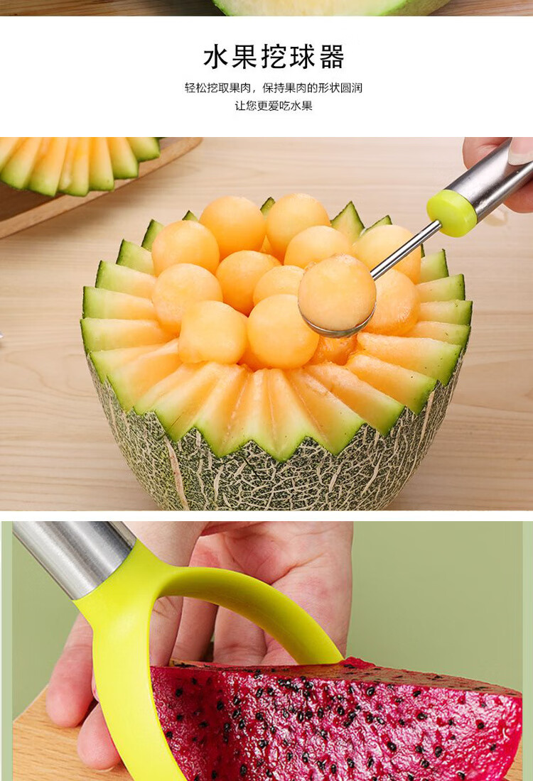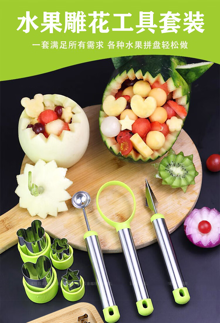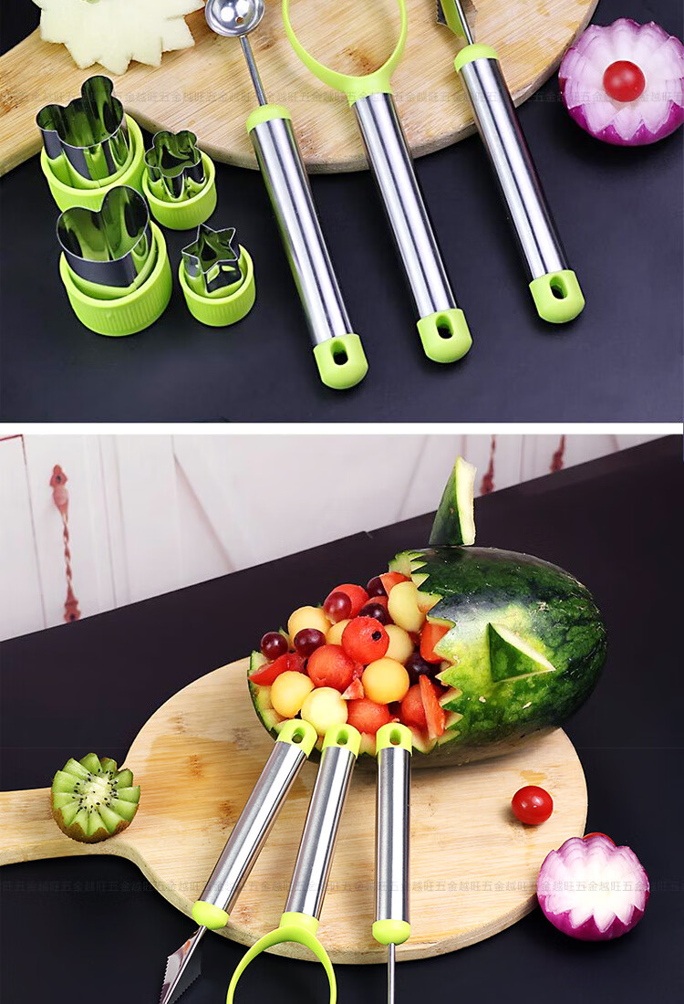 Ye Yu fruit carving knife three-piece set fruit baller multi-functional fruit platter tool stainless steel watermelon ball scoop embossed combination seven-piece set