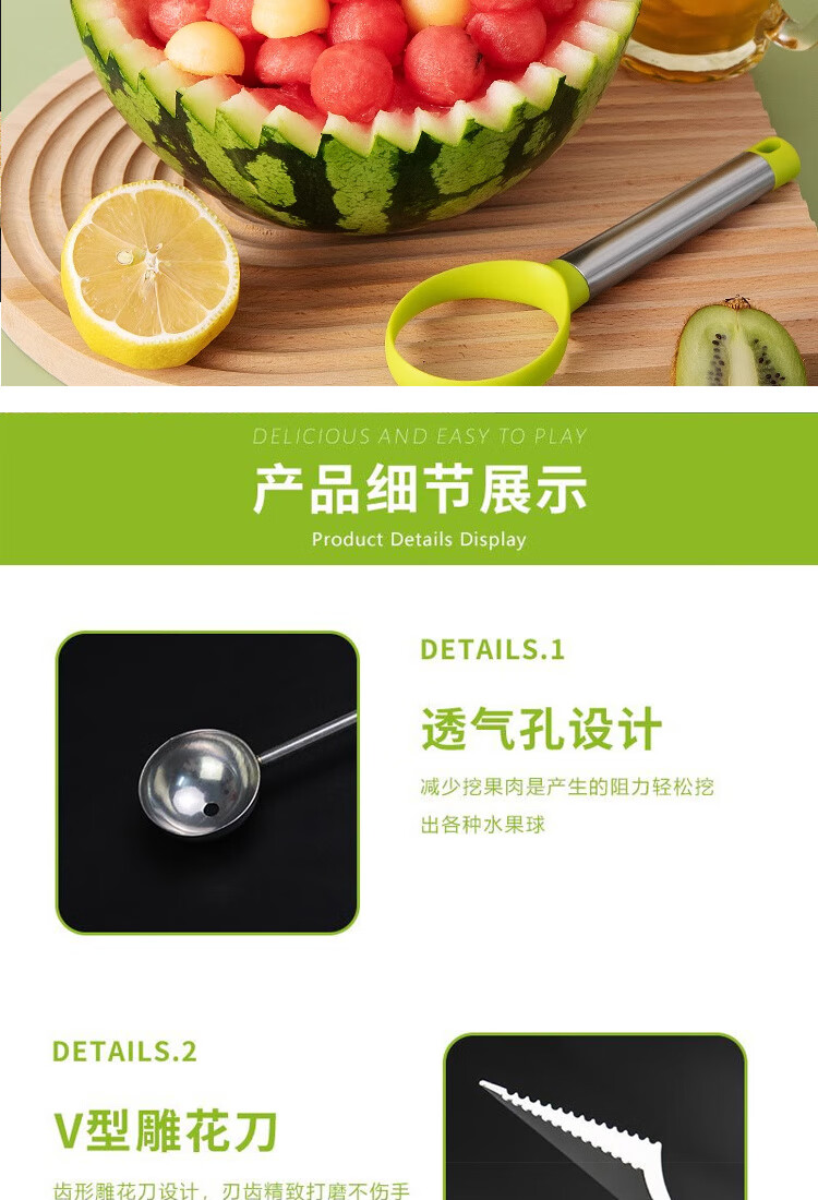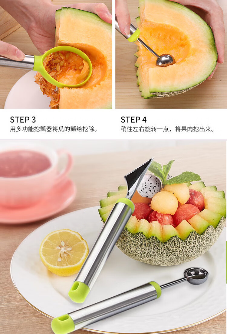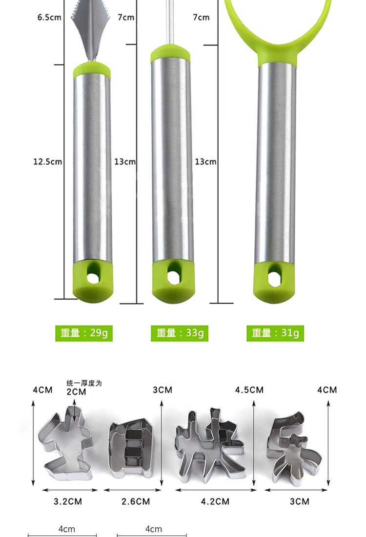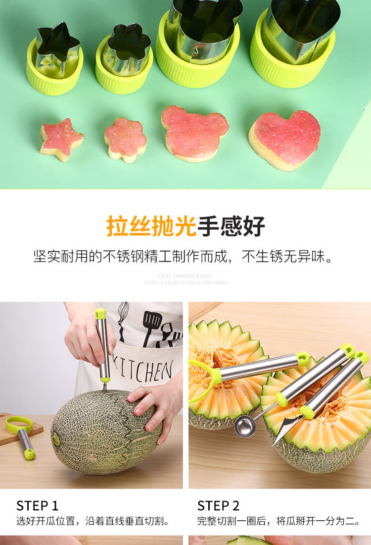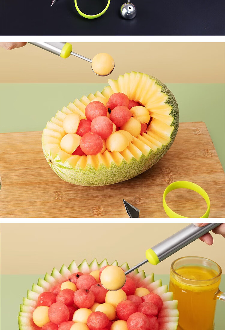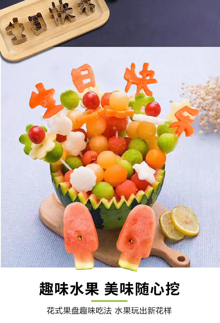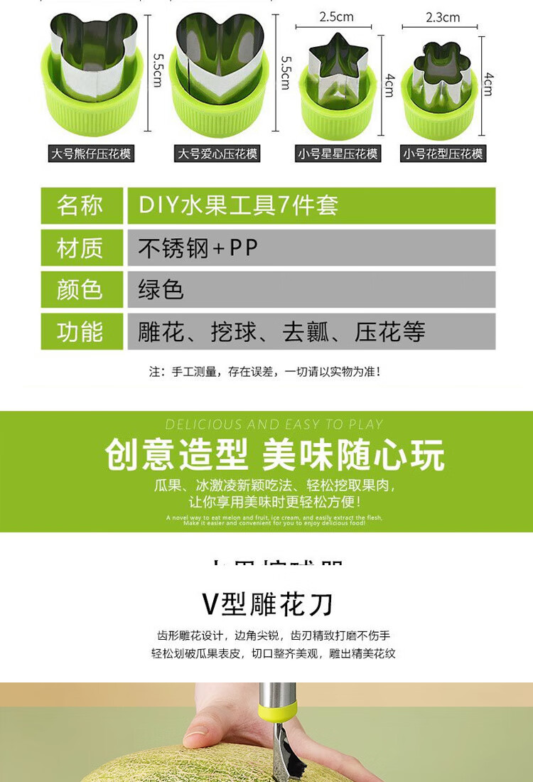 Ye Yu fruit carving knife three-piece set fruit baller multi-functional fruit platter tool stainless steel watermelon ball scoop embossed combination seven-piece set
